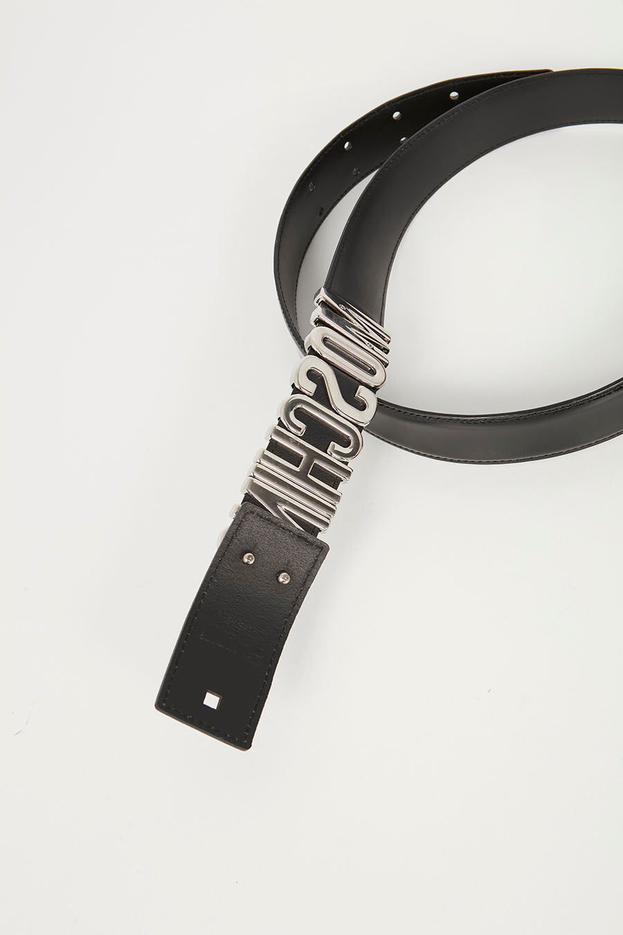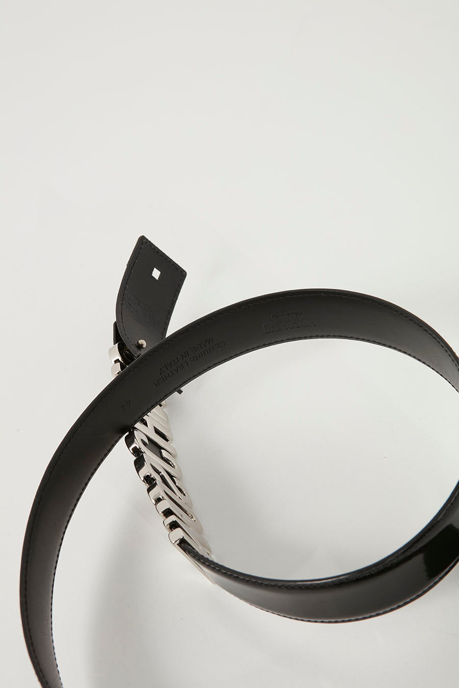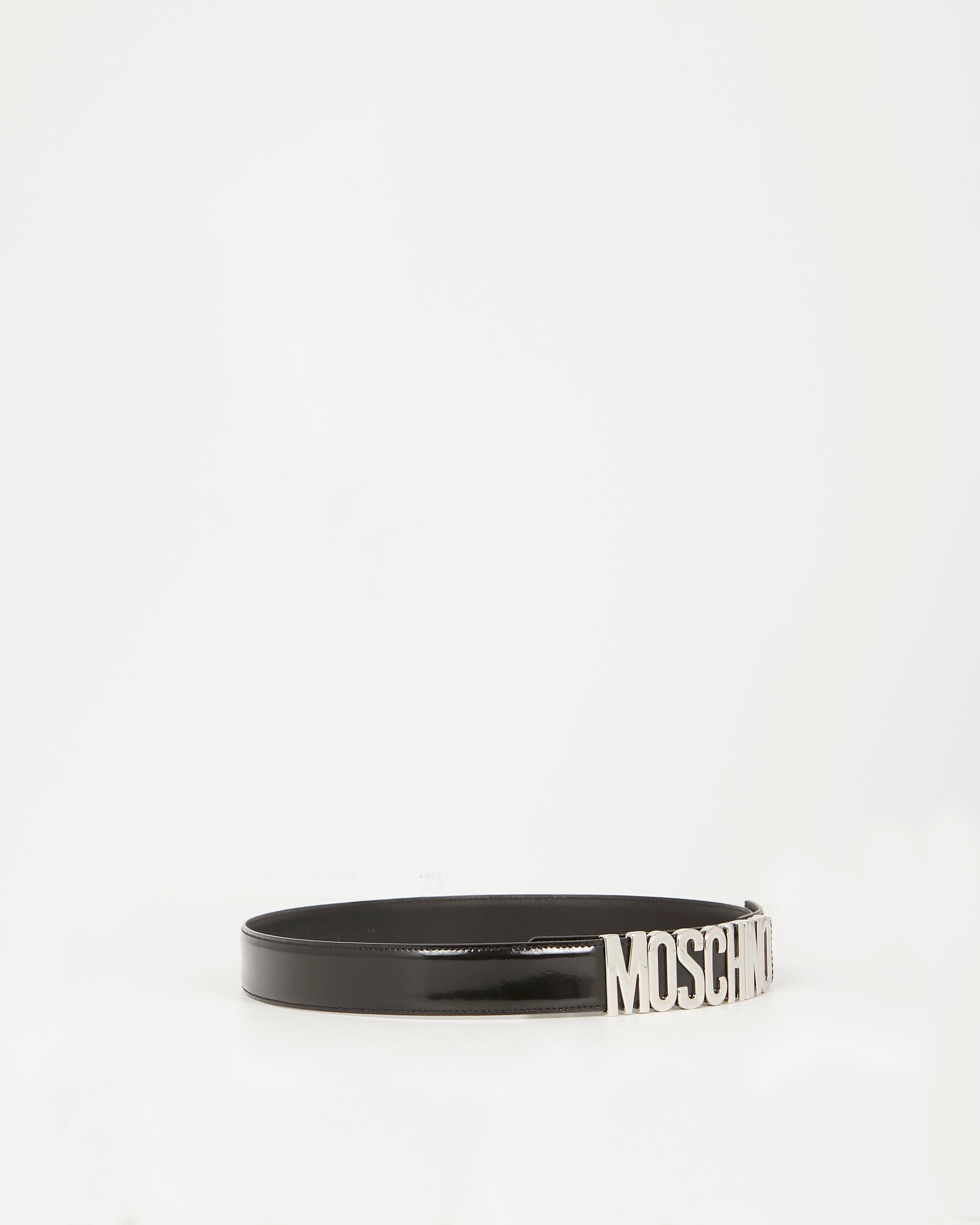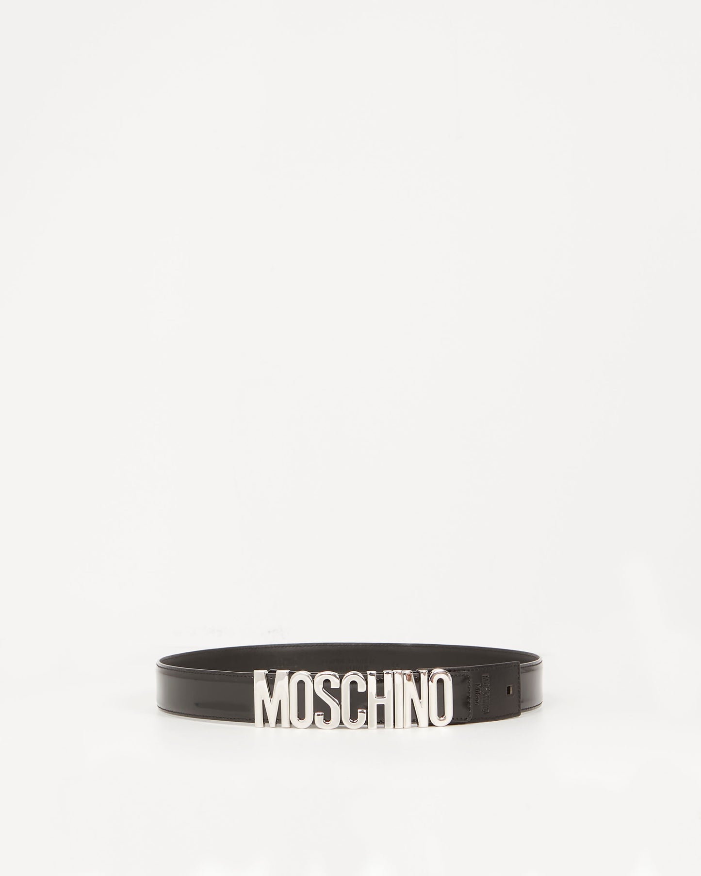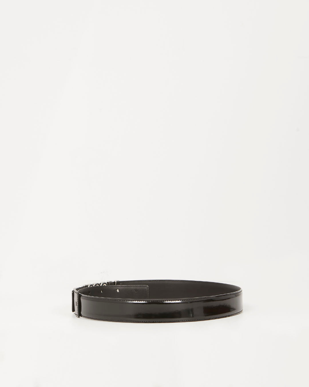 Black Glazed Leather Logo Belt SHW - 44