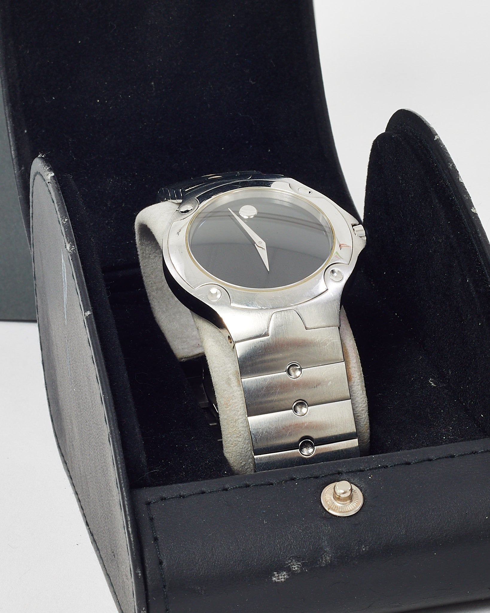Sleek and sophisticated, this pre-loved authentic Movado Men’s Silver Stainless Steel Sports Edition 84G11892 40mm Watch offers a refined take on everyday timekeeping. Featuring a polished silver-tone stainless steel case and bracelet, this 40mm watch showcases Movado’s signature minimalist dial with a single dot at 12 o’clock, reflecting the brand’s iconic Museum design. The clean layout, durable construction, and reliable quartz movement make it a versatile accessory that pairs effortlessly with both business and casual attire.