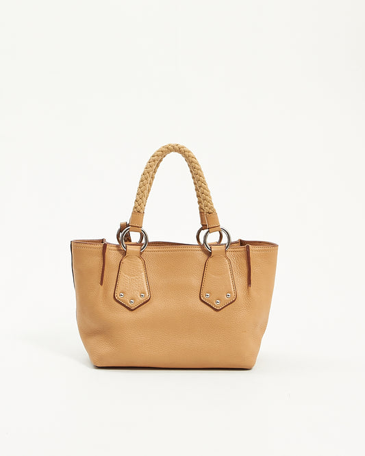 Beige Pebbled Leather Rope Handle Mini Tote Bag