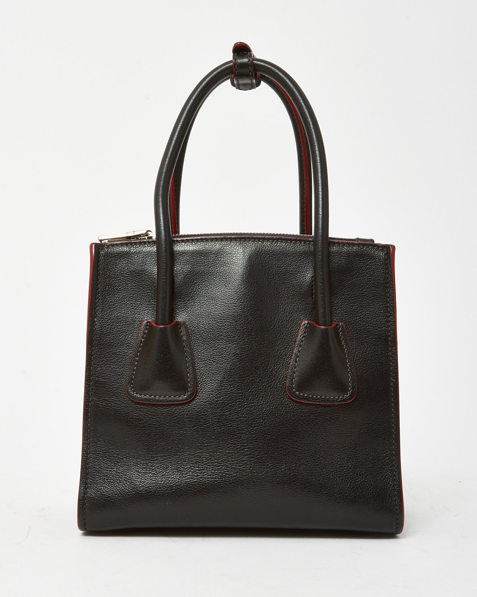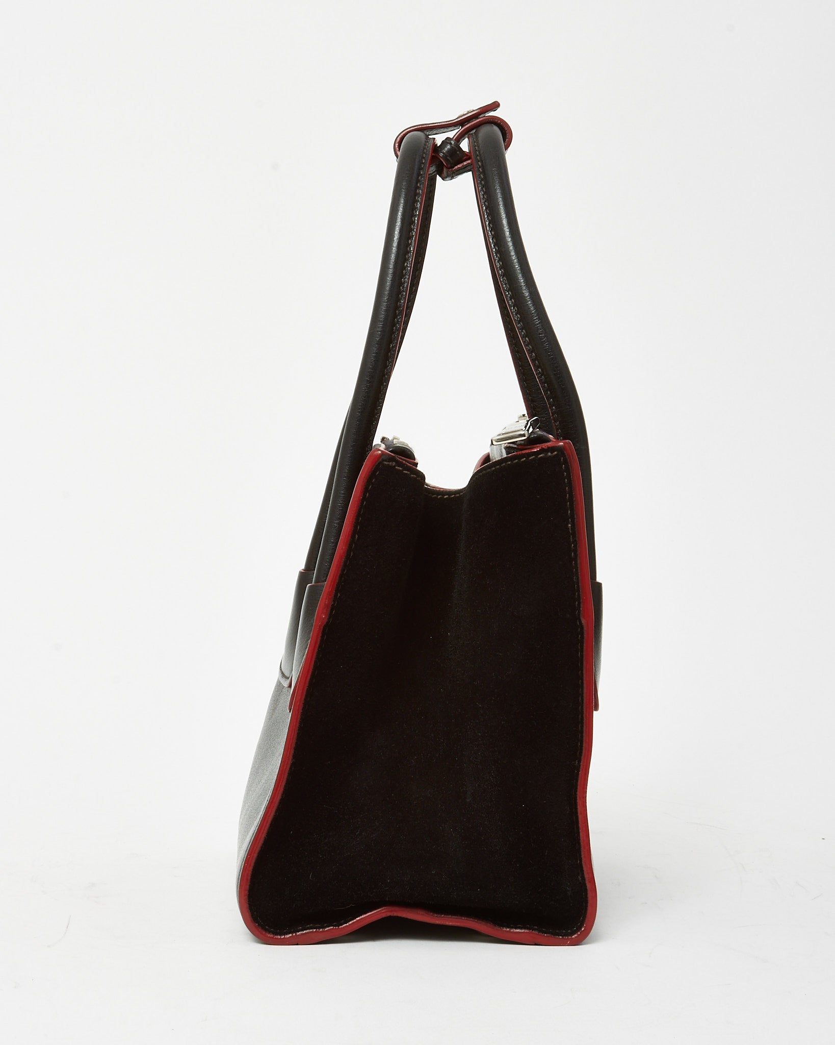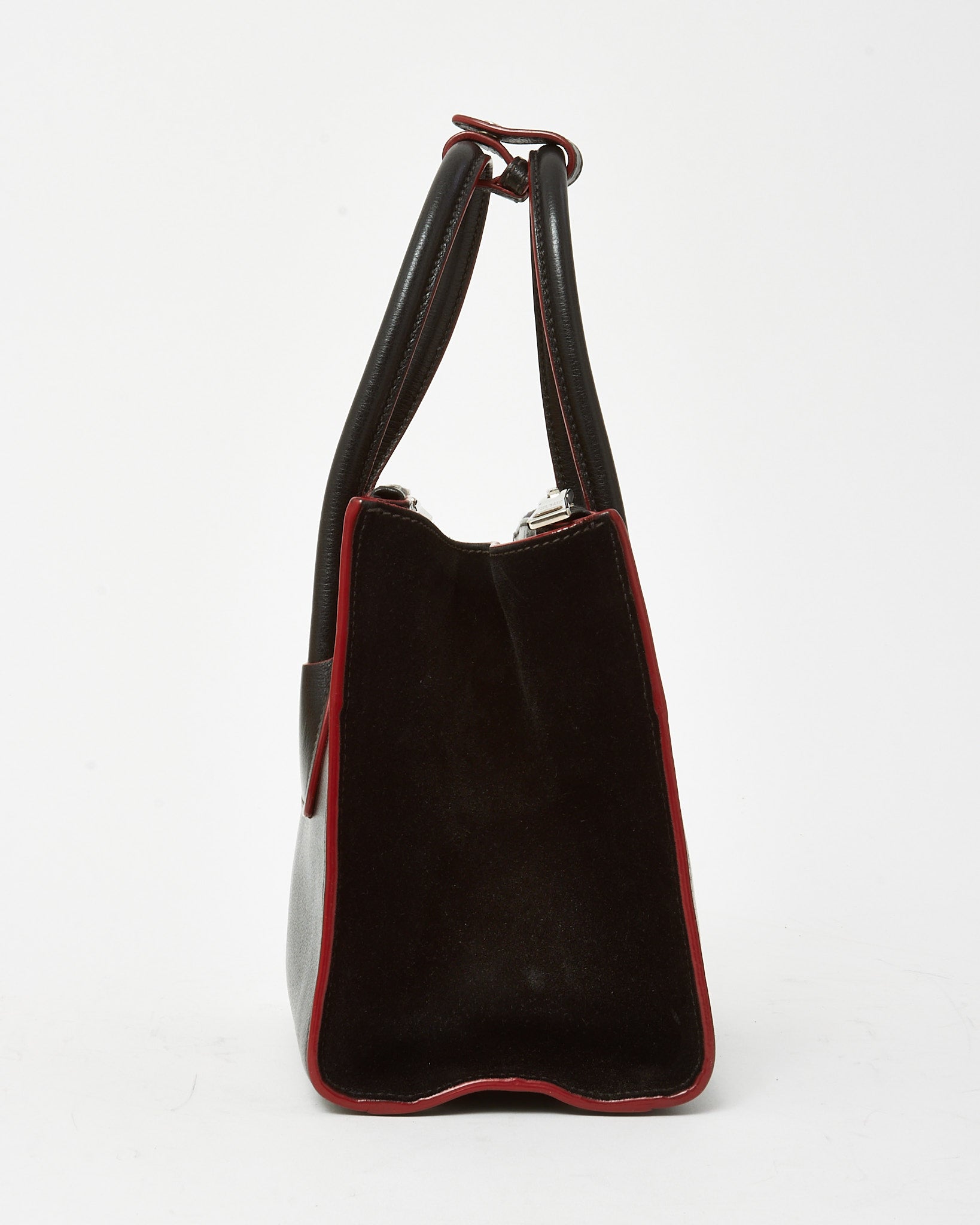 Black and Red Trim Glace Calf Leather & Scamosciato Twin Pocket Tote with Strap