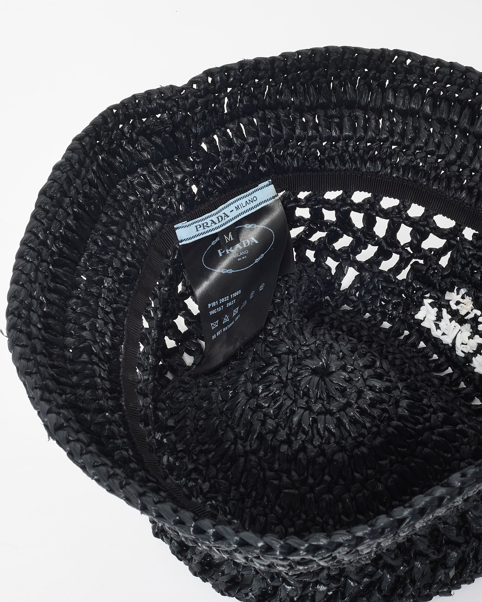 Explore Prada's exquisite collection of accessories, featuring this certified pre-owned Black Woven Crochet Logo Bucket Hat - M. Embodying timeless elegance and modern sustainability, each piece, including favorites like this, is authenticated by Retyche. Discover sustainable luxury — shop our current treasures or find inspiration for your next coveted find.