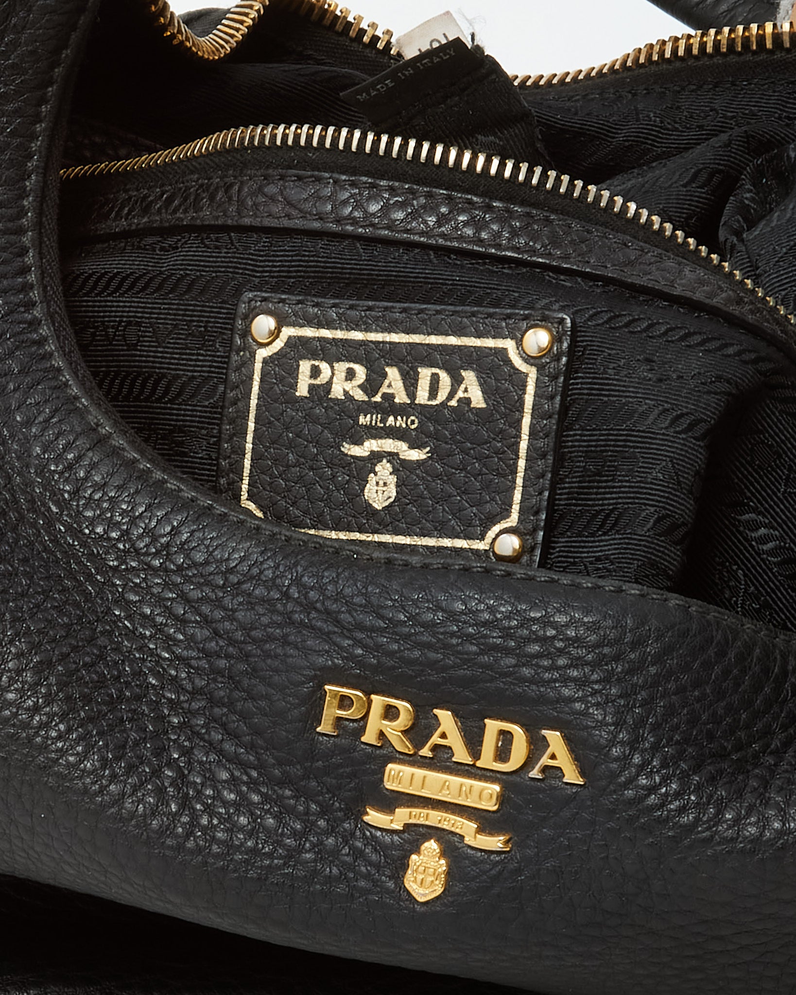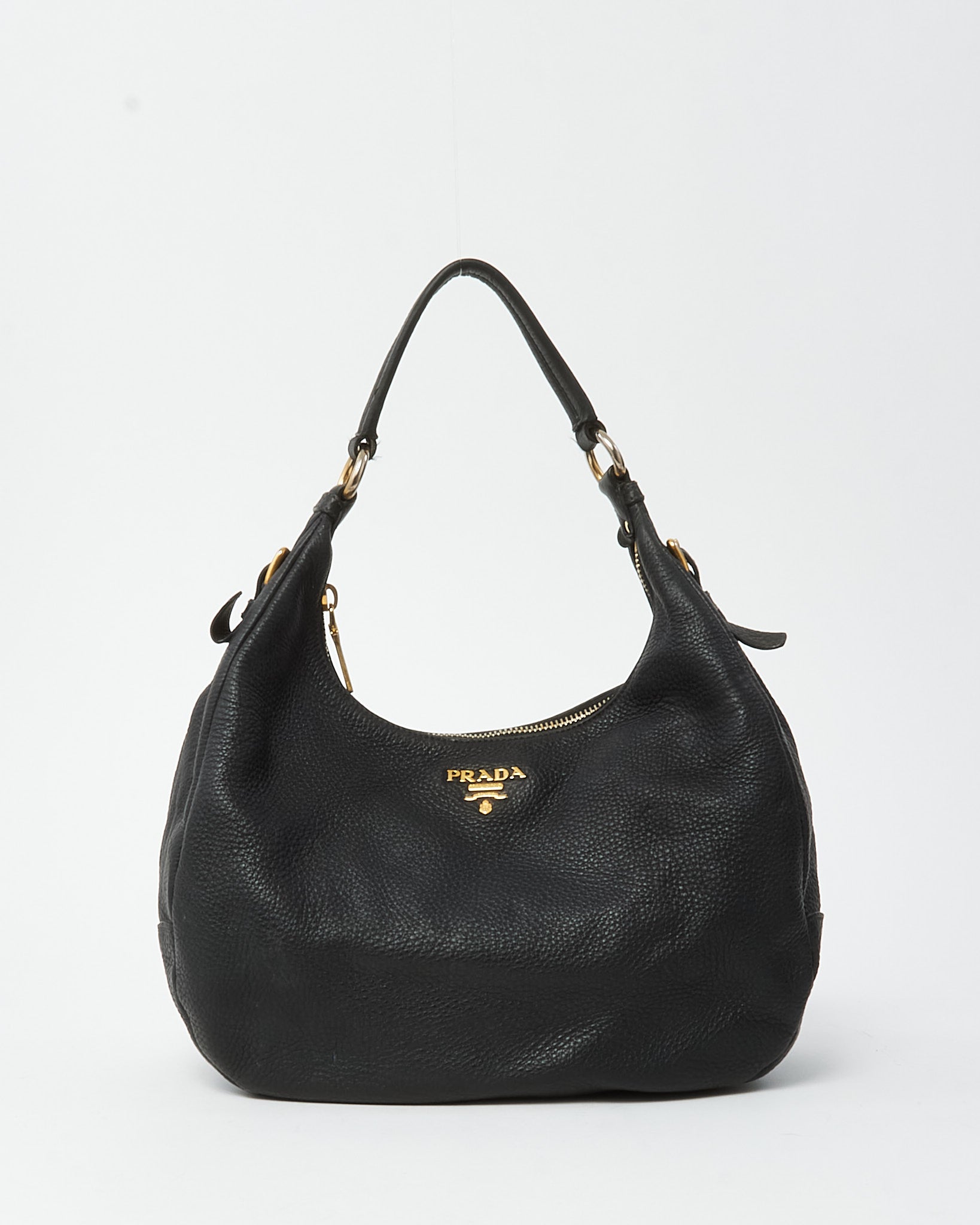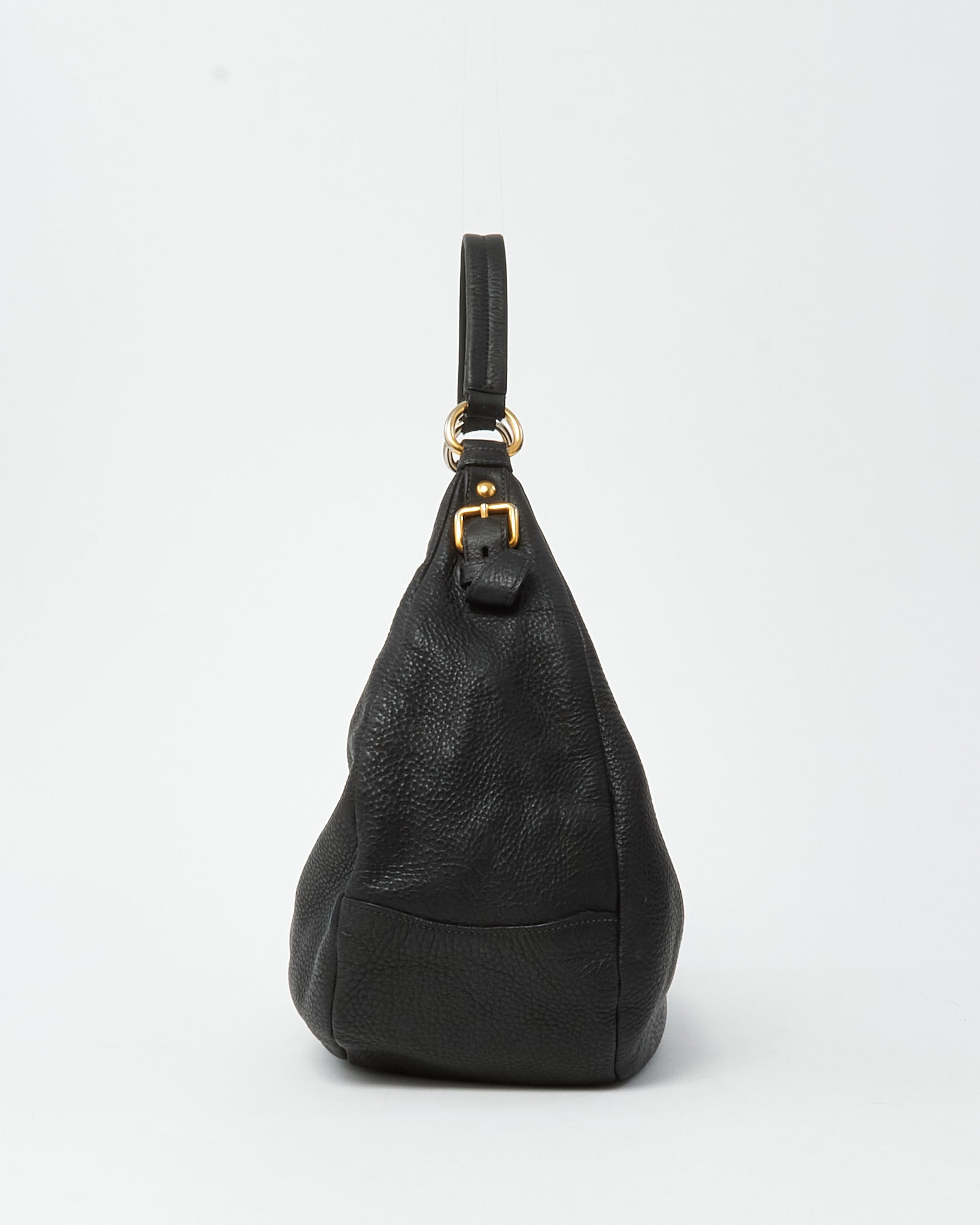 Elevate your everyday style with this pre-loved authentic Prada Black Daino Leather Buckle Hobo Shoulder Bag, crafted in supple pebbled Daino leather for a soft yet structured silhouette. Designed with a relaxed hobo shape, this luxury shoulder bag features gold-tone hardware, a sleek buckle detail, and the iconic Prada logo for understated elegance. The spacious interior offers ample room for daily essentials, making it perfect for work, travel, or everyday wear. Timeless and versatile, this Prada leather hobo blends Italian craftsmanship with effortless sophistication, making it a refined staple for any designer handbag collection.