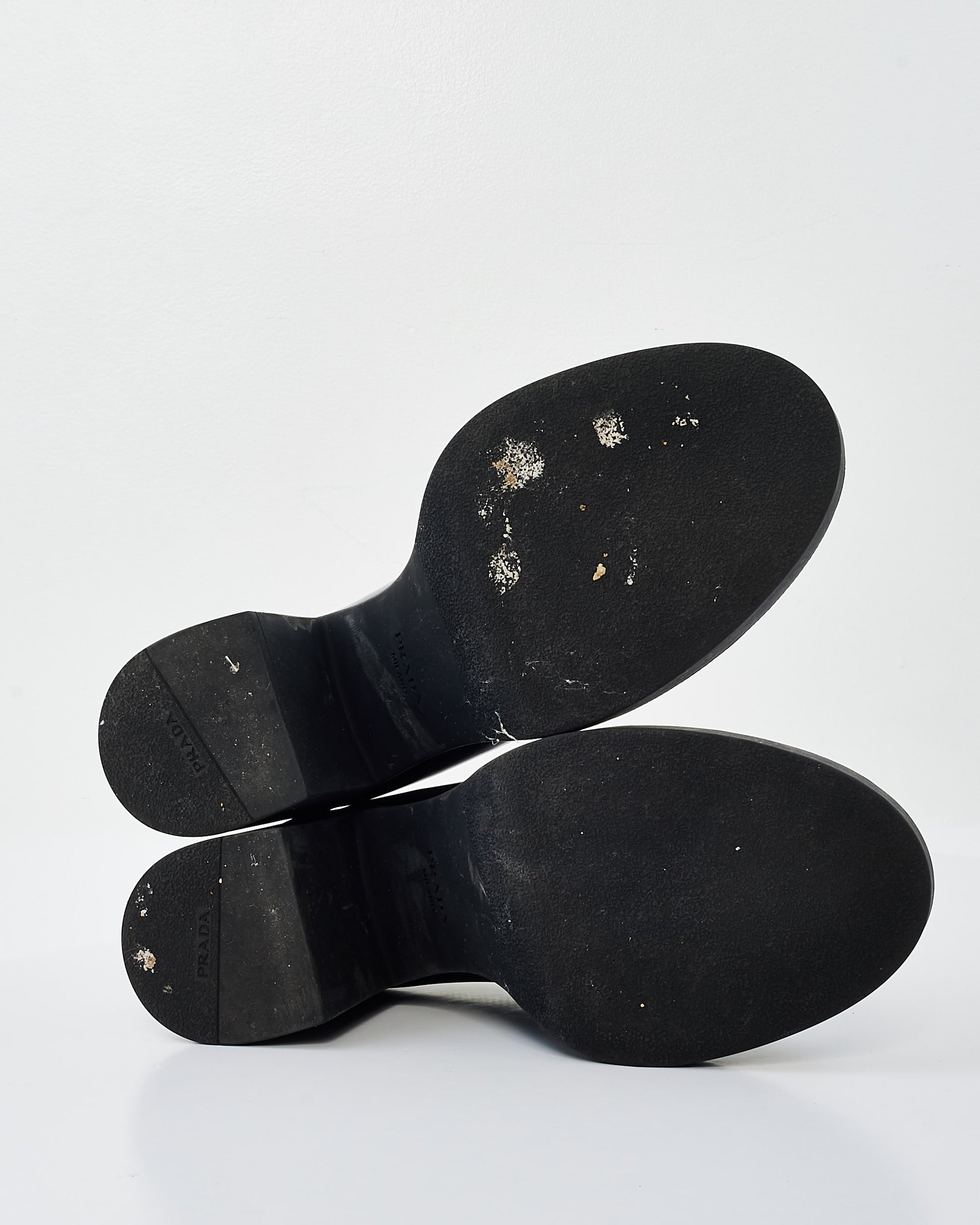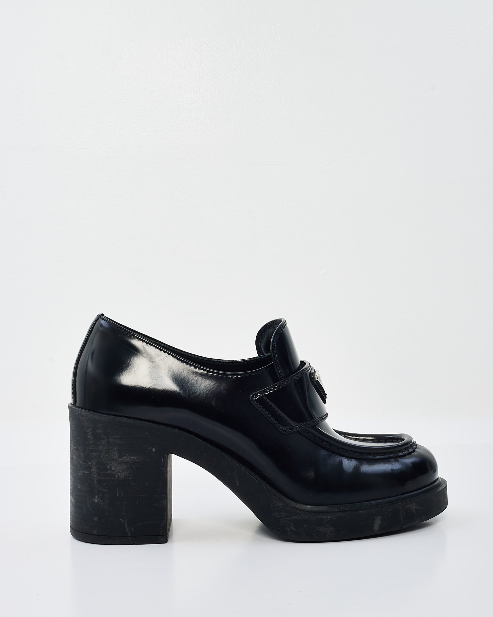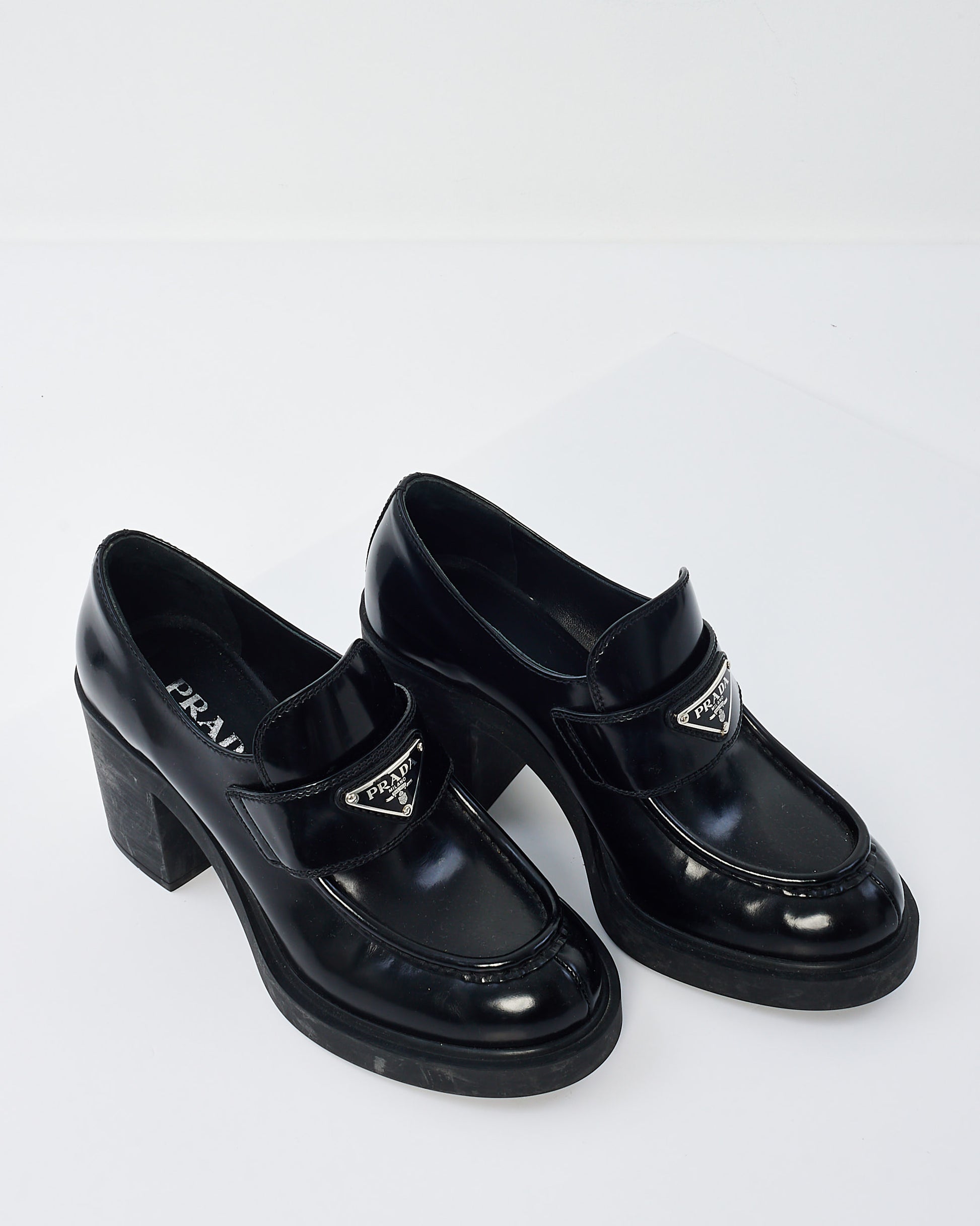 Explore Prada's exquisite collection of Footwear, featuring this certified pre-owned Black Patent Leather Block Heel Logo Loafers - 38. Embodying timeless elegance and modern sustainability, each piece, including favorites like this, is authenticated by Retyche. Discover sustainable luxury — shop our current treasures or find inspiration for your next coveted find.