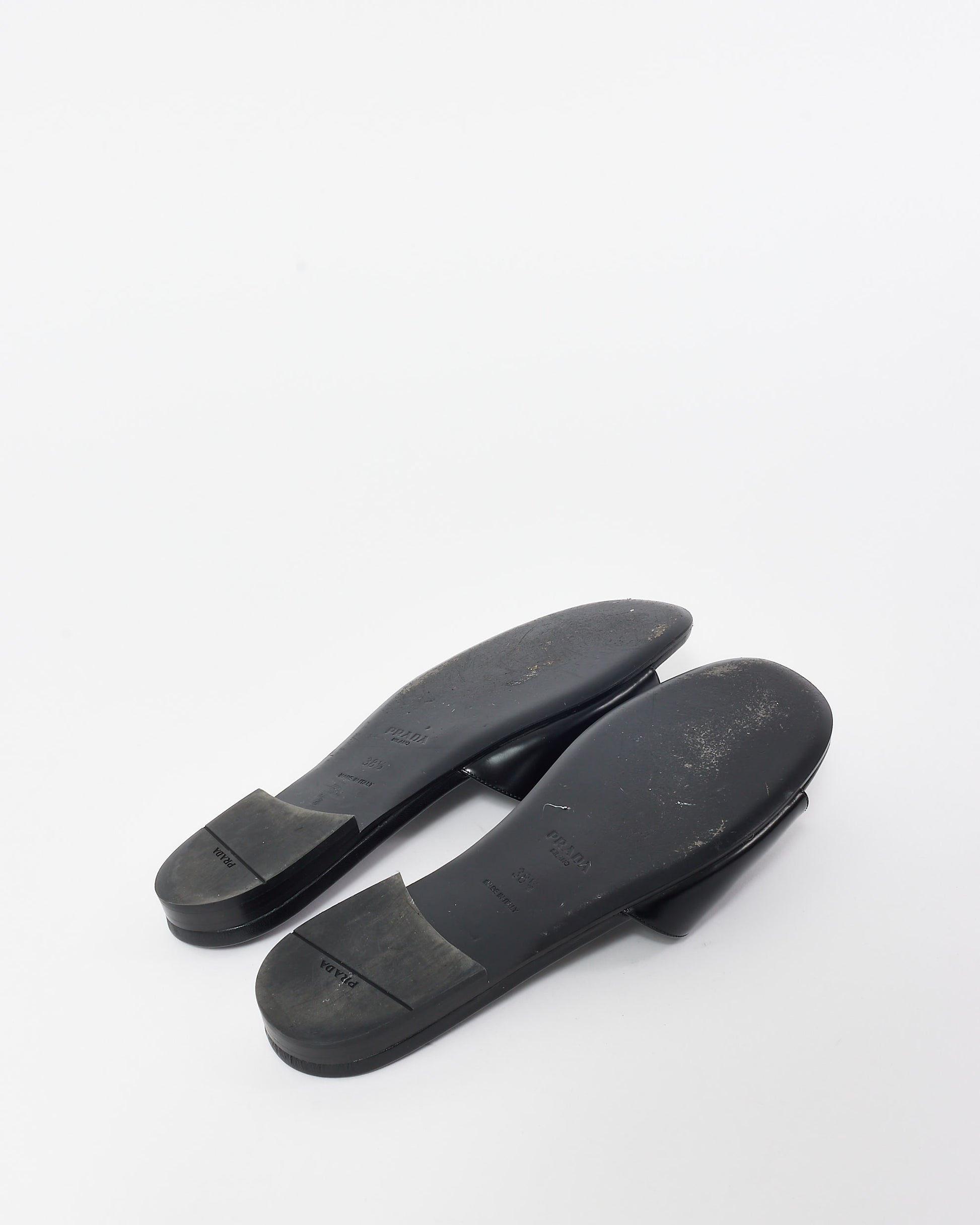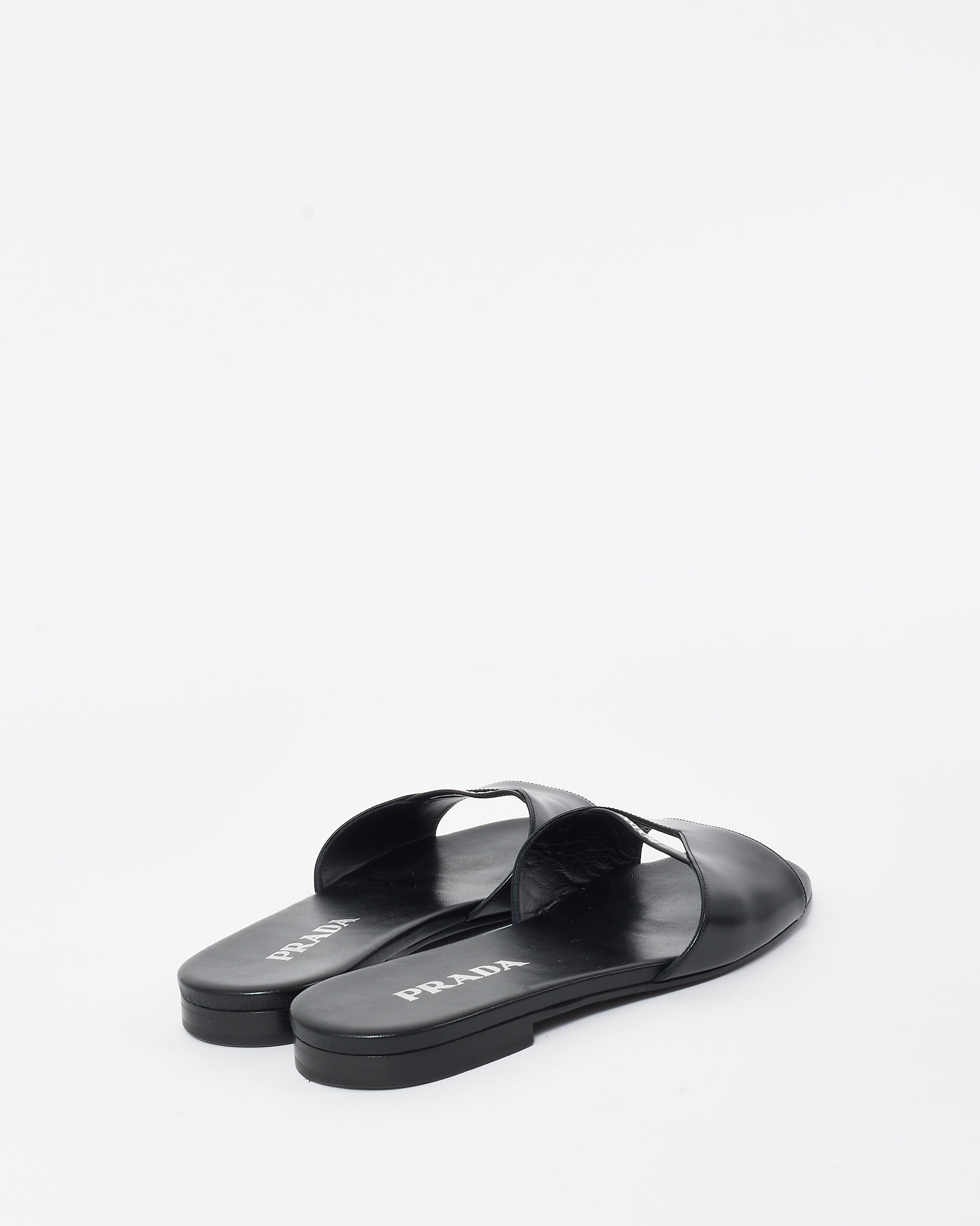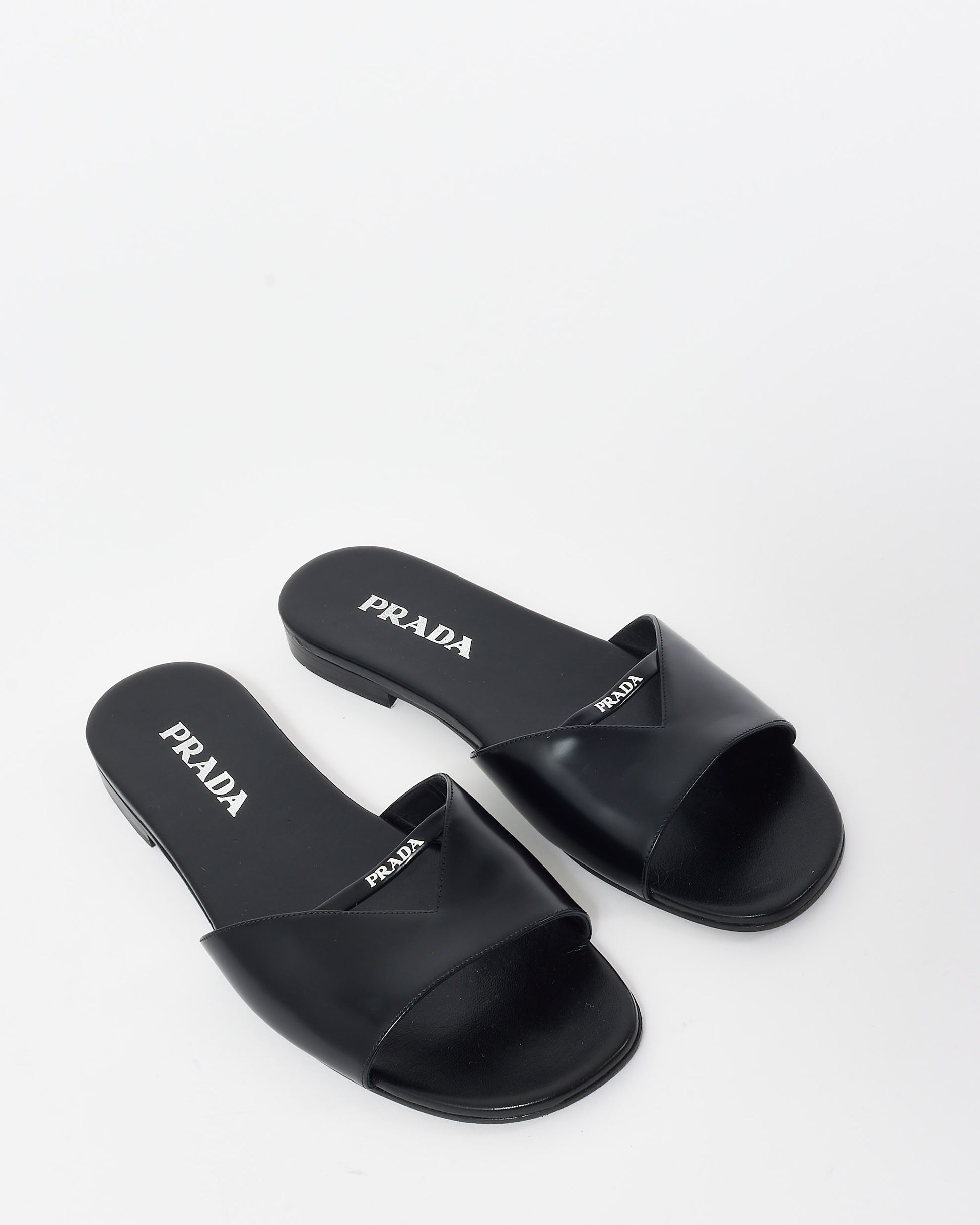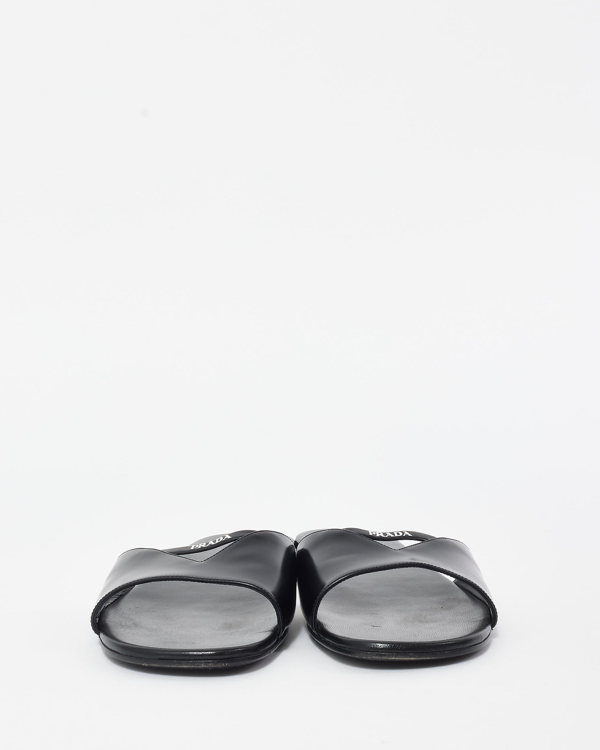 Explore Prada's exquisite collection of shoes, featuring this certified pre-owned Black Leather Logo Slide Sandals - 38.5. Embodying timeless elegance and modern sustainability, each piece, including favorites like this, is authenticated by Retyche. Discover sustainable luxury — shop our current treasures or find inspiration for your next coveted find.