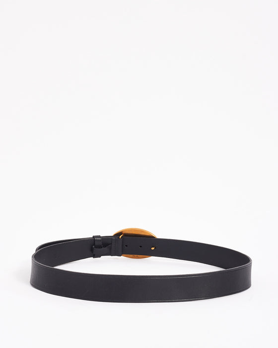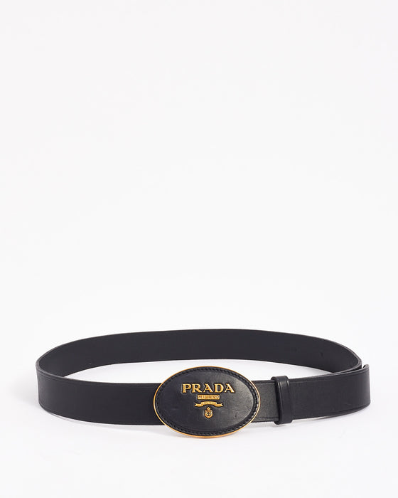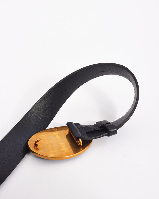 Black Leather with Oval Savoia Logo Buckle Belt 38/95