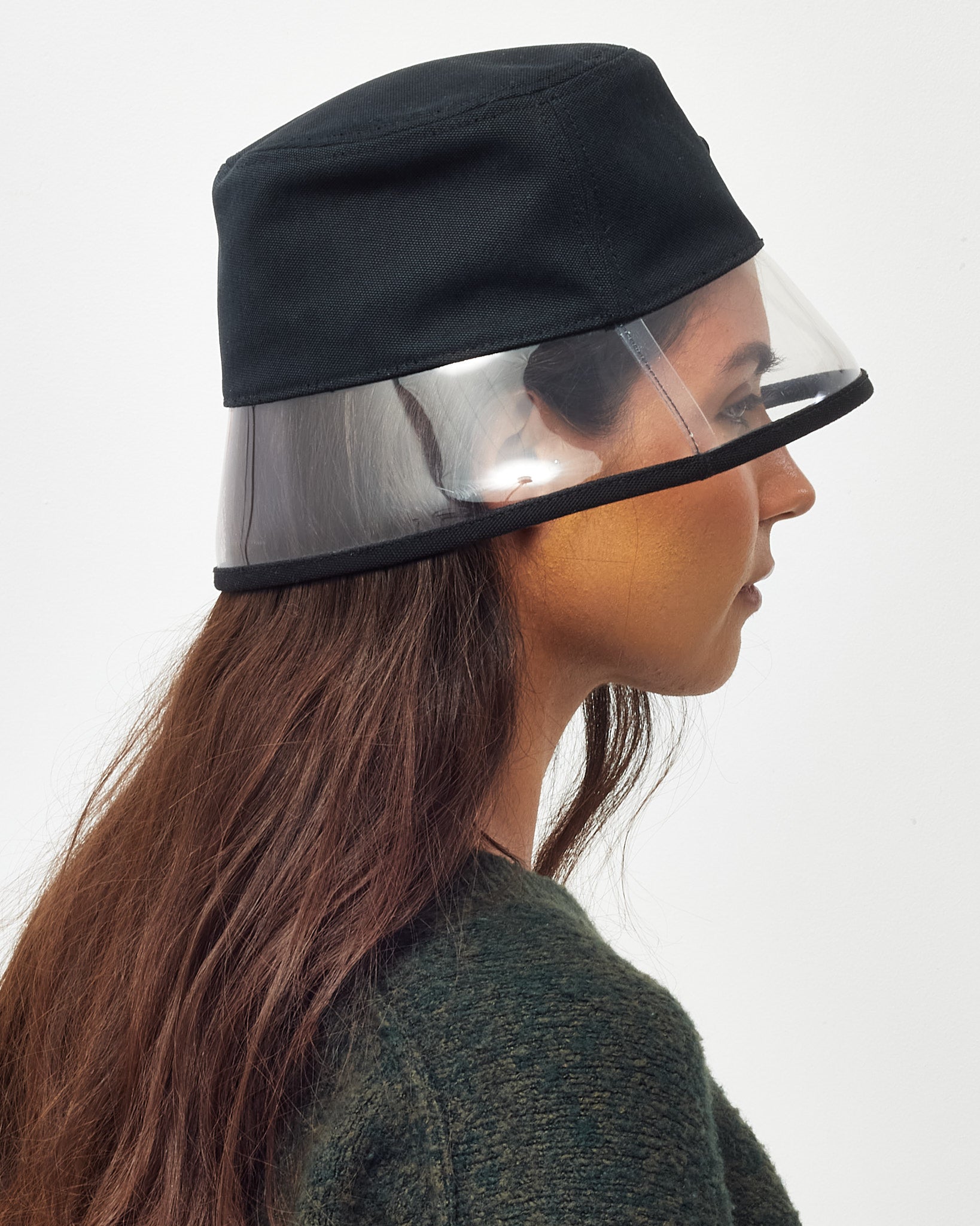 Step out in effortless luxury with this pre-loved authentic Prada bucket hat in classic black. Made from durable nylon and finished with a clear PVC brim, this distinctive piece fuses fashion-forward design with functional style. The iconic triangular Prada Milano logo plaque adds an instantly recognizable touch, while the transparent visor detail gives a modern, edgy twist. A standout streetwear accessory perfect for festival looks, city wear, or resort styling, this rare find in size small is a must-have for collectors and trendsetters alike.
