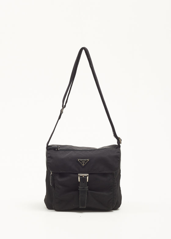 Black Nylon Front Pocket Trotter Crossbody Bag