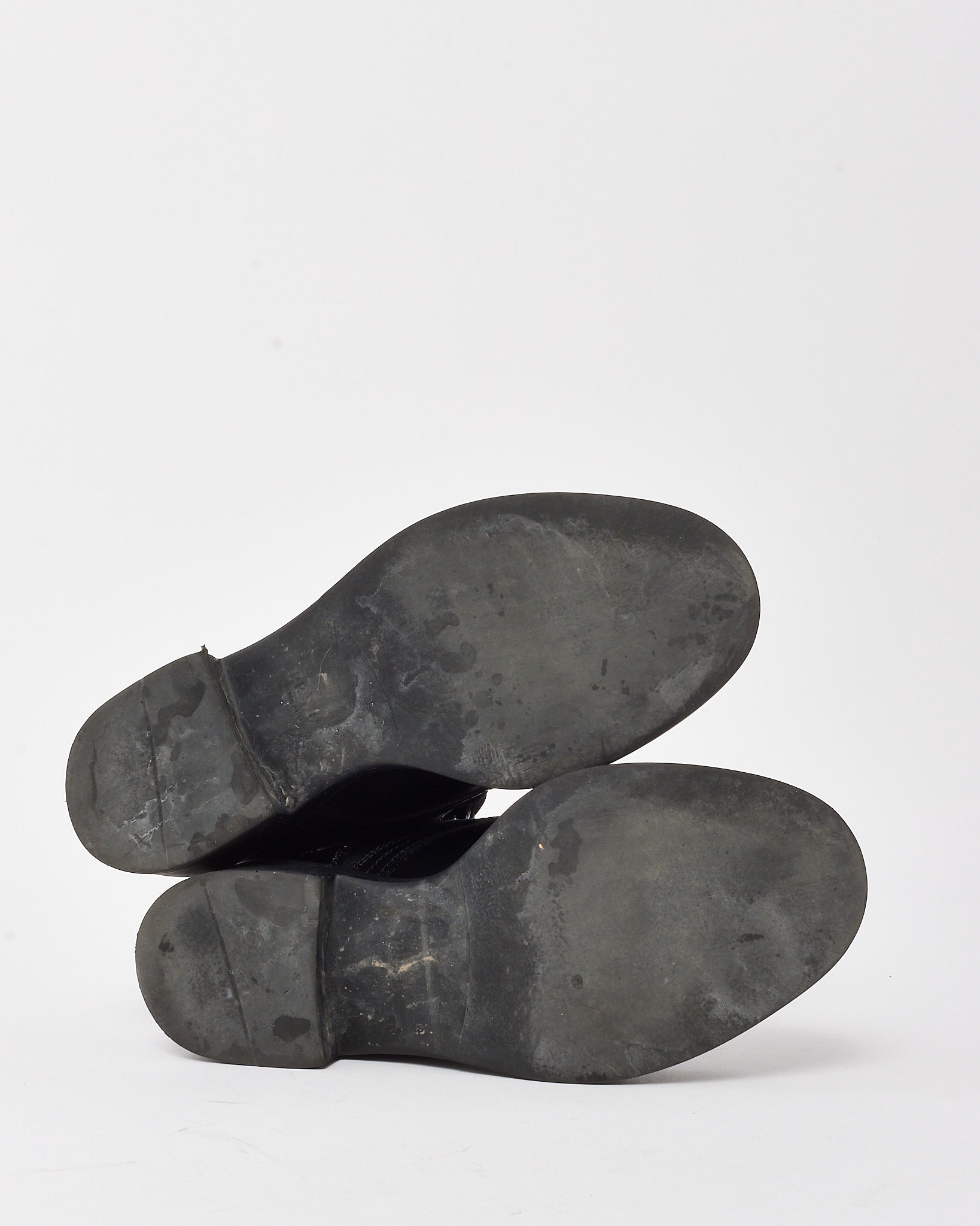 A bold fusion of utility and iconic style, these pre-loved authentic Prada combat boots are crafted from durable black nylon and smooth leather for a sleek, structured silhouette. The lace-up front is anchored by chunky rubber lug soles, delivering exceptional grip and street-ready durability. Finished with the iconic Prada enamel triangle logo at the ankle, these boots balance industrial edge with refined Italian craftsmanship—ideal for elevating both urban and utilitarian looks with a signature high-fashion finish.