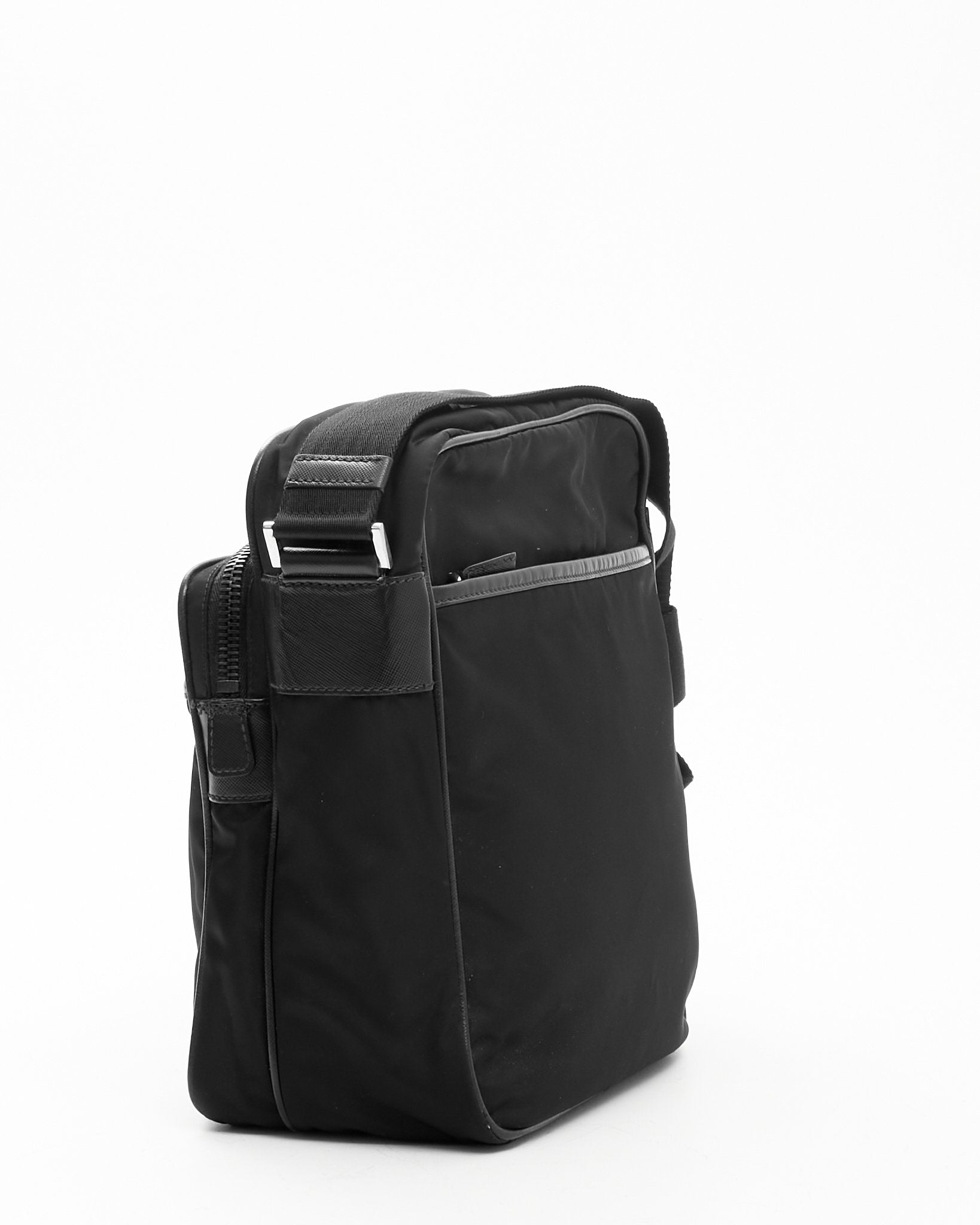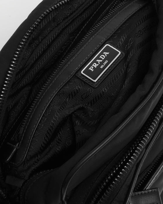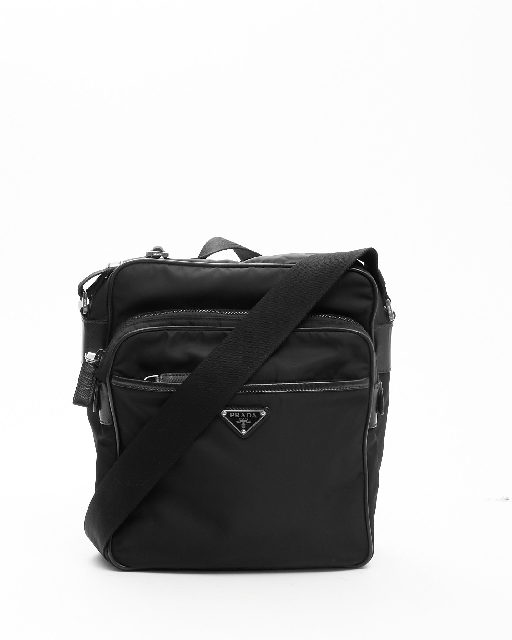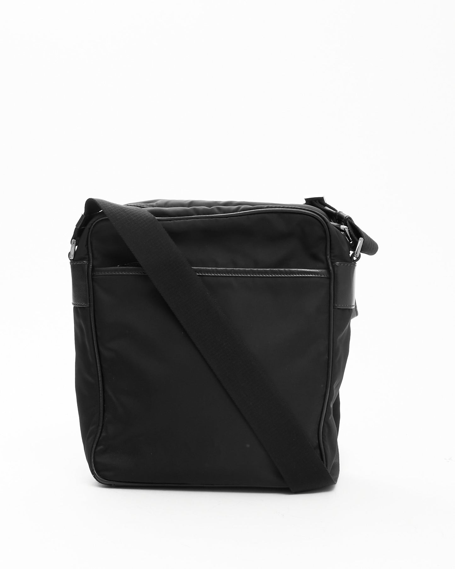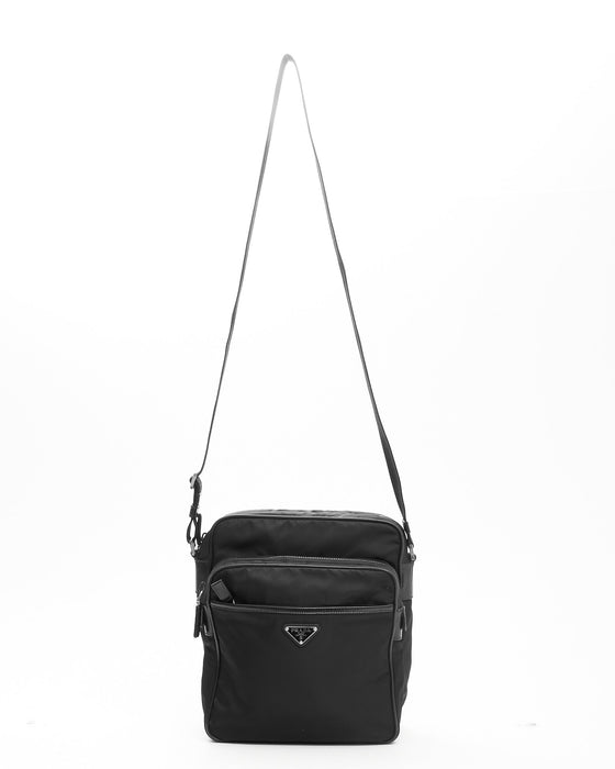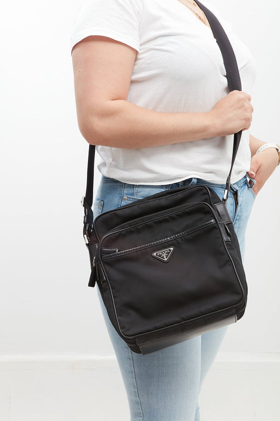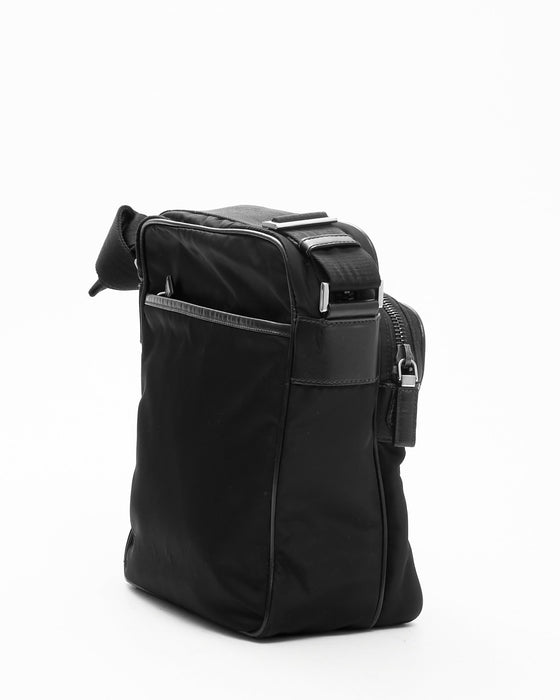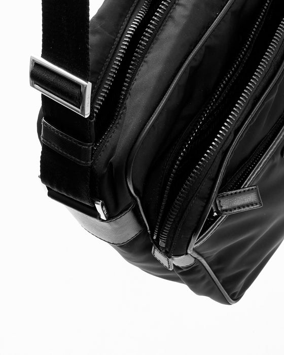 Black Nylon Messenger Crossbody Bag