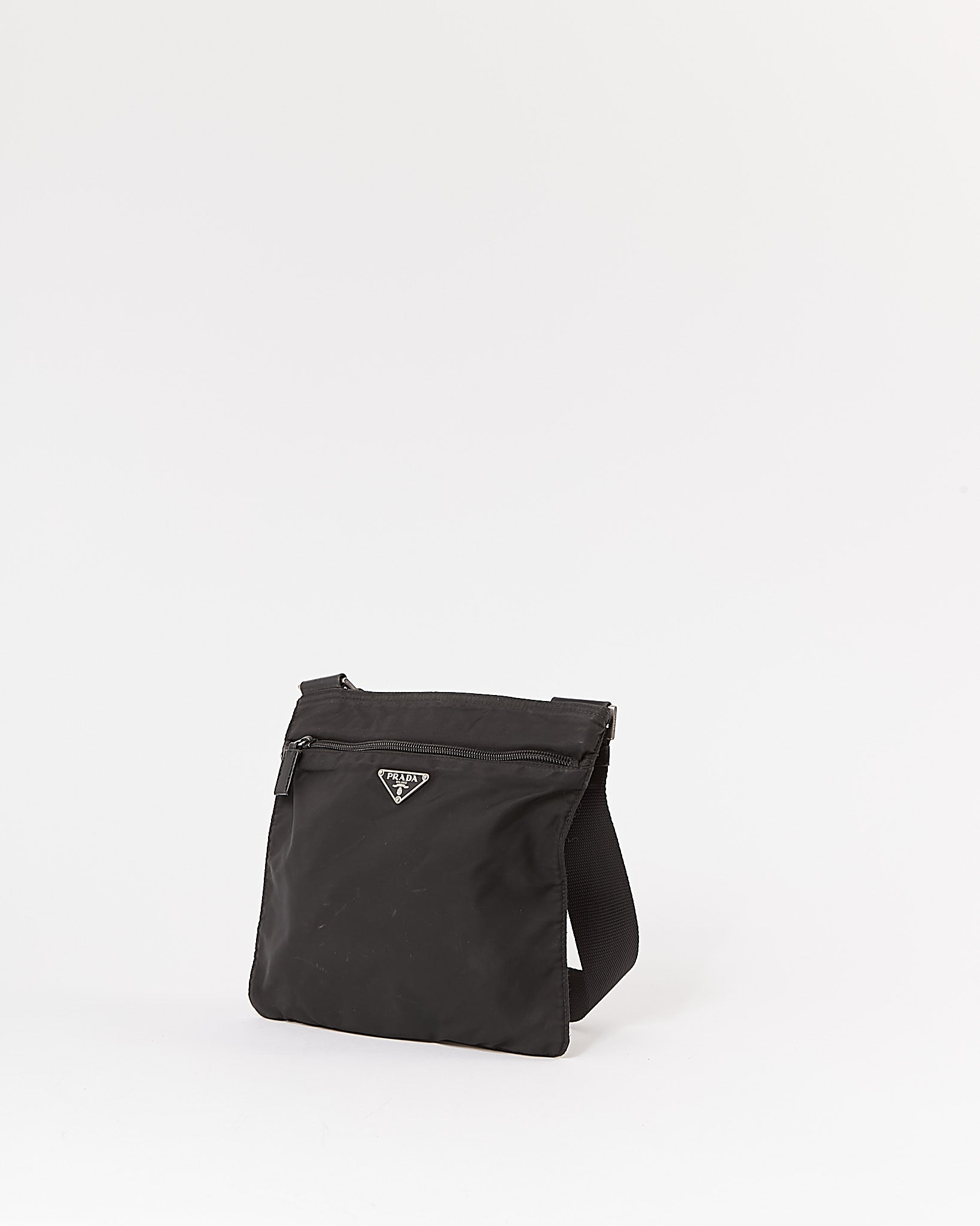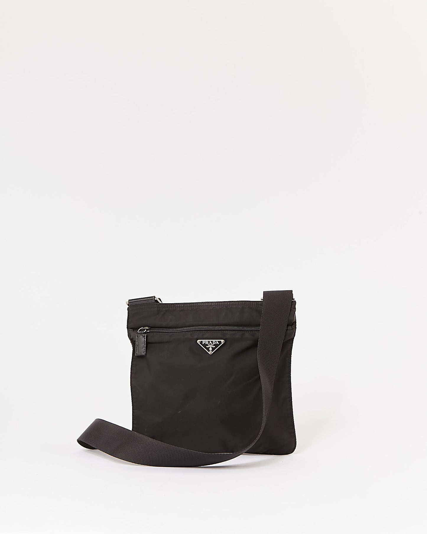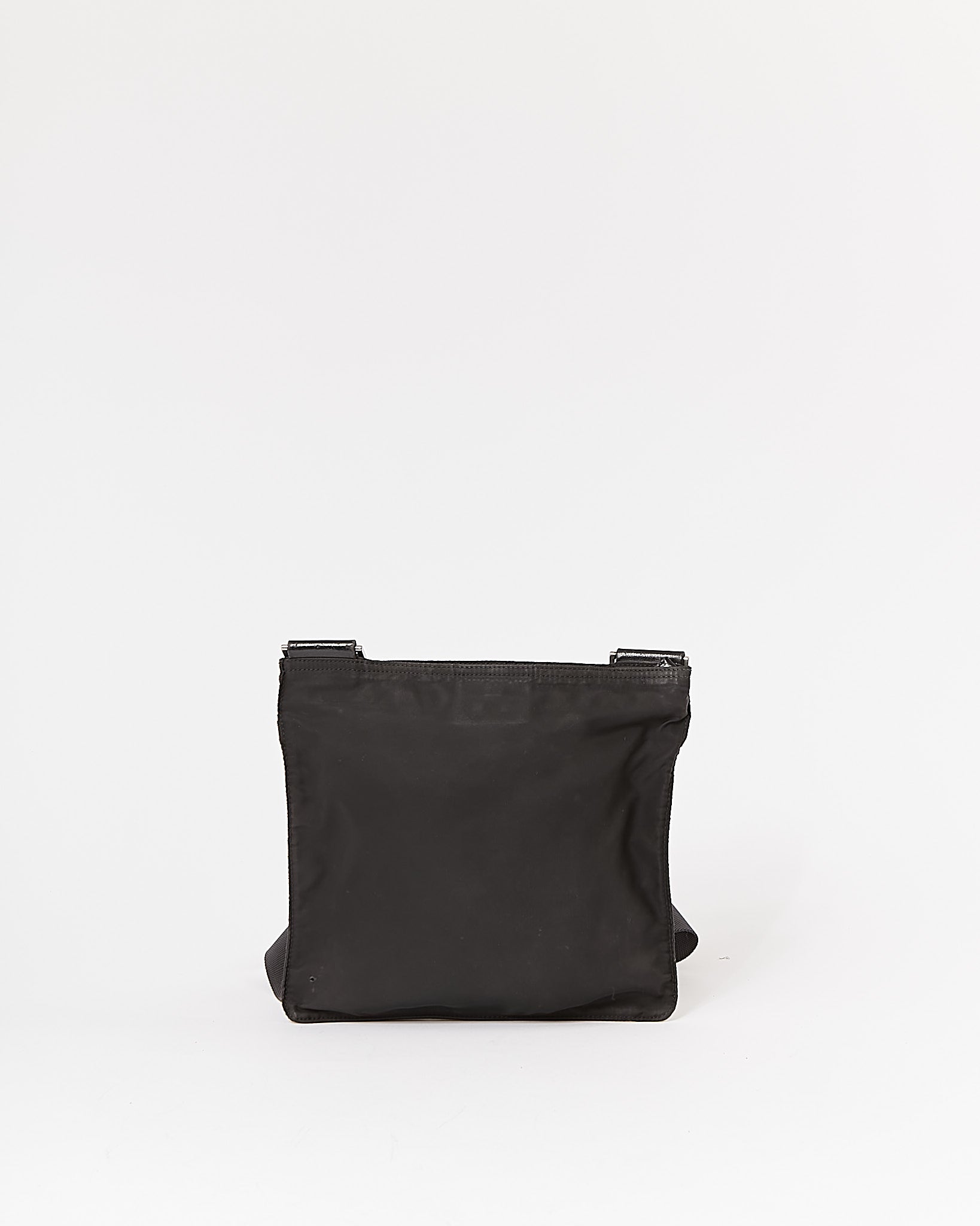 Black Nylon Tessuto Messenger Flat Crossbody Bag