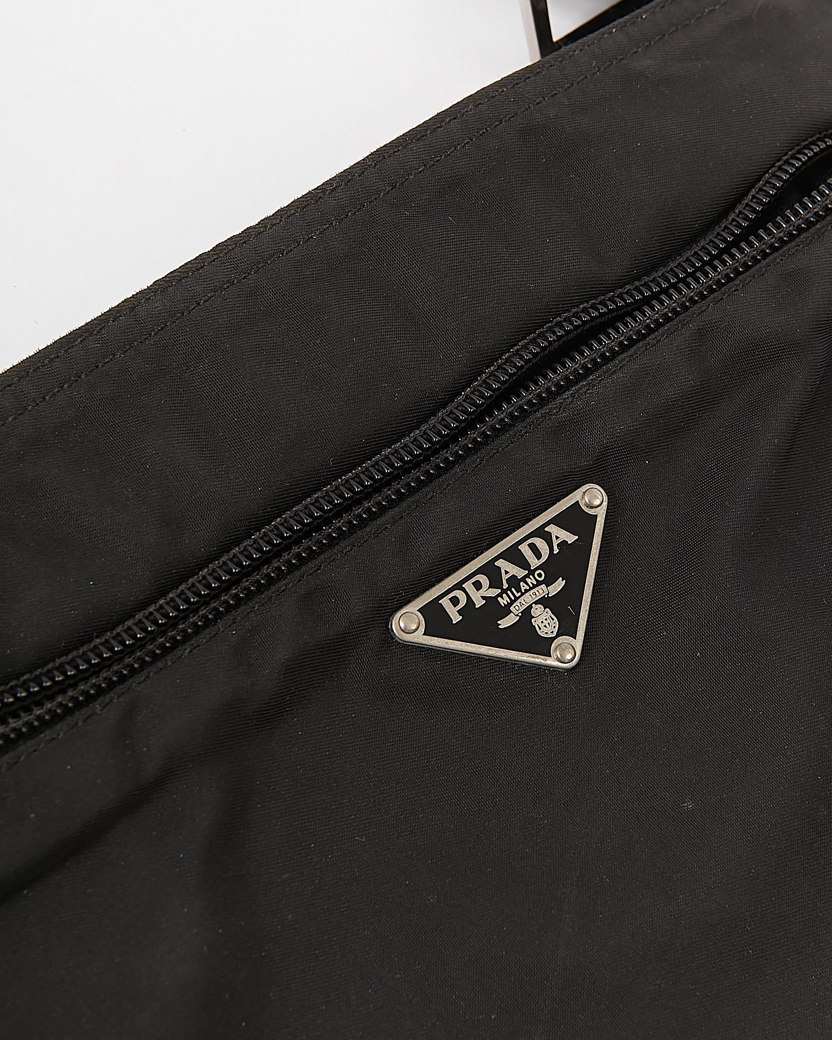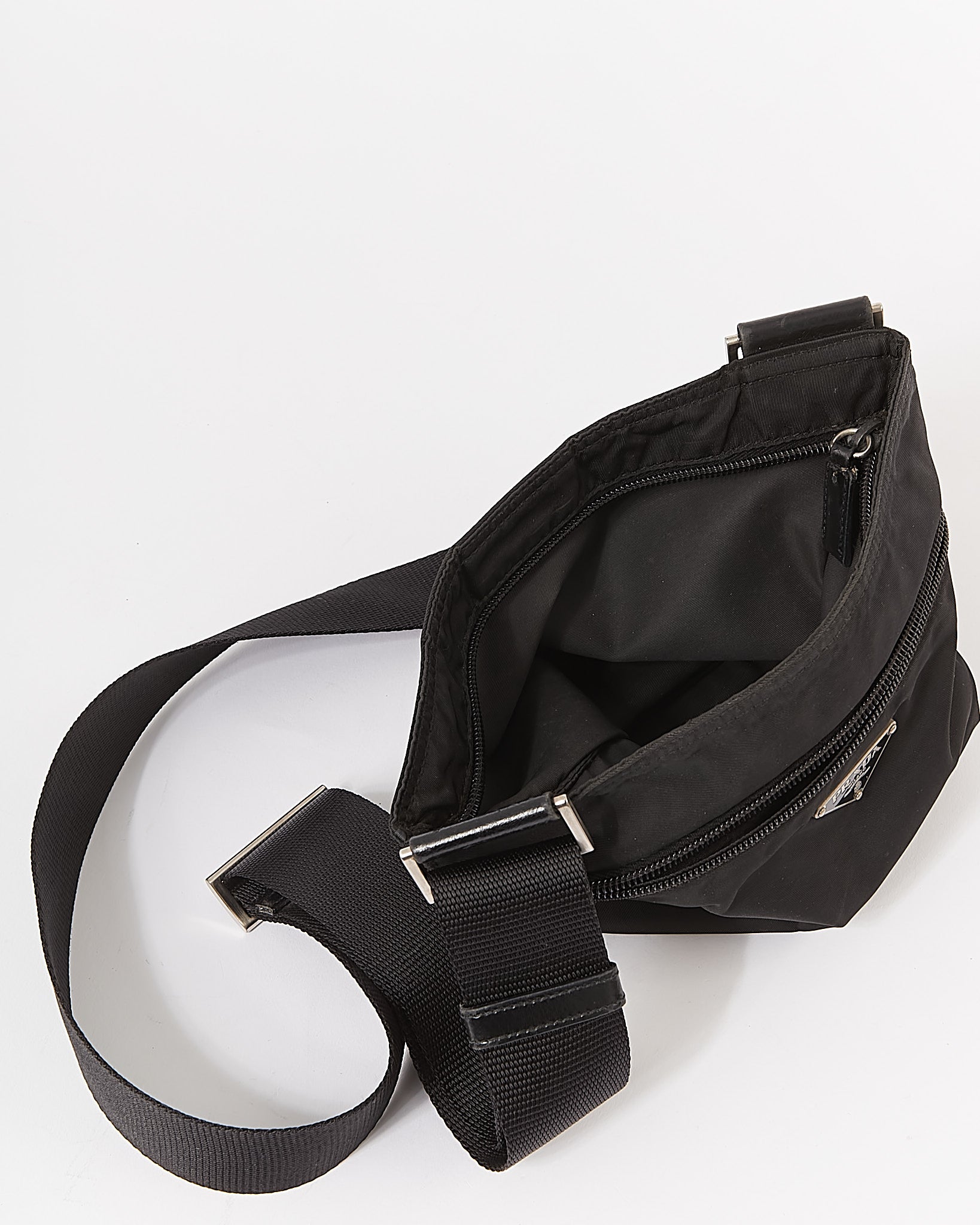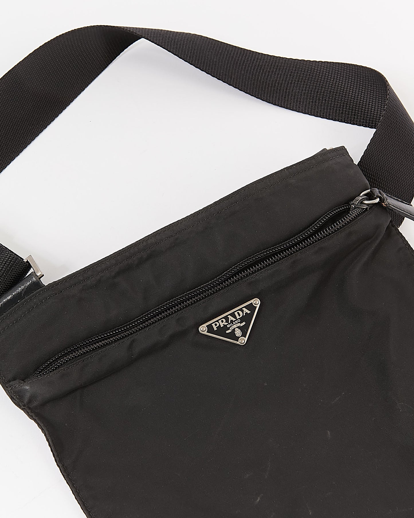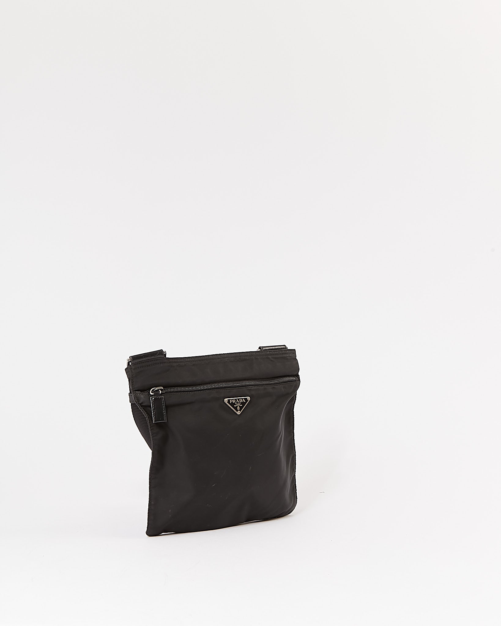 Black Nylon Tessuto Messenger Flat Crossbody Bag