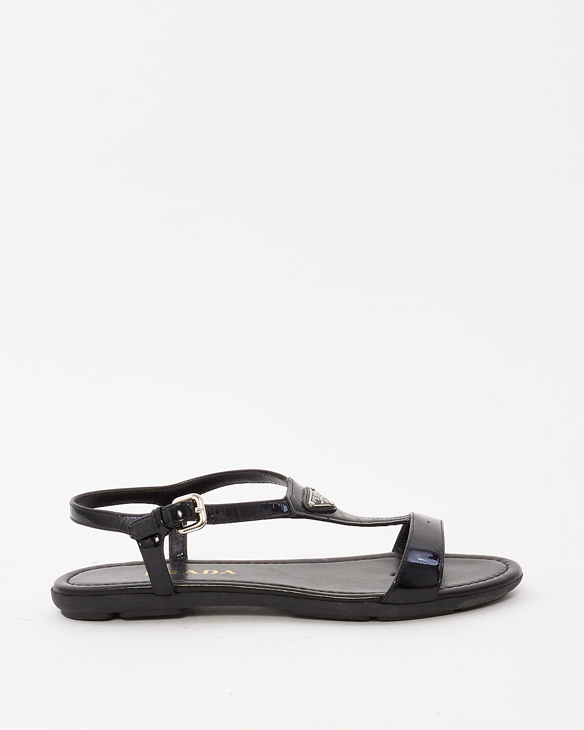 Black Patent Leather Logo Strappy Flat Sandals - 36.5