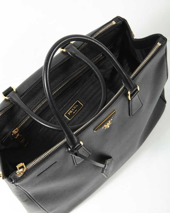 Black Saffiano Large Double Zip Galleria Lux Tote Bag