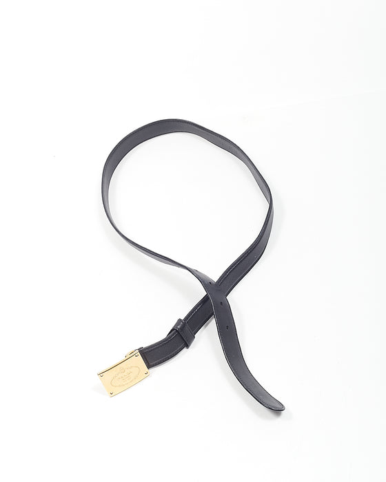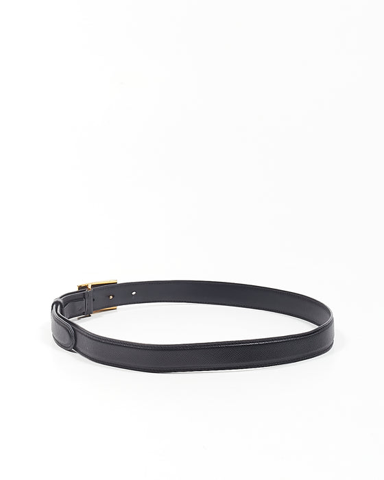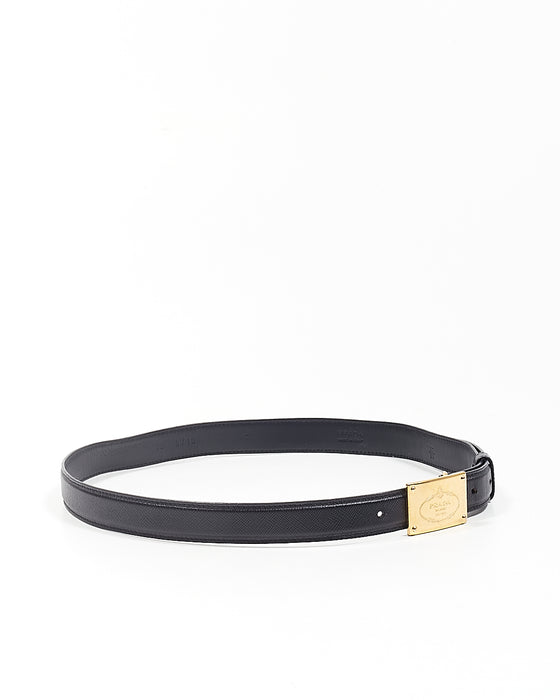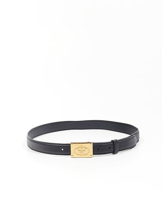 Black Saffiano Leather Buckle Logo Belt - 32/80