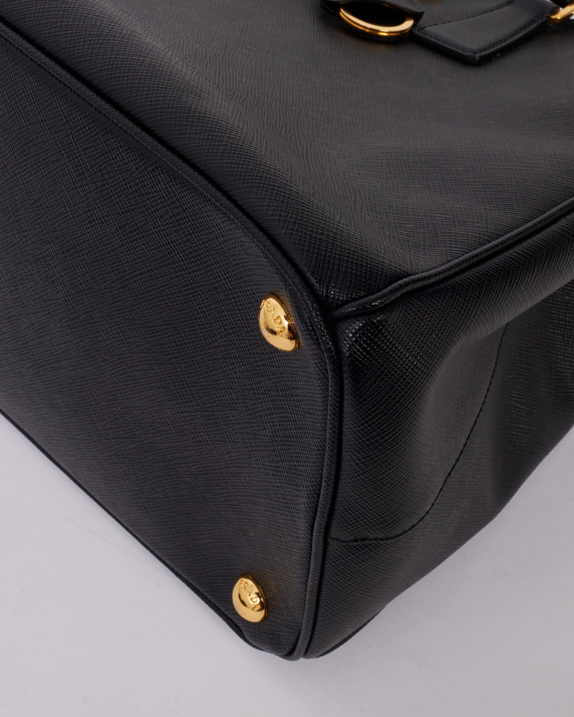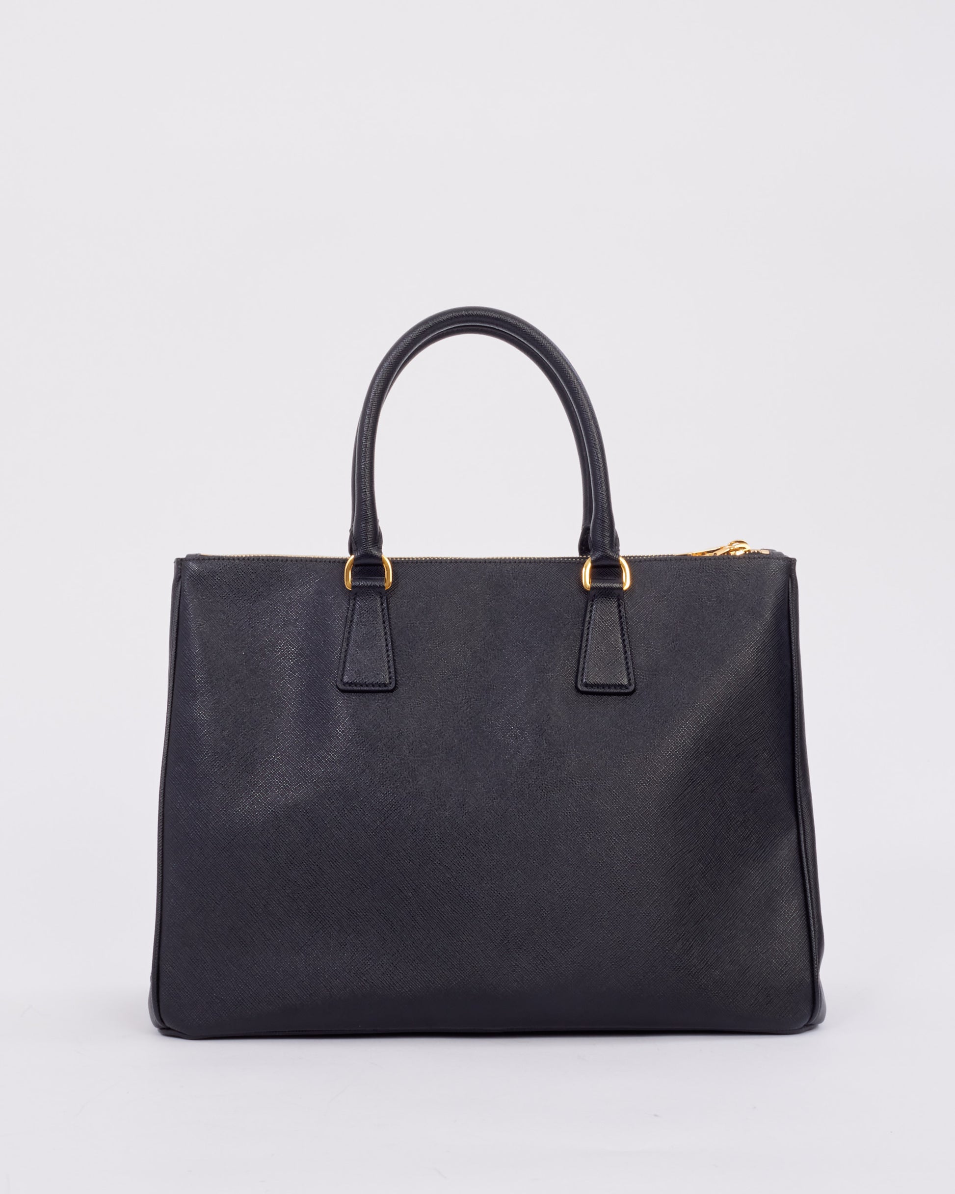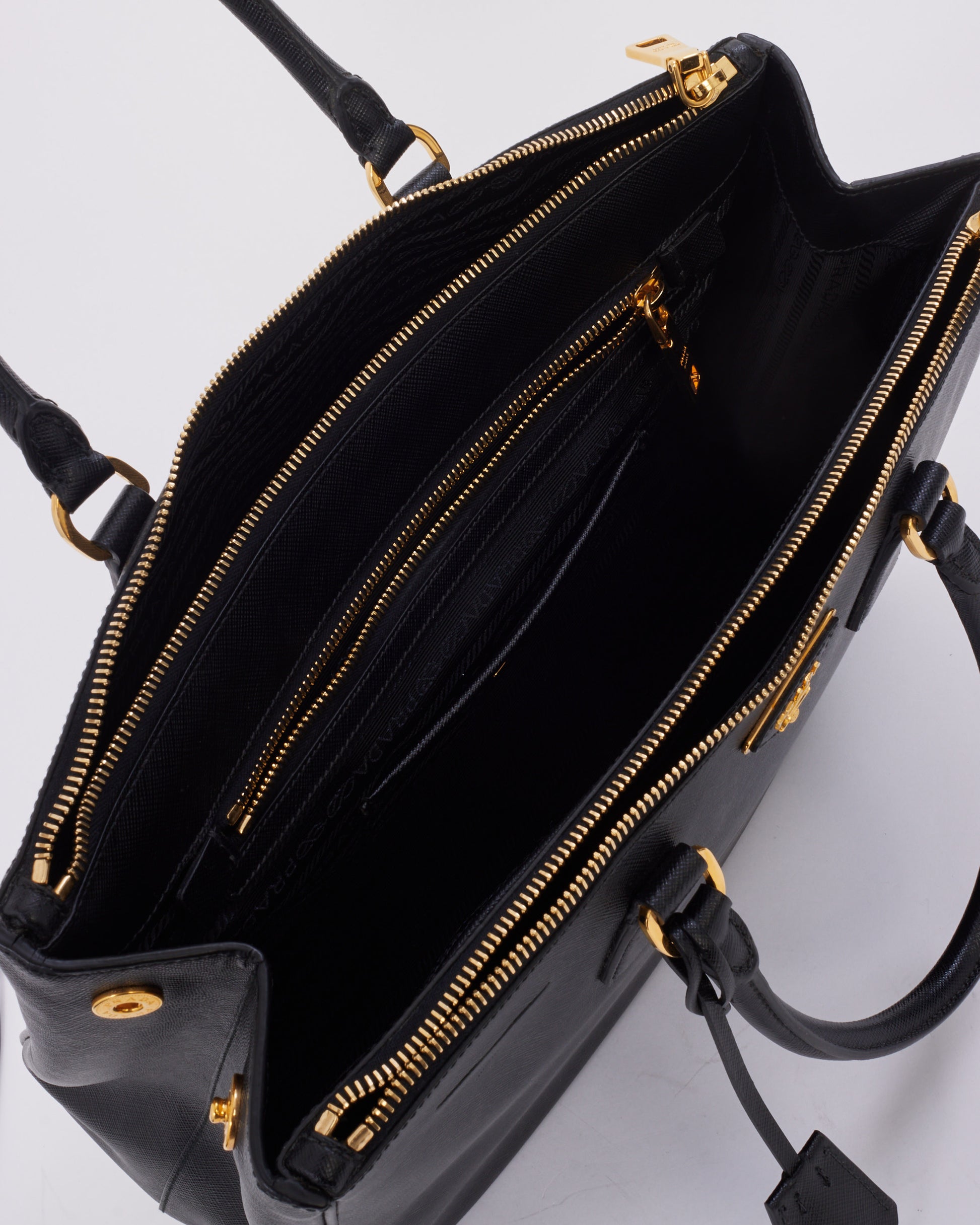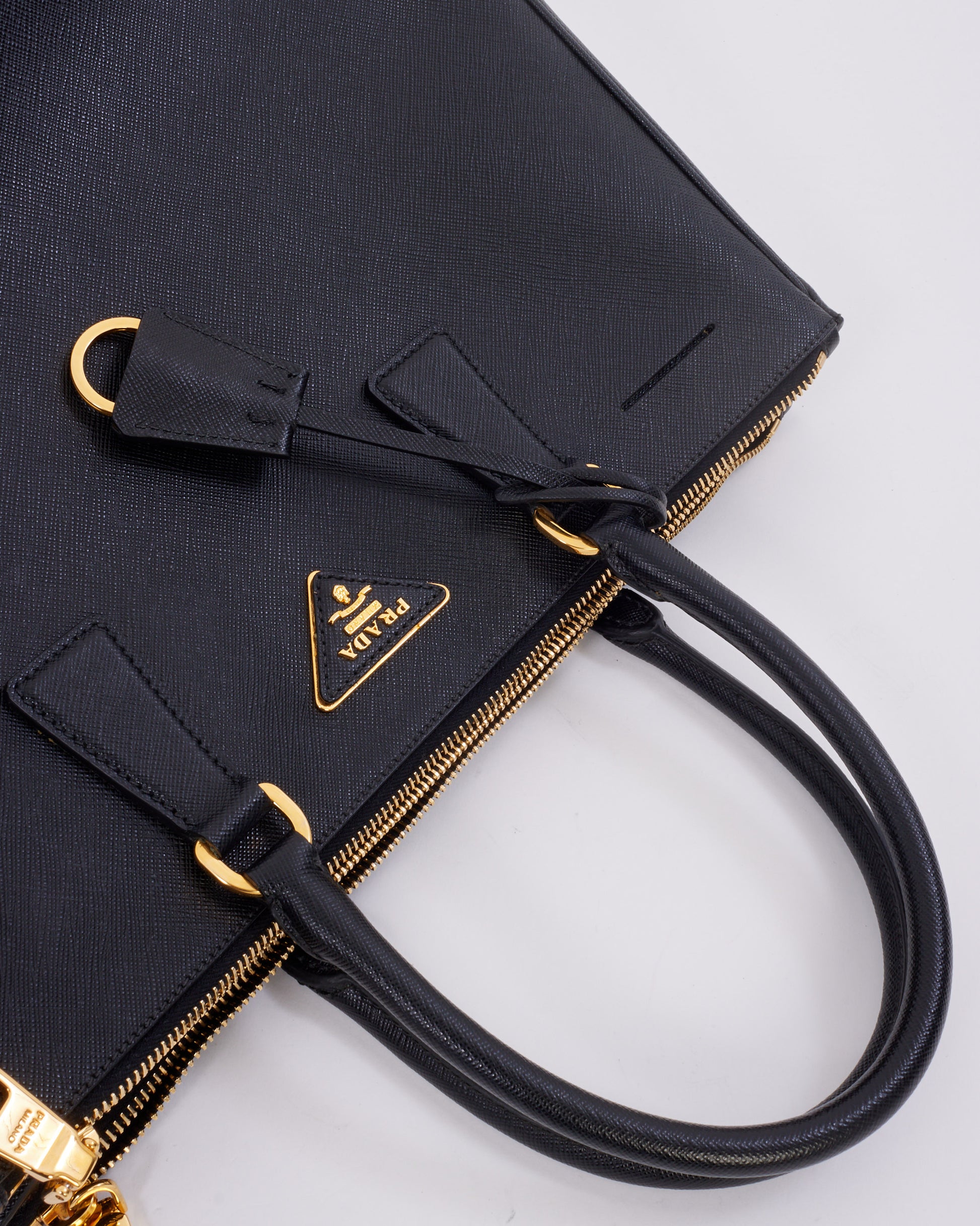 Black Saffiano Leather Double Zip Medium Galleria Top Handle Bag