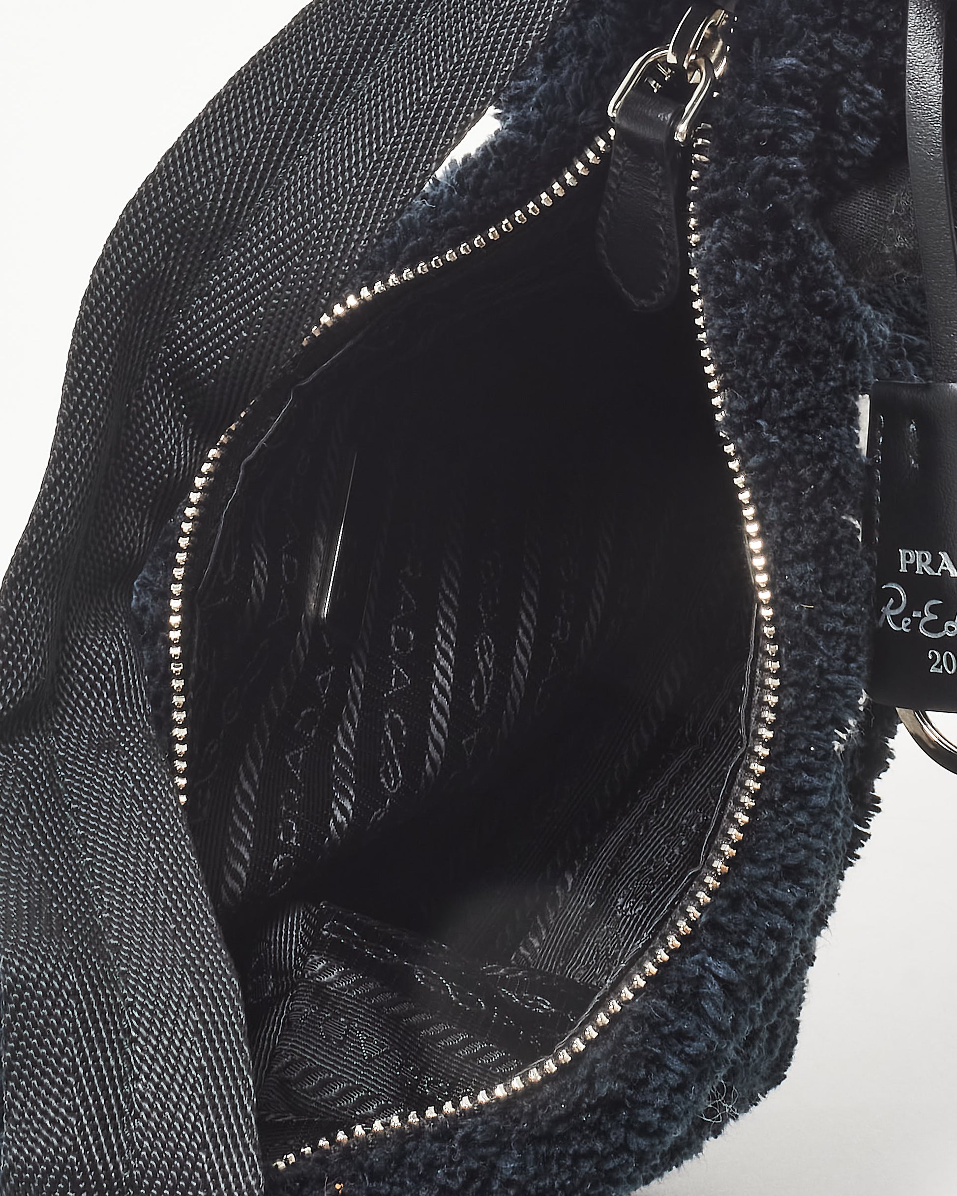 Make a statement with this authentic pre-owned Prada Black Shearling & White Logo 2000 Re-Edition Shoulder Bag. This unique piece from Prada’s iconic Re-Edition collection reimagines the classic 2000 silhouette with a modern twist. Crafted from luxurious black shearling, the bag features a bold white Prada logo, creating a striking contrast. Its compact, rounded shape and comfortable shoulder strap make it perfect for casual wear, adding a touch of high-fashion flair to any outfit. Celebrate Prada’s heritage and timeless style with this eye-catching, limited-edition shoulder bag that blends luxury with contemporary design. Shop pre-owned authentic Prada handbags at Retyche.