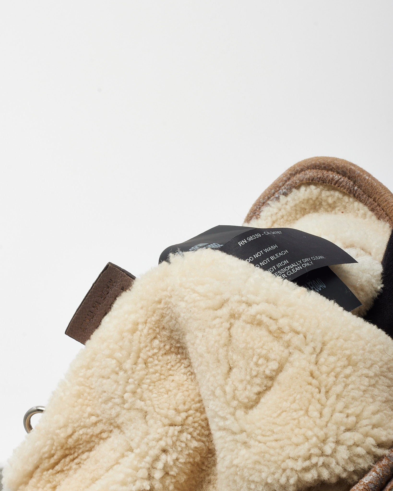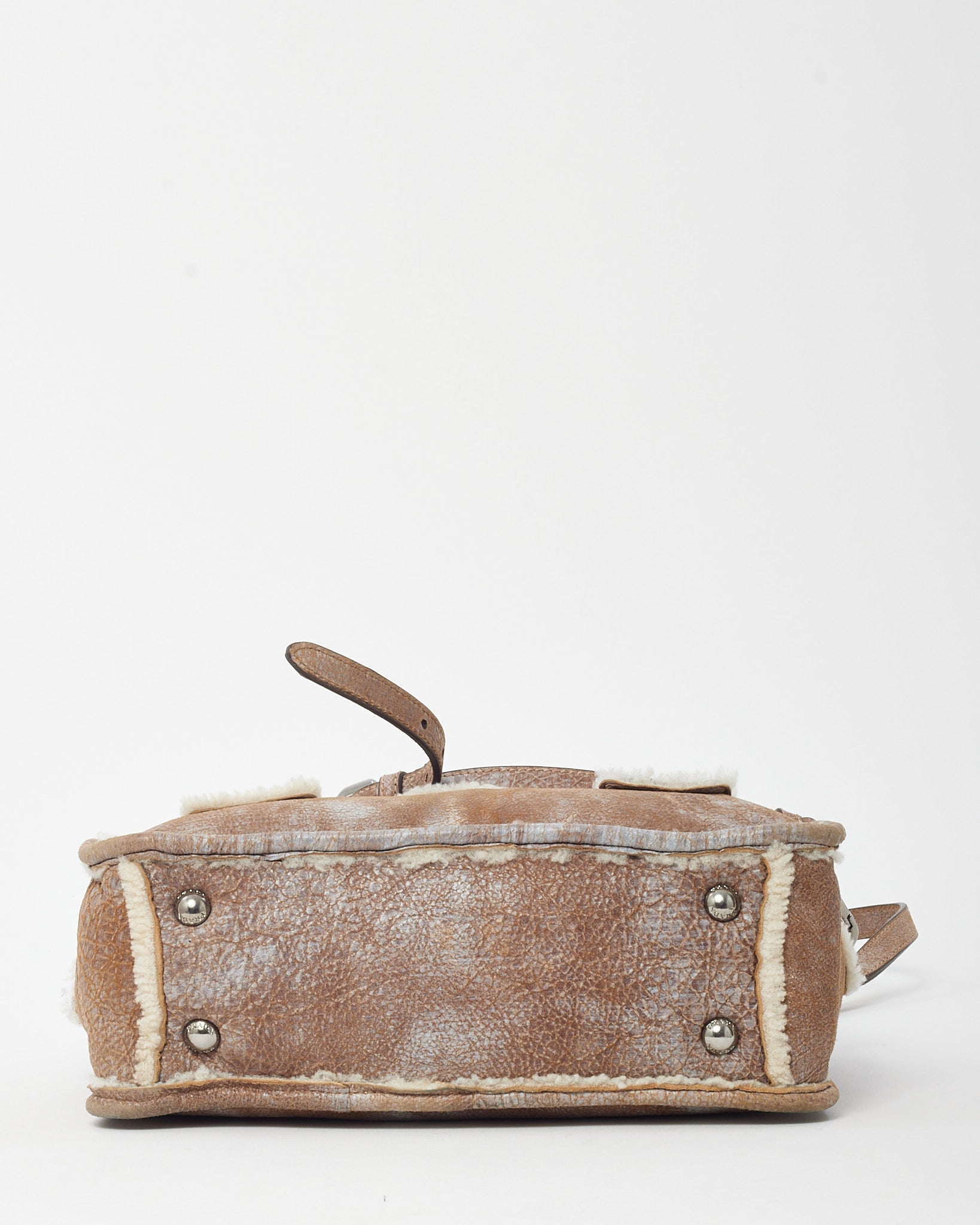 Brown Suede and Shearling Buckle 2way Top Handle Bag with Strap