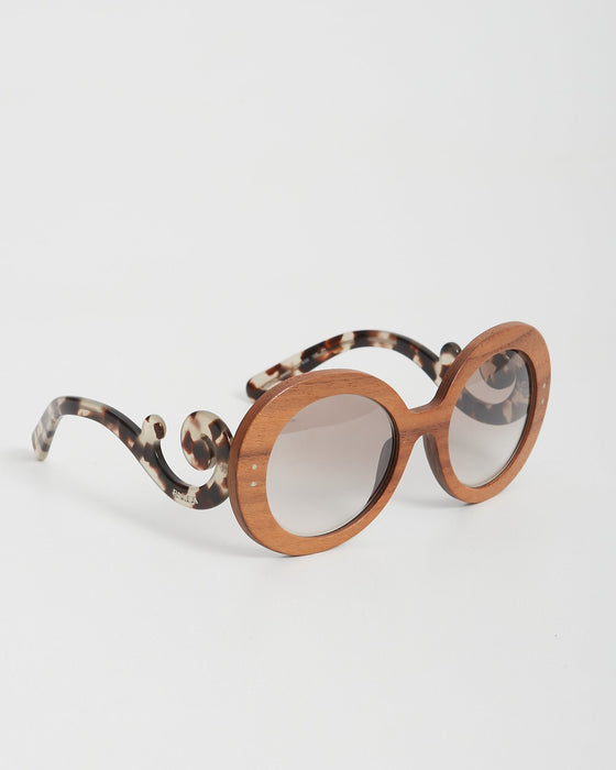 Brown Wooden SPR27R Baroque Round Sunglasses
