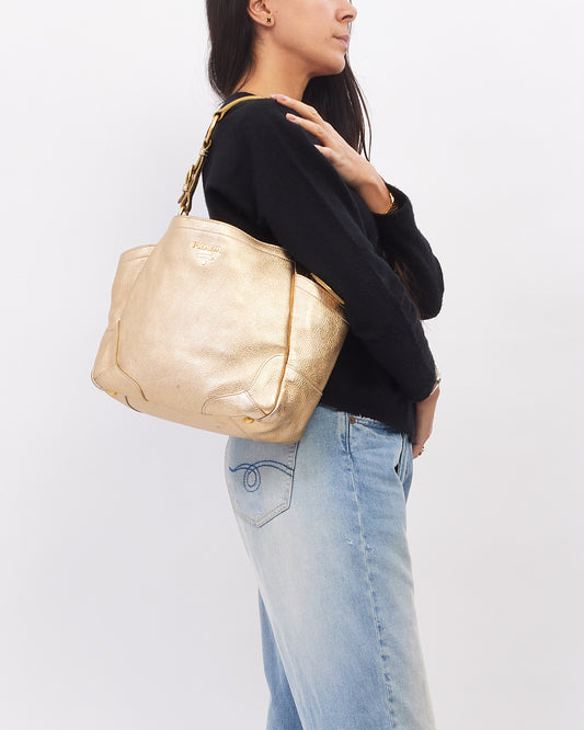 Gold Metallic Daino Leather Hobo Shoulder Bag