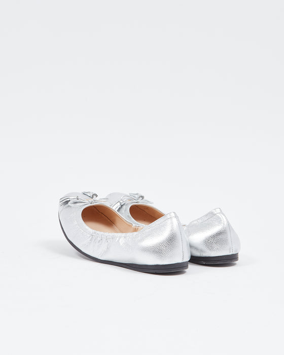 Silver Leather Metallic Ballerina Flats - 37.5