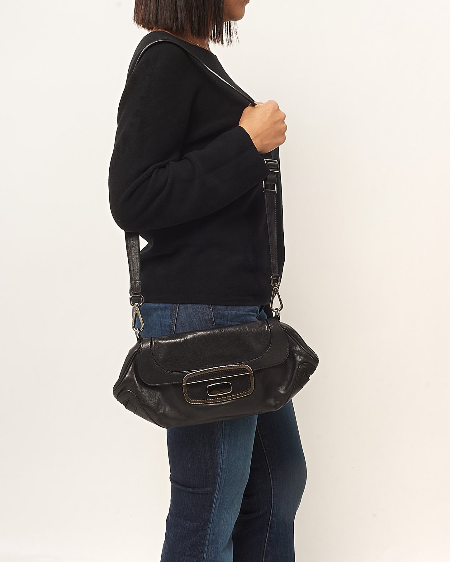 Vintage Black Buffalo Leather Skipper Crossbody Bag BT0461