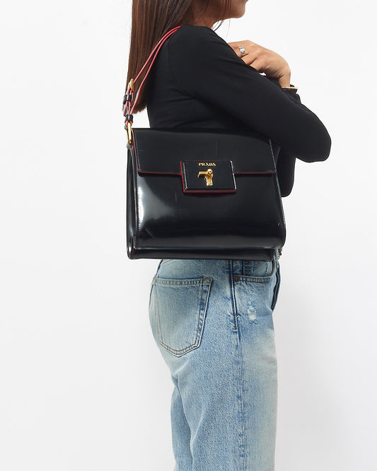 Explore Prada's exquisite collection of handbags, featuring this certified pre-owned Vintage Black Leather & Red Lining Shoulder Bag. Embodying timeless elegance and modern sustainability, each piece, including favorites like this, is authenticated by Retyche. Discover sustainable luxury — shop our current treasures or find inspiration for your next coveted find.