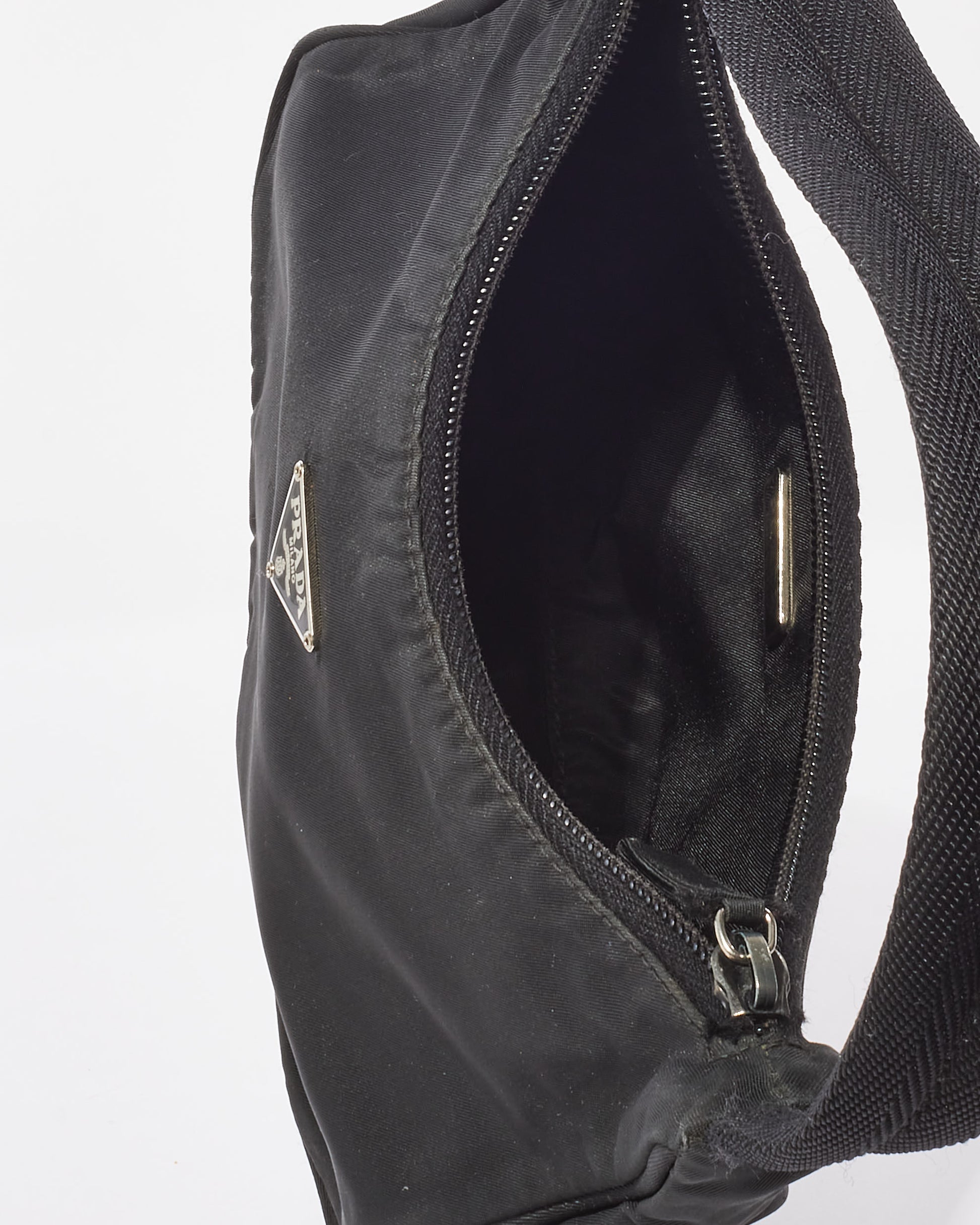 Vintage Black Nylon Tessuto Mini Hobo Bag