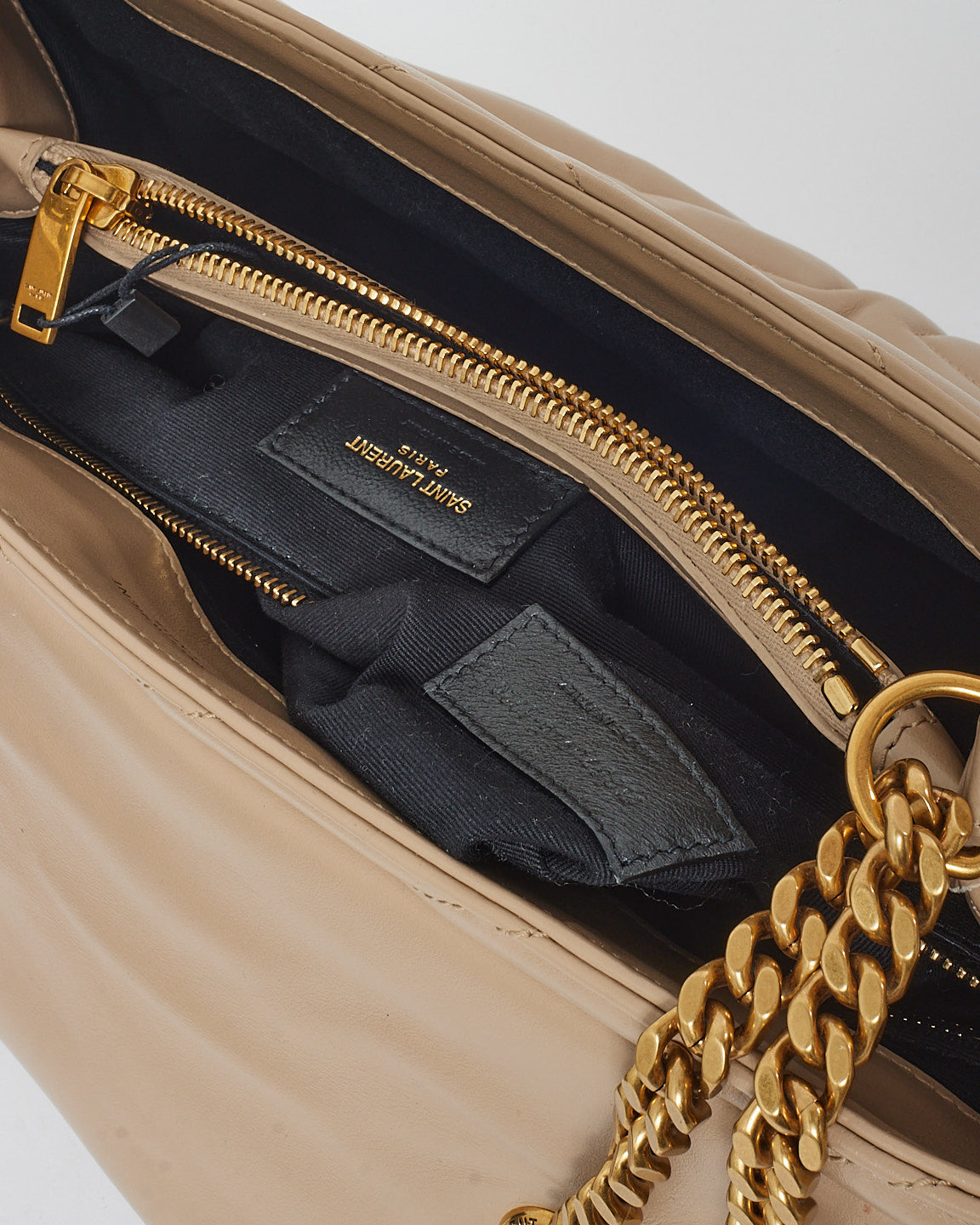 Explore Saint Laurent's exquisite collection of handbags, featuring this certified pre-owned Beige Chevron Leather Medium Loulou Shoulder Bag GHW. Embodying timeless elegance and modern sustainability, each piece, including favorites like this, is authenticated by Retyche. Discover sustainable luxury — shop our current treasures or find inspiration for your next coveted find.