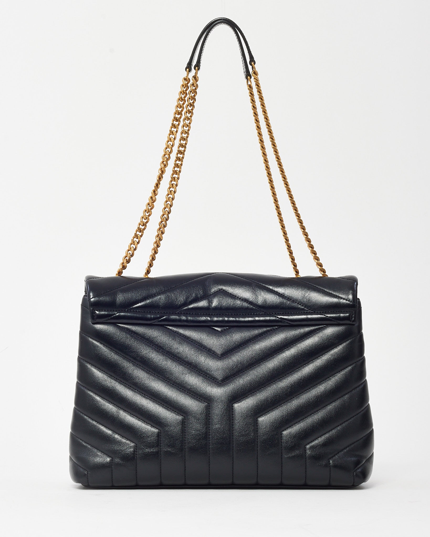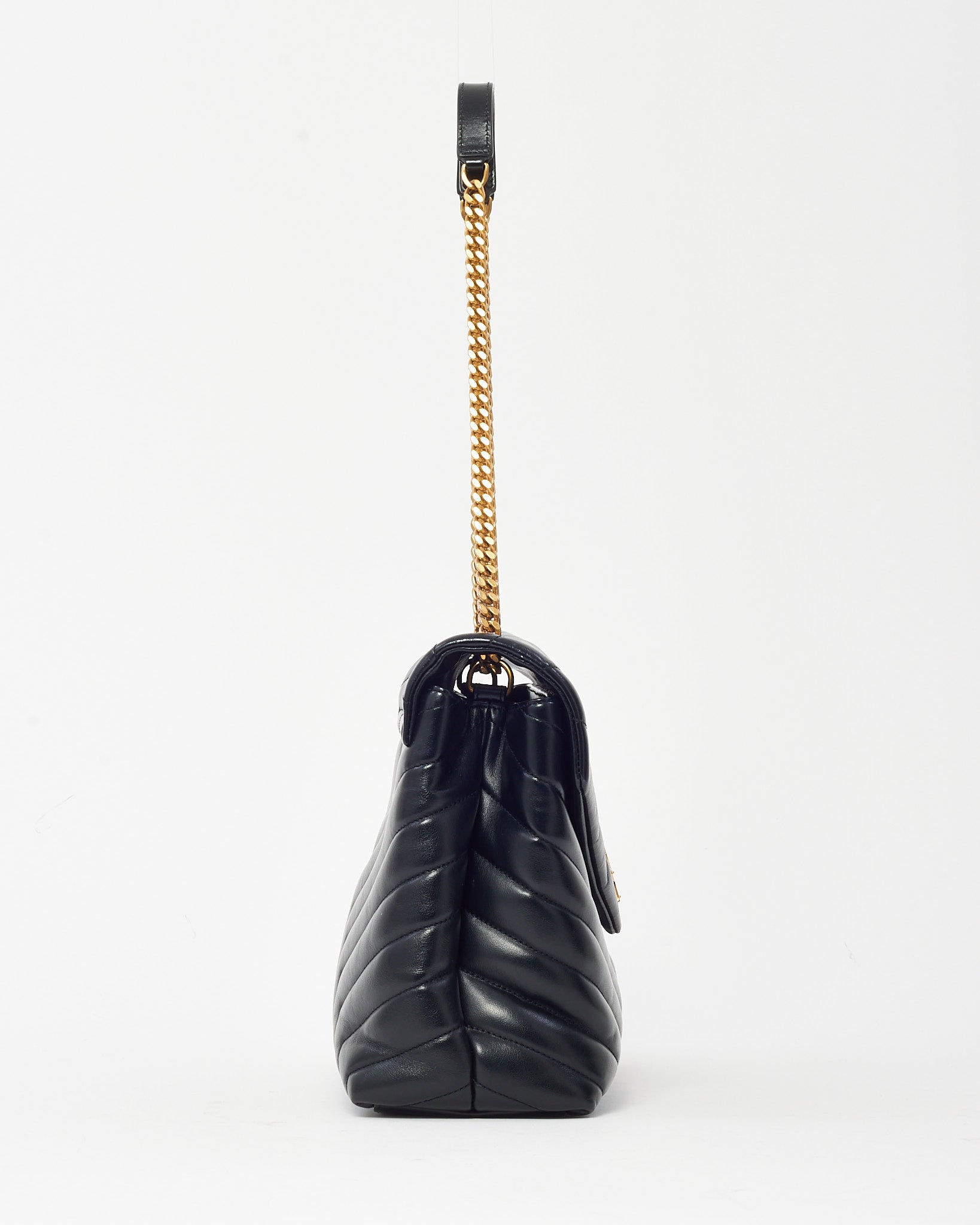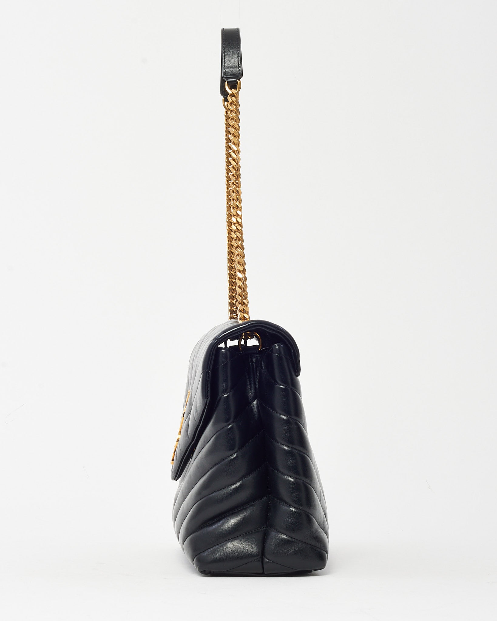 Black Chevron Leather Medium Loulou Shoulder Bag GHW