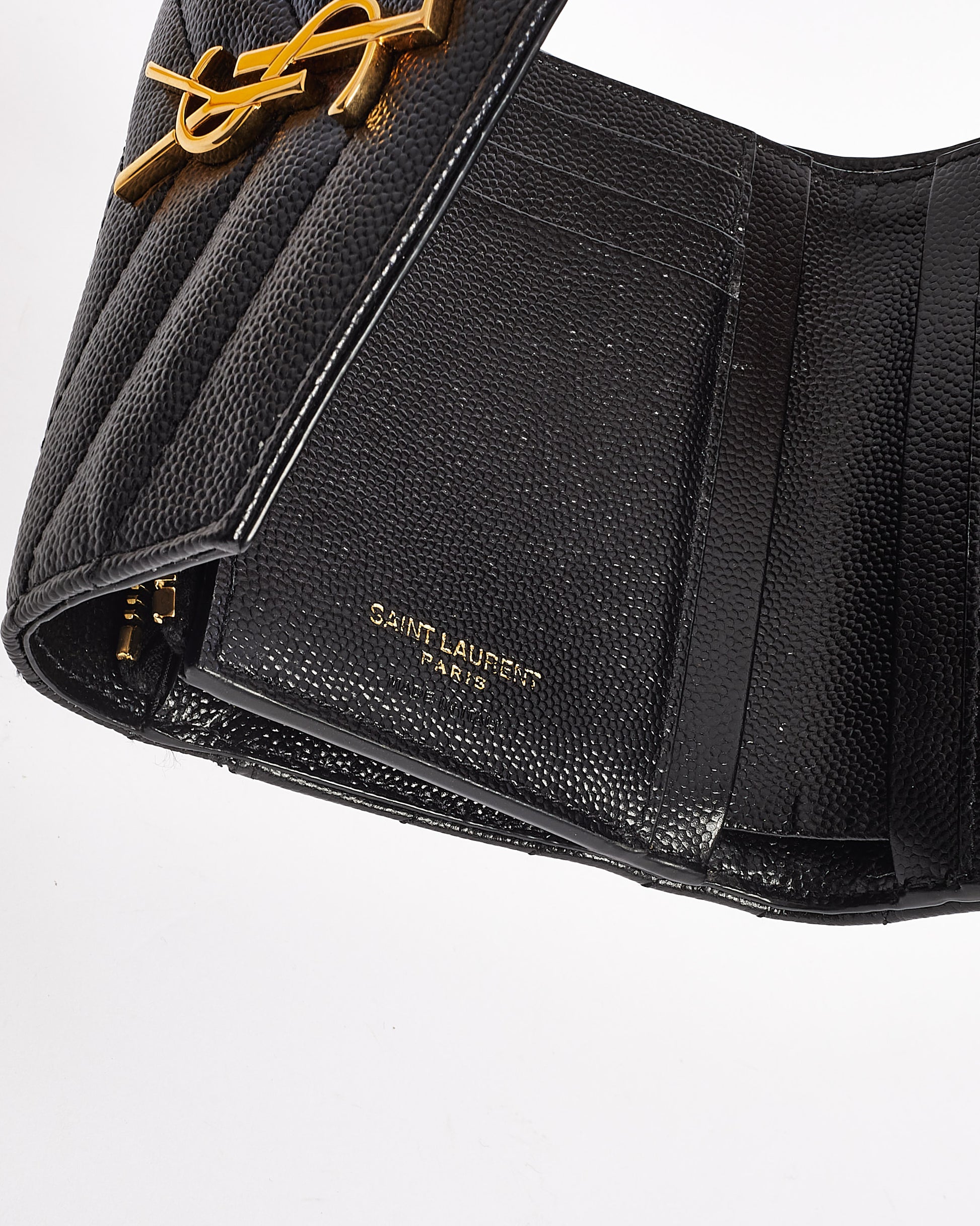 Black Grain de Poudre Embossed Leather Cassandre Matlasssé Small Envelope Wallet