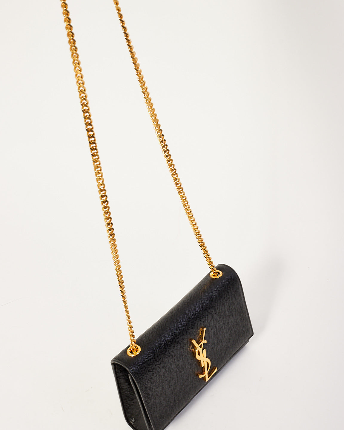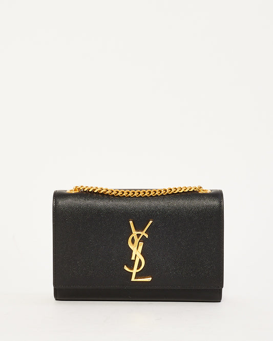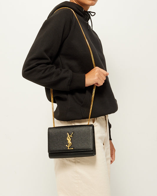 Black Grain de Poudre Embossed Leather Small Kate Bag