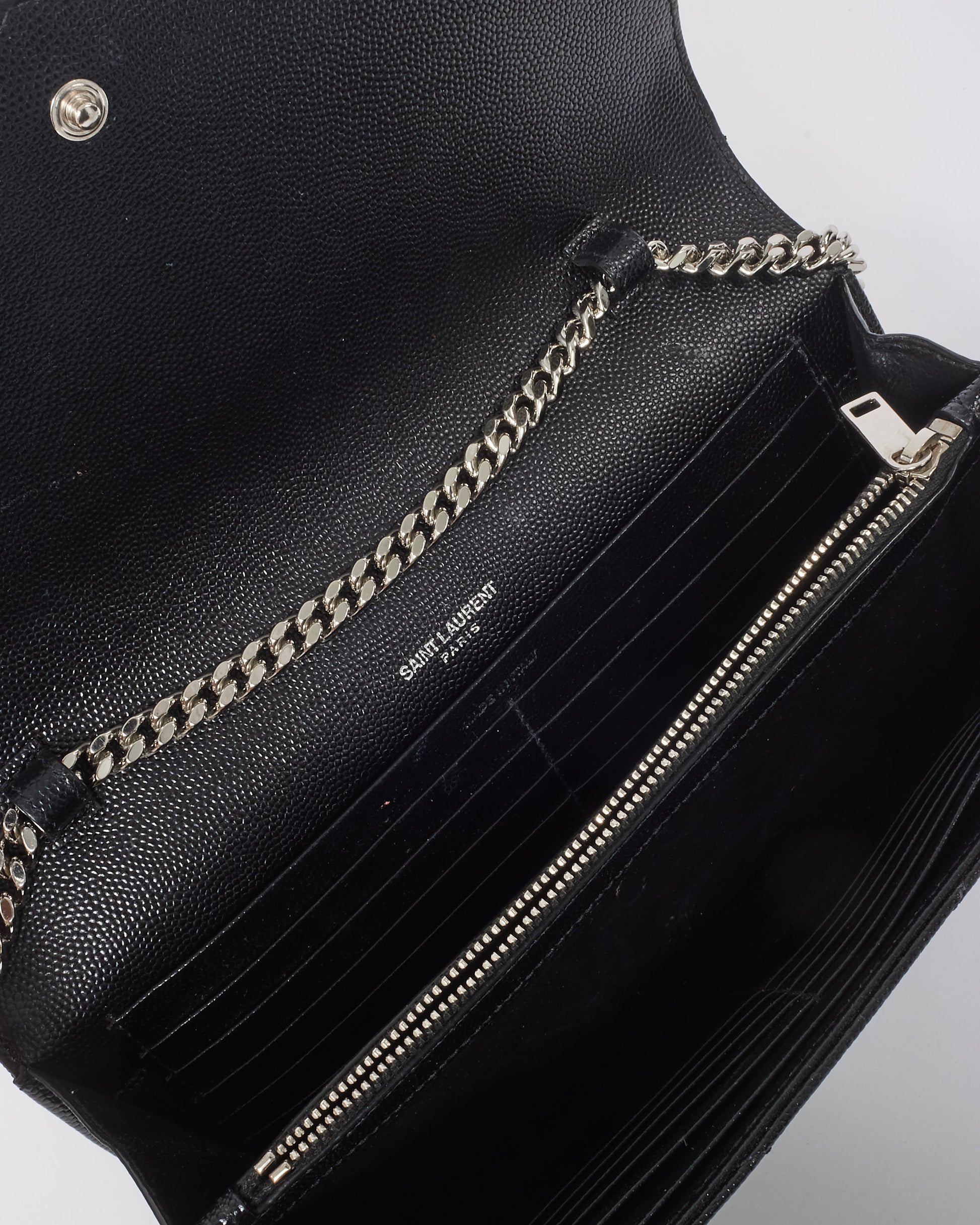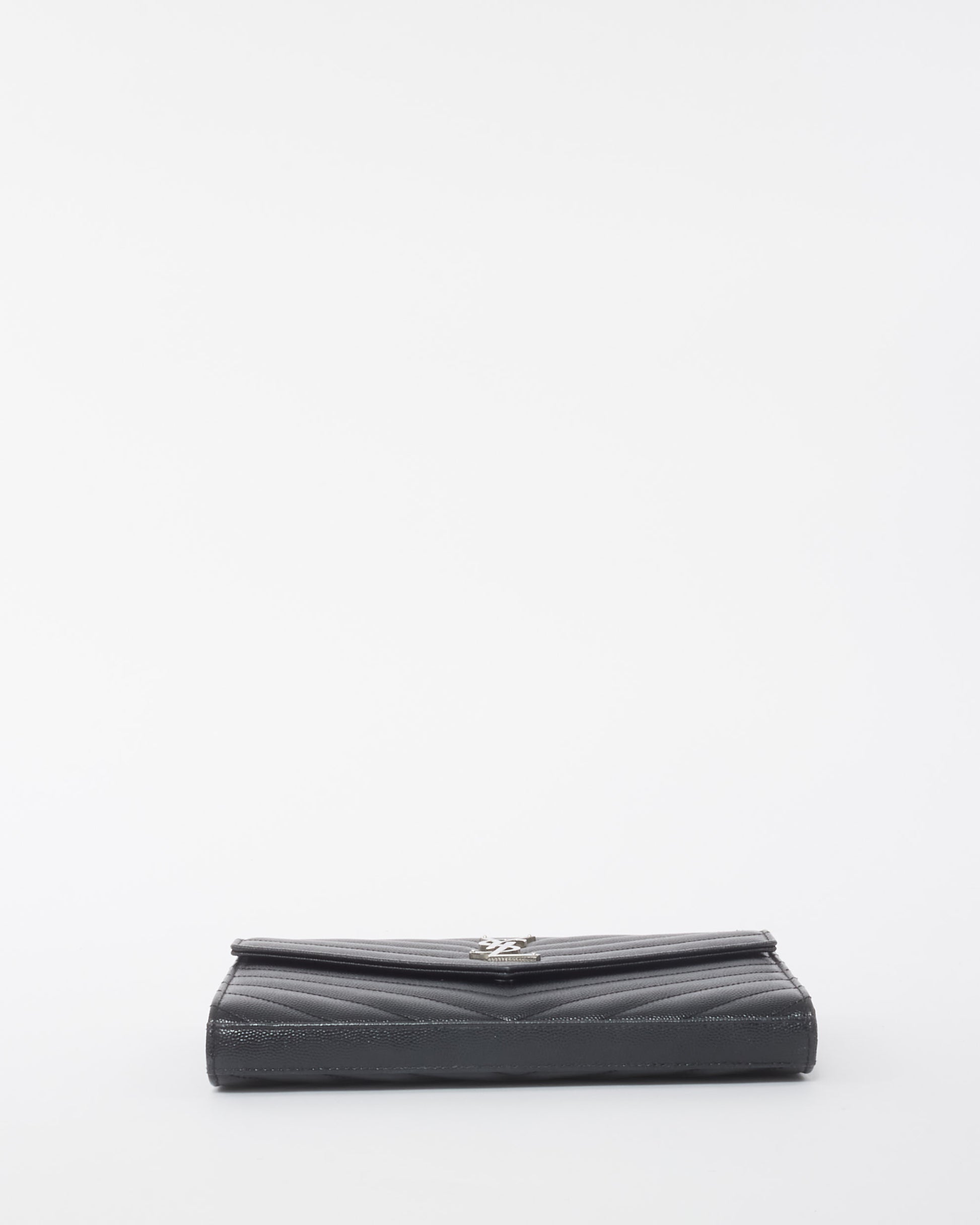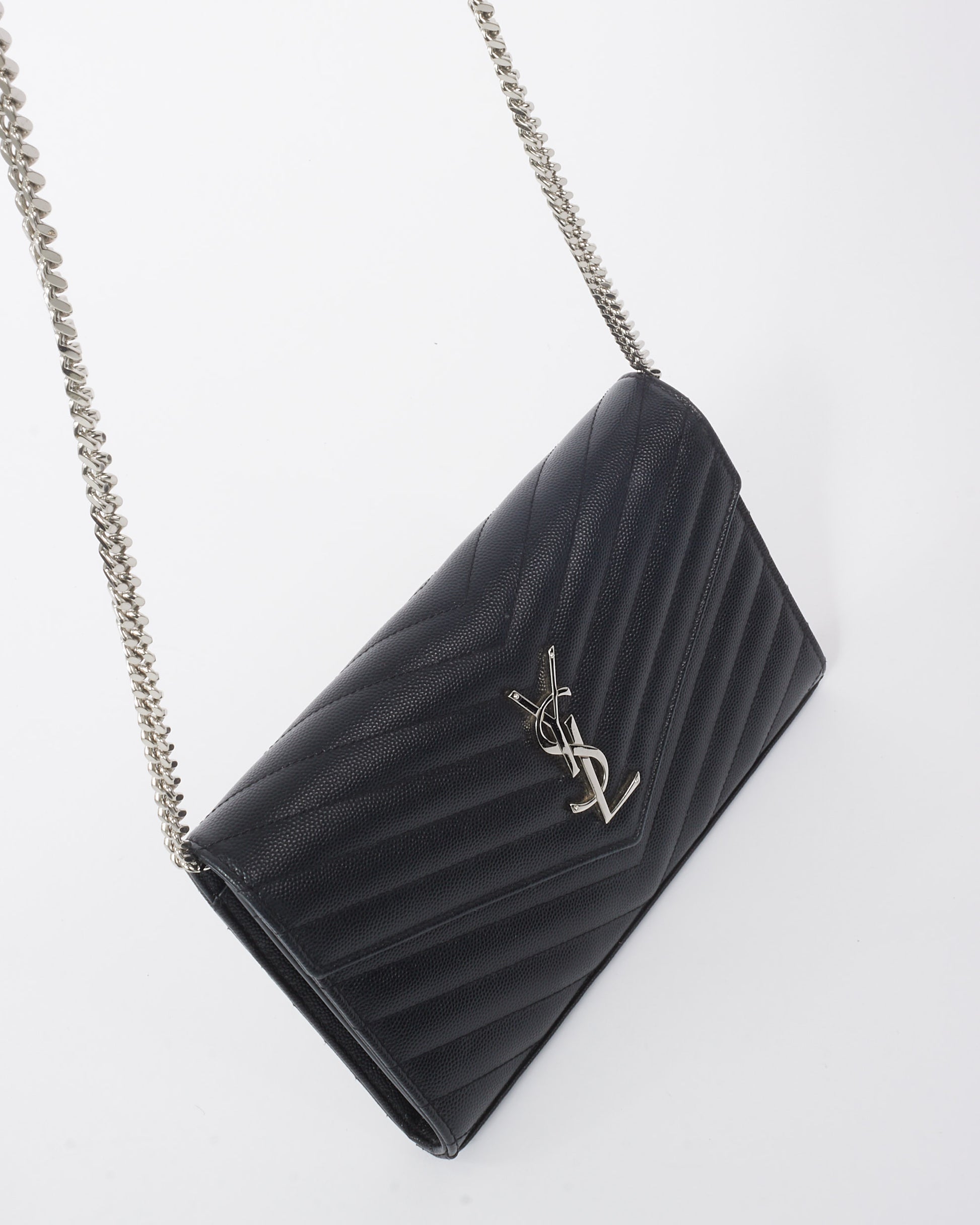 Black Grain de Poudre Leather Classic Cassandre Chain Wallet Crossbody