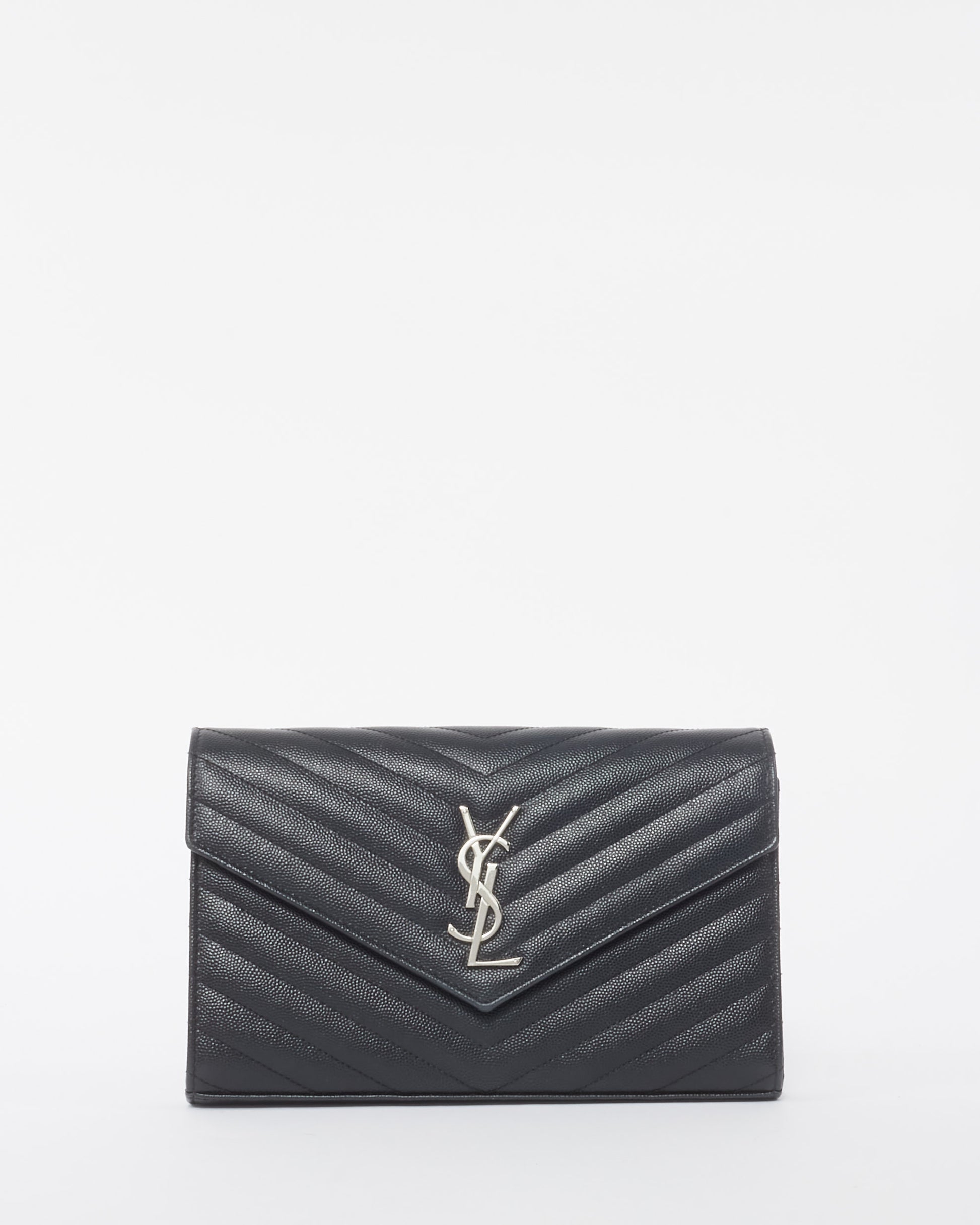 Explore Saint Laurent's exquisite collection of Handbags, featuring this certified pre-owned Black Grain de Poudre Leather Classic Cassandre Chain Wallet Crossbody. Embodying timeless elegance and modern sustainability, each piece, including favorites like this, is authenticated by Retyche. Discover sustainable luxury — shop our current treasures or find inspiration for your next coveted find.