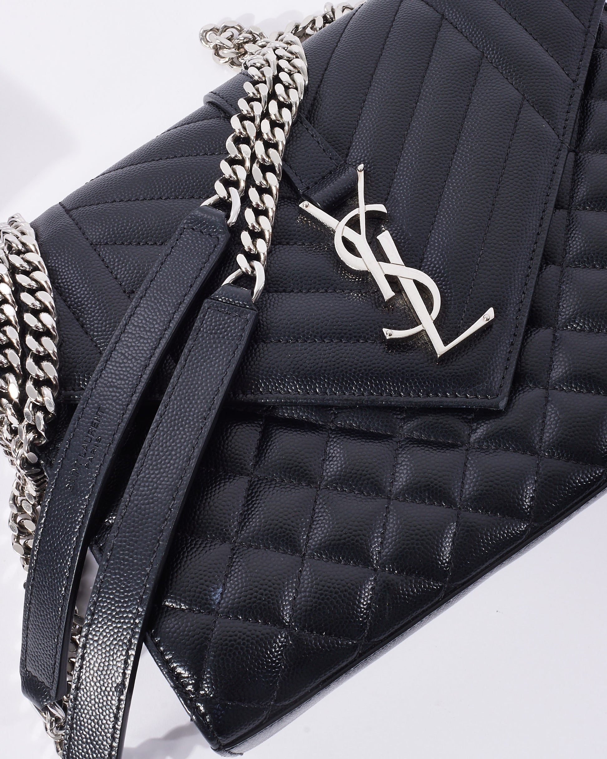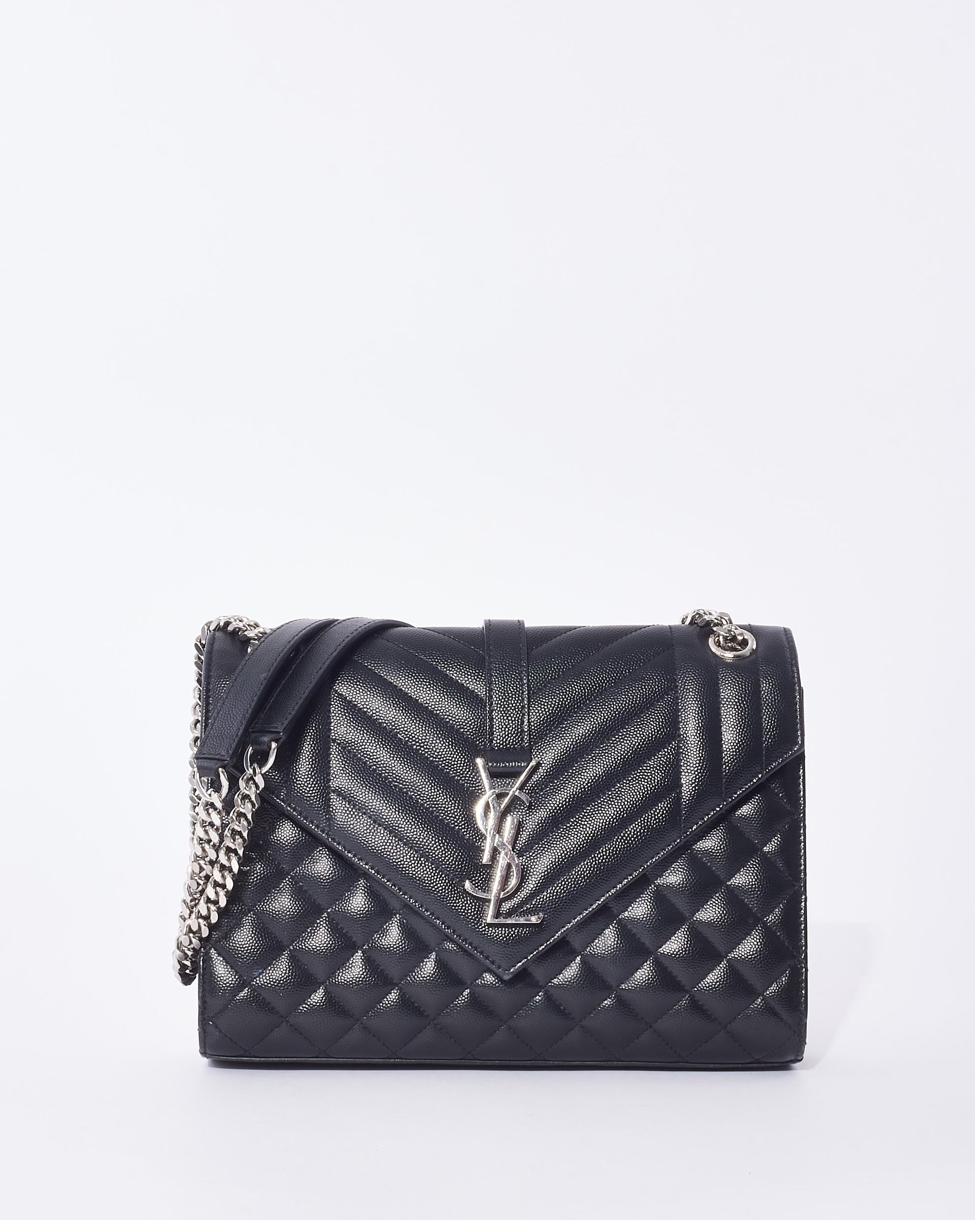 Explore Saint Laurent's exquisite collection of handbags, featuring this certified pre-owned Black Grain De Poudre Leather Medium Envelope Bag. Embodying timeless elegance and modern sustainability, each piece, including favorites like this, is authenticated by Retyche. Discover sustainable luxury — shop our current treasures or find inspiration for your next coveted find.