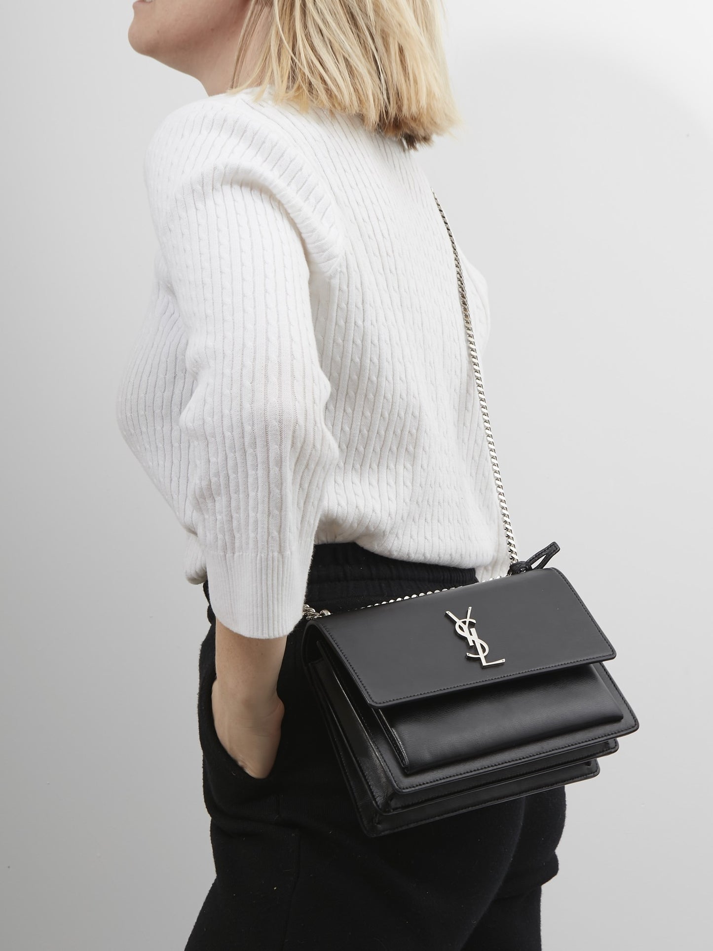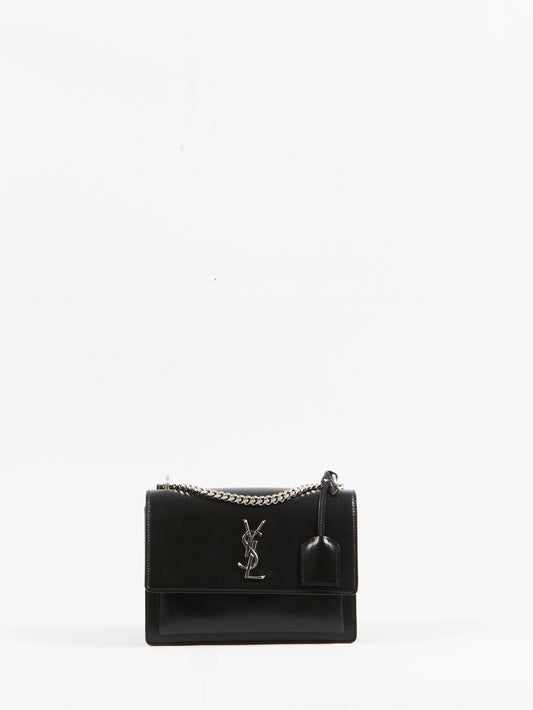 Black Leather Medium Sunset Shoulder Bag