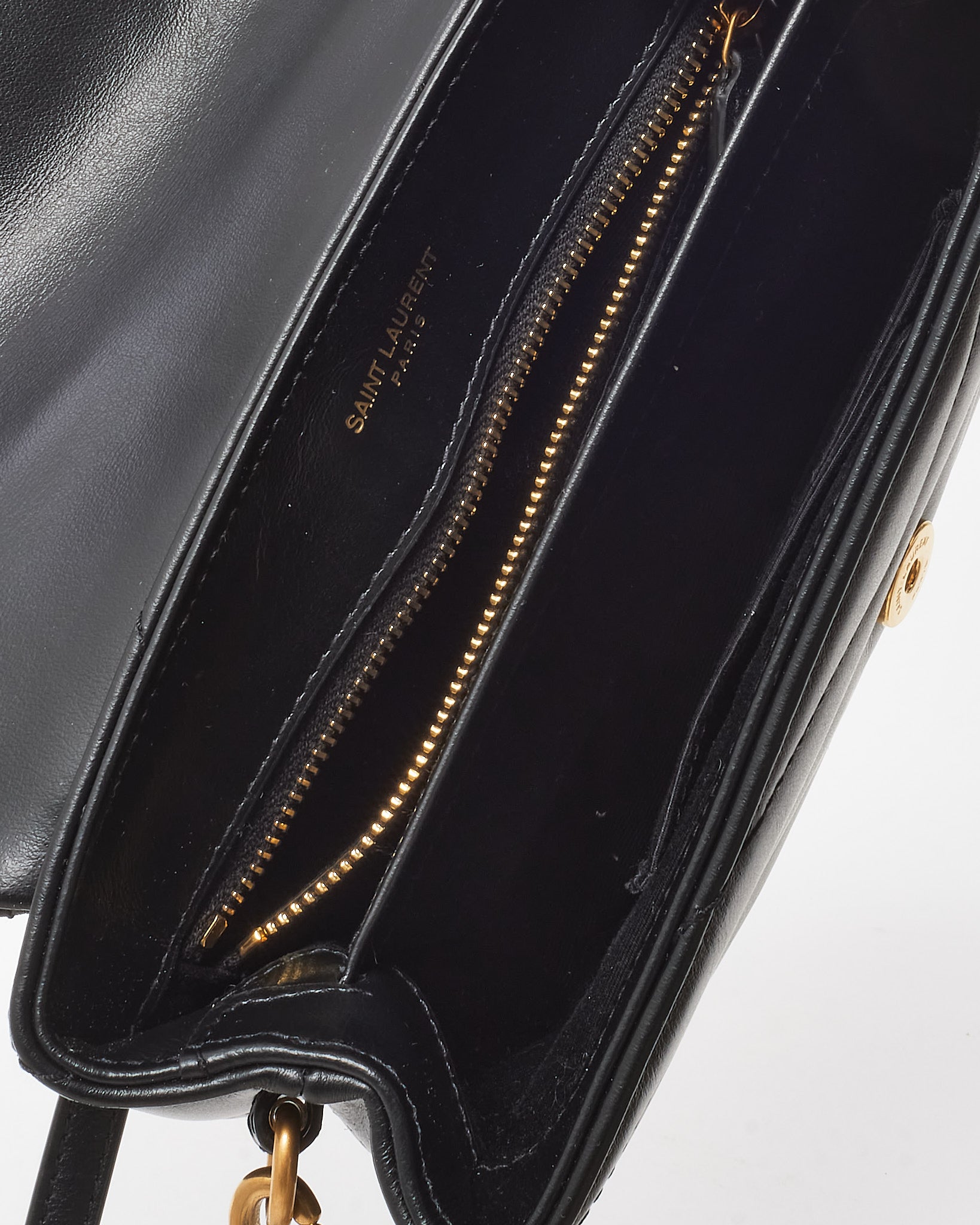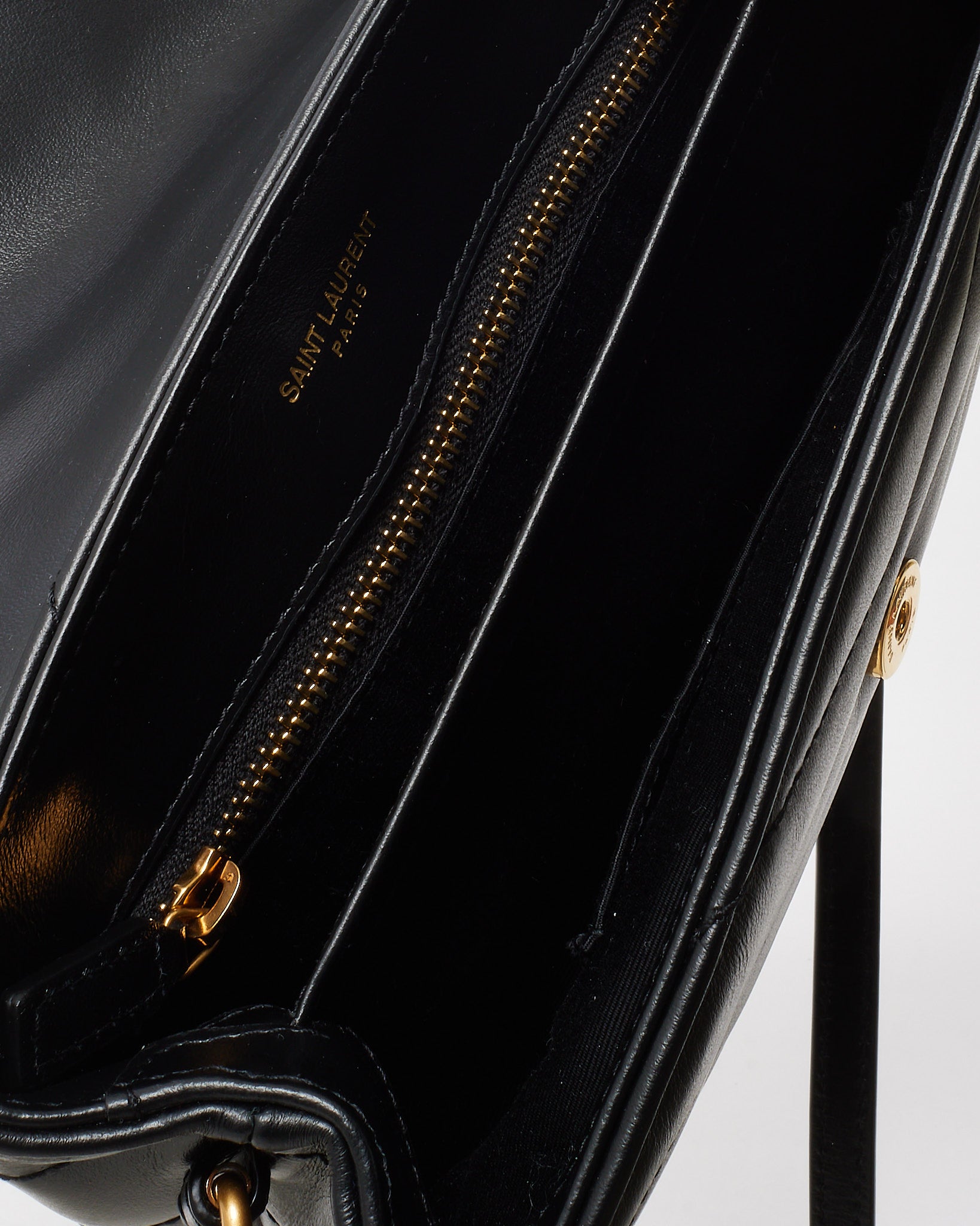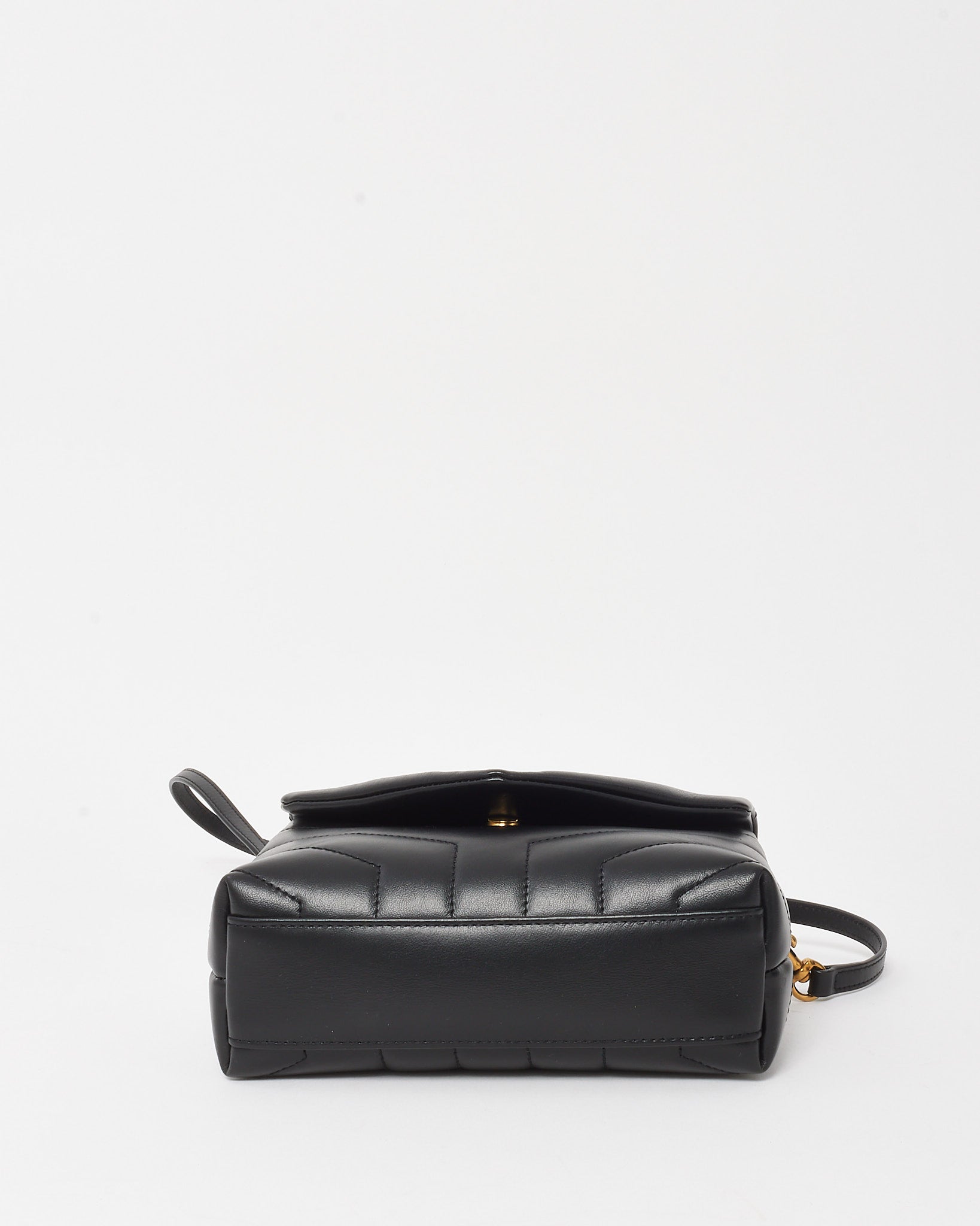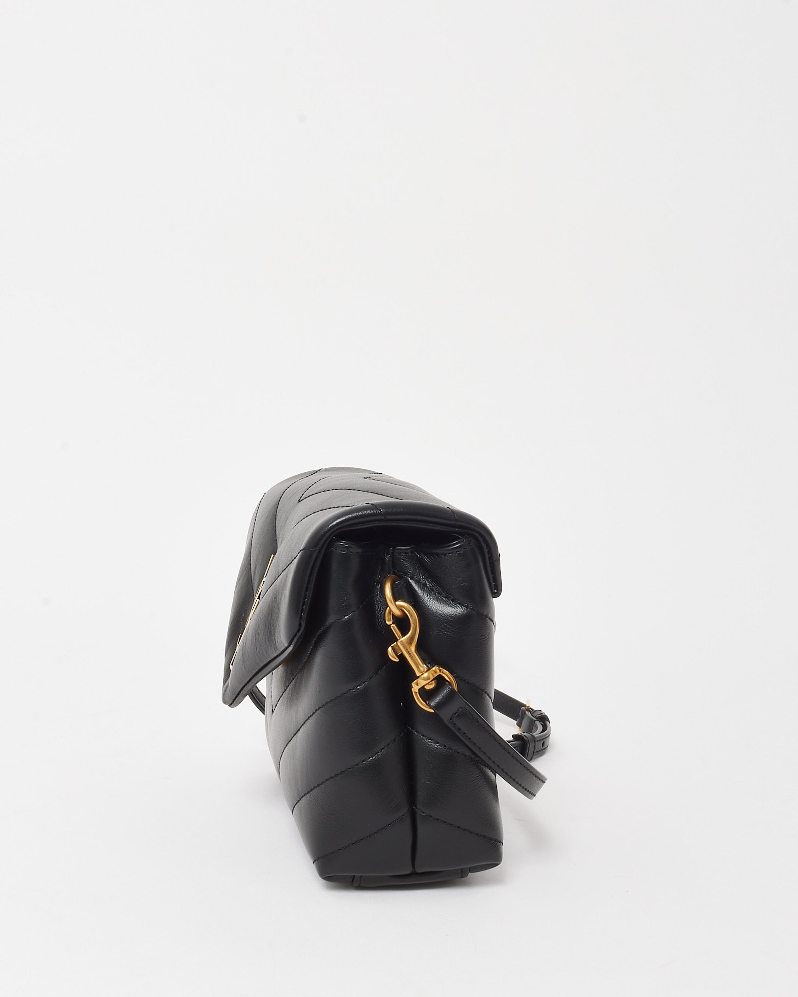A modern icon in mini form, this pre-loved authentic Saint Laurent Toy LouLou bag is crafted from supple black matelassé leather with chevron quilting for a structured yet soft silhouette. Accented with gold-tone hardware, including the signature YSL monogram on the front flap, it exudes timeless Parisian elegance. The compact interior is lined and divided for daily essentials, while the adjustable leather strap allows for both shoulder and crossbody wear. Perfect for elevating everyday looks or transitioning seamlessly into evening.