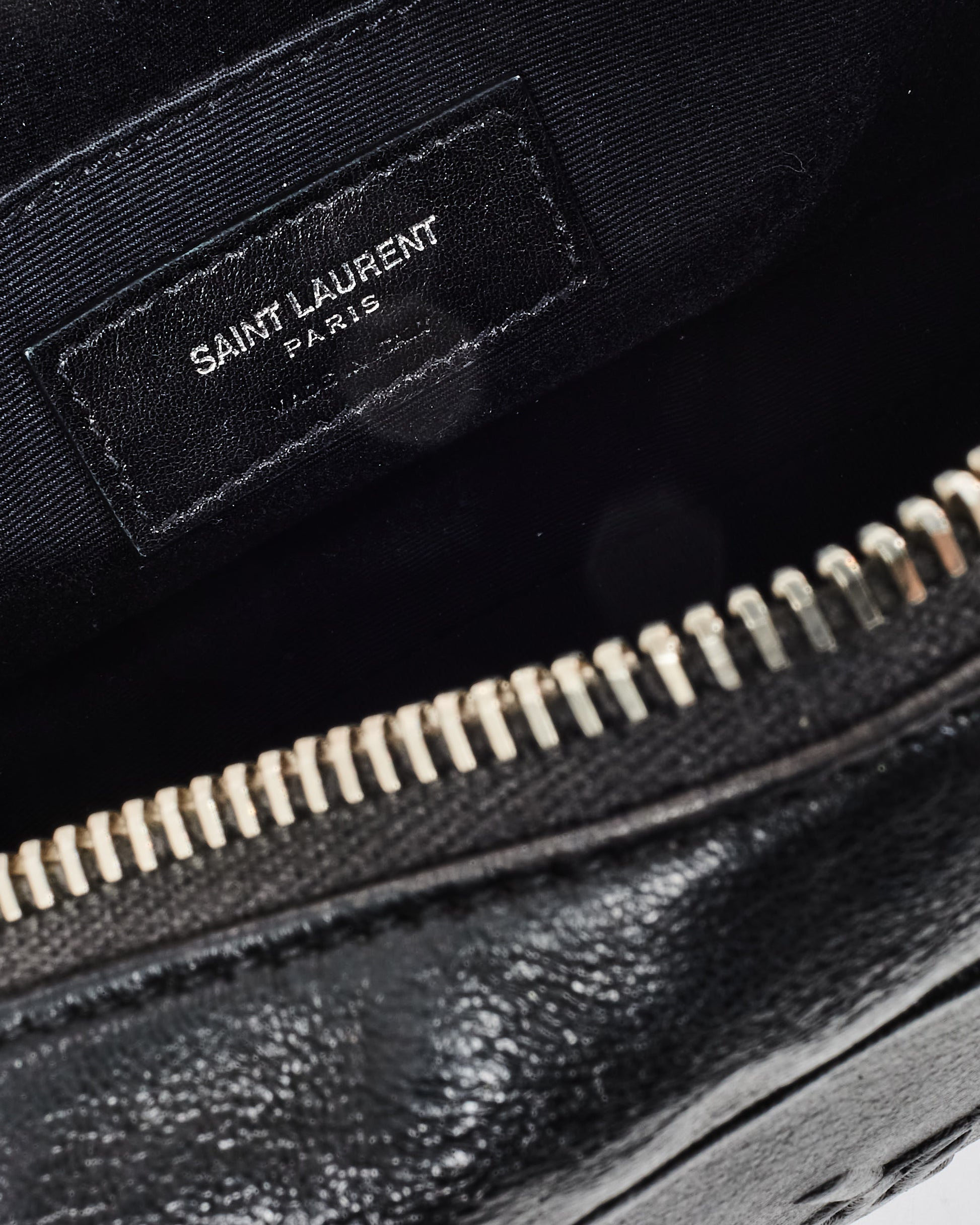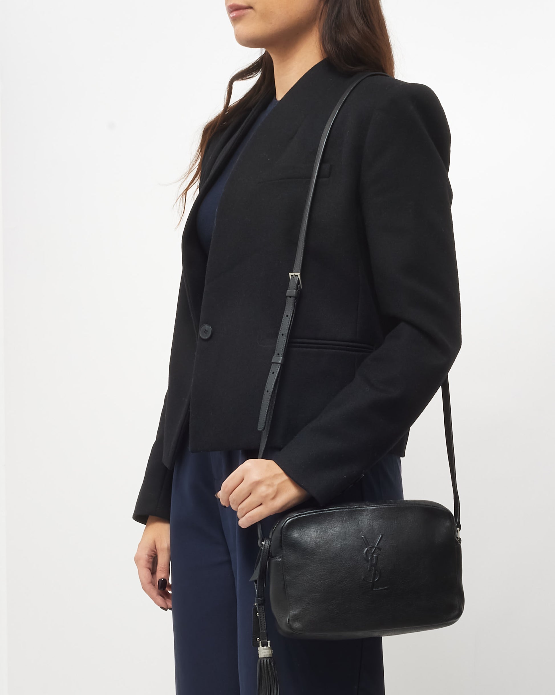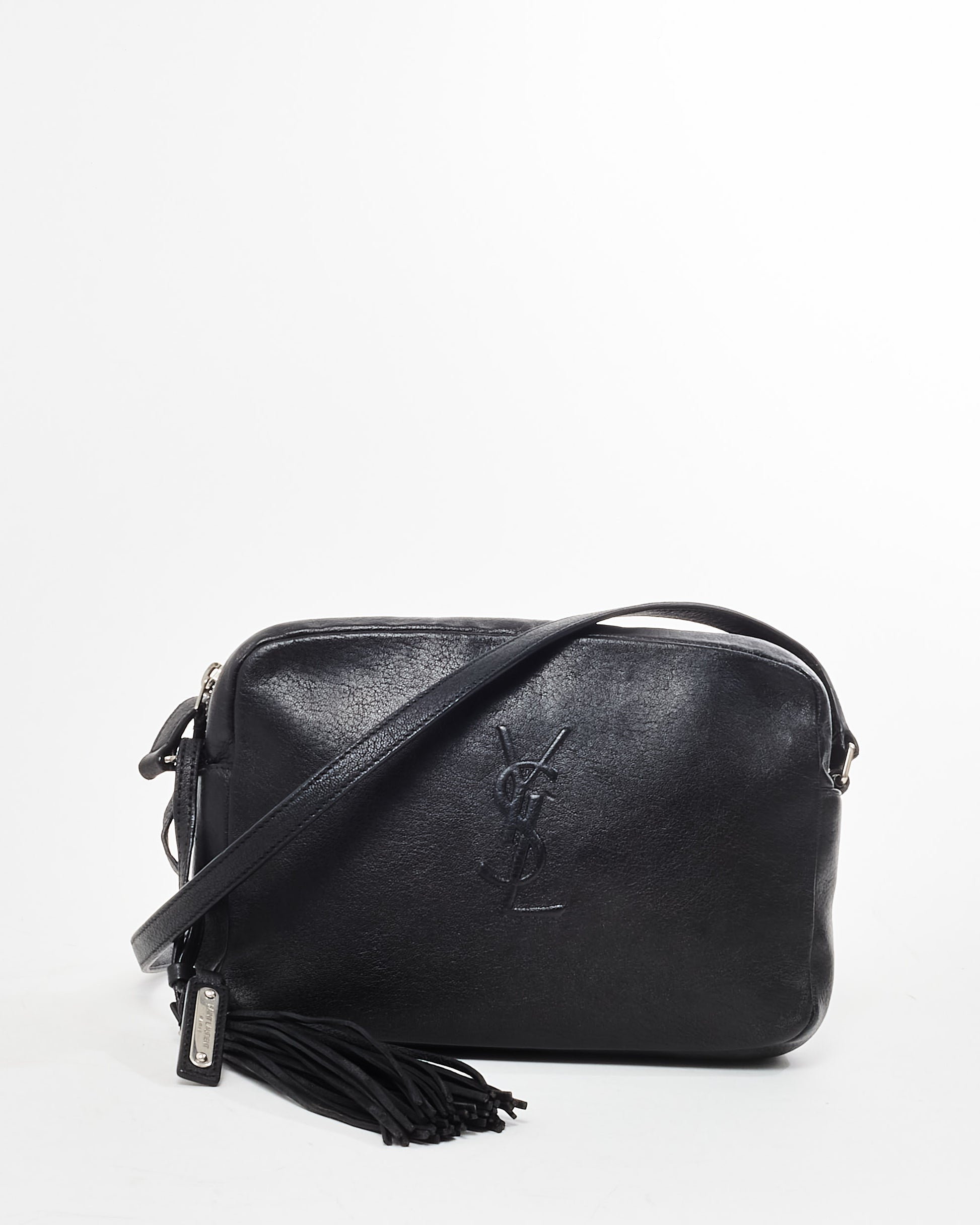 Timelessly chic and effortlessly versatile, the authentic pre-owned Saint Laurent Black Lou Camera Leather Crossbody Bag with Tassel is a must-have accessory for any fashion-forward wardrobe. Crafted from luxurious black chevron-quilted leather, this sleek bag features the iconic embossed YSL monogram logo.