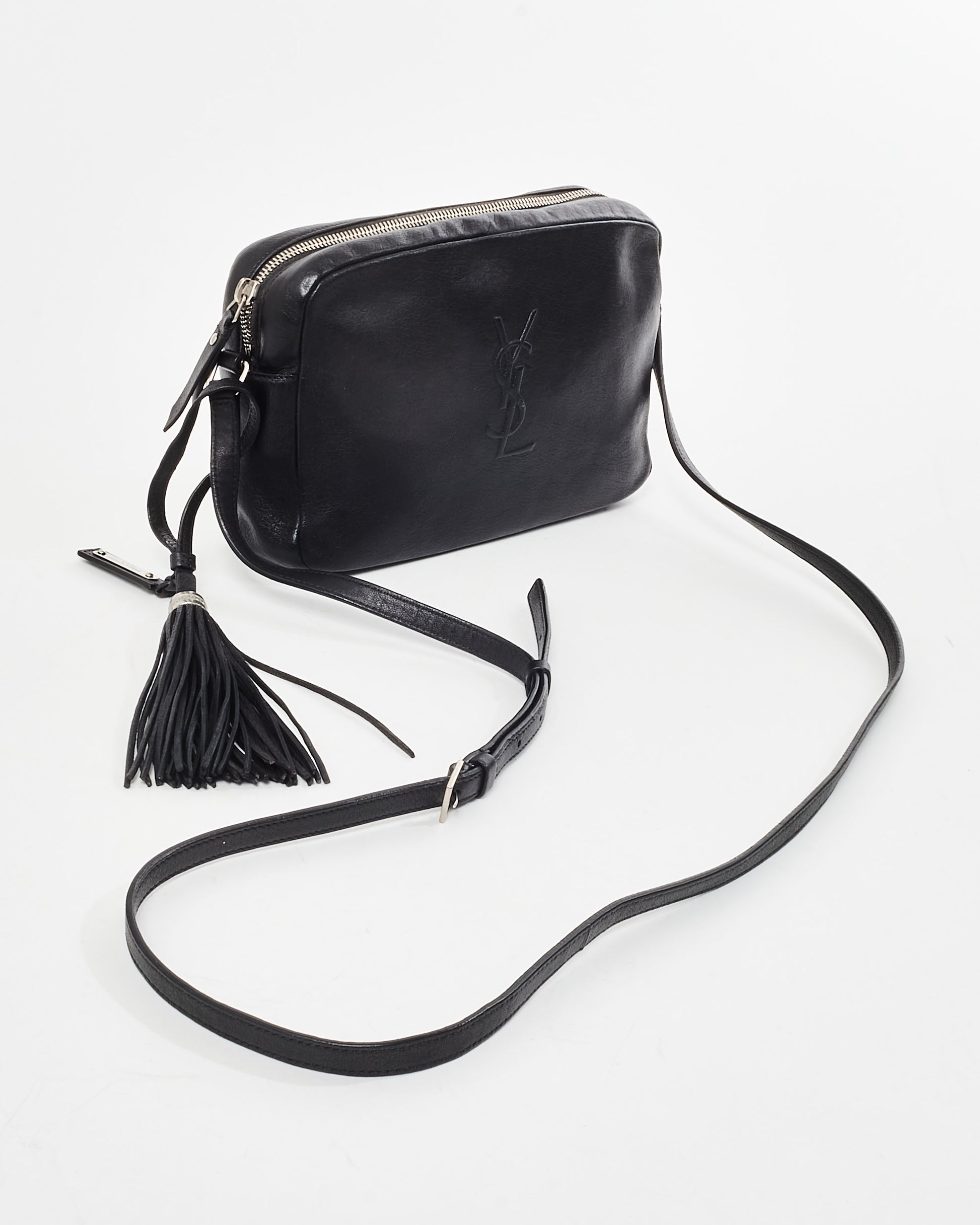 Black Lou Camera Leather Crossbody Bag with Tassel