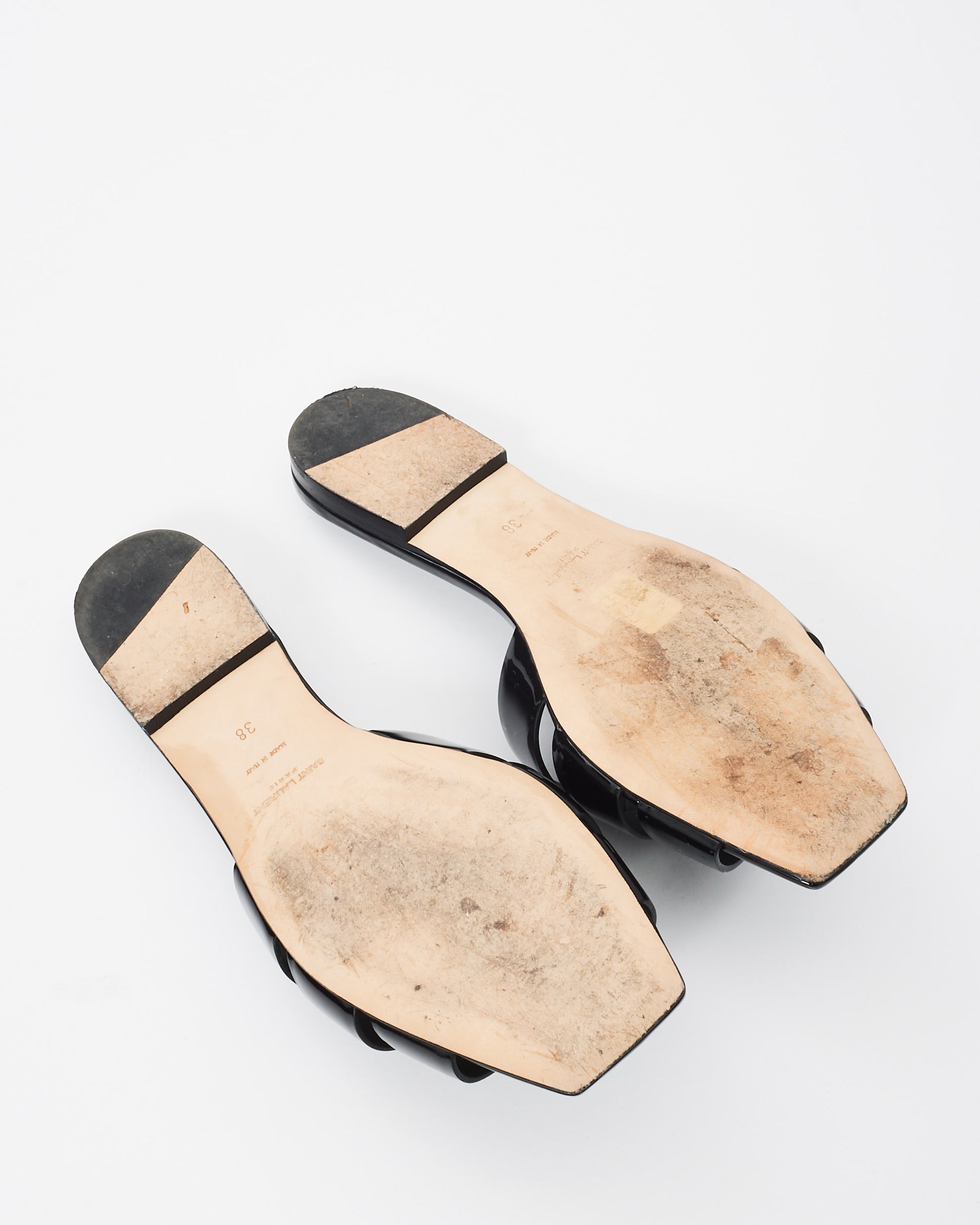 Explore Saint Laurent's exquisite collection of shoes, featuring this certified pre-owned  Black Patent Leather Tribute Sandals - 38. Embodying timeless elegance and modern sustainability, each piece, including favorites like this, is authenticated by Retyche. Discover sustainable luxury — shop our current treasures or find inspiration for your next coveted find.