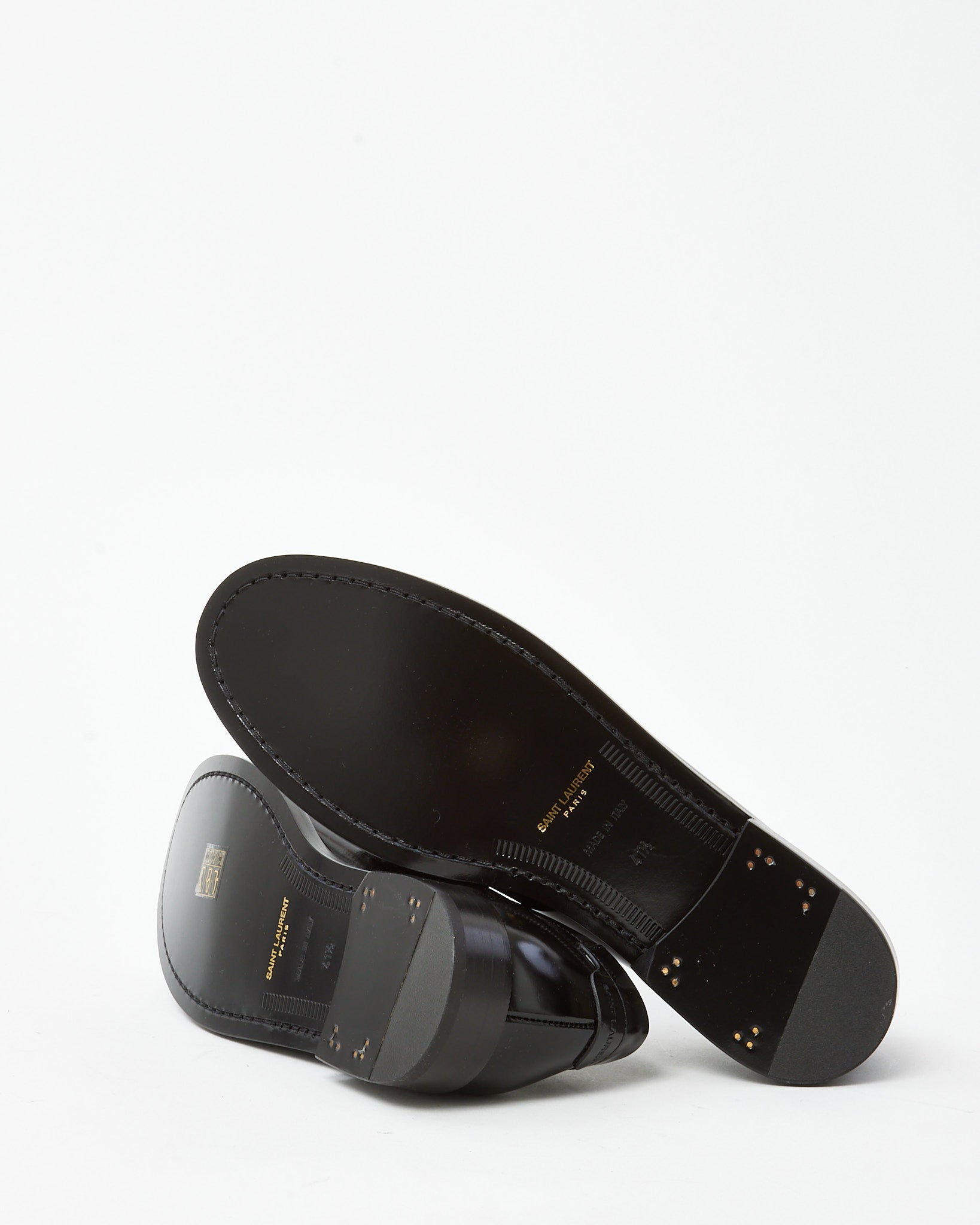 Refine your everyday wardrobe with these pre-loved authentic Saint Laurent Black Shiny Leather Le Loafer Penny Slippers Loafers - 41.5, crafted in polished black leather for a sleek, sophisticated finish. The classic penny loafer silhouette is reimagined with Saint Laurent’s modern minimalist aesthetic, offering clean lines and effortless versatility. Designed for comfort and understated elegance, these designer loafers pair seamlessly with tailoring, denim, or elevated casual looks. A timeless Saint Laurent shoe that blends Parisian refinement with contemporary luxury styling.
