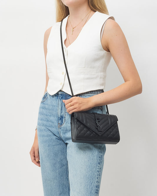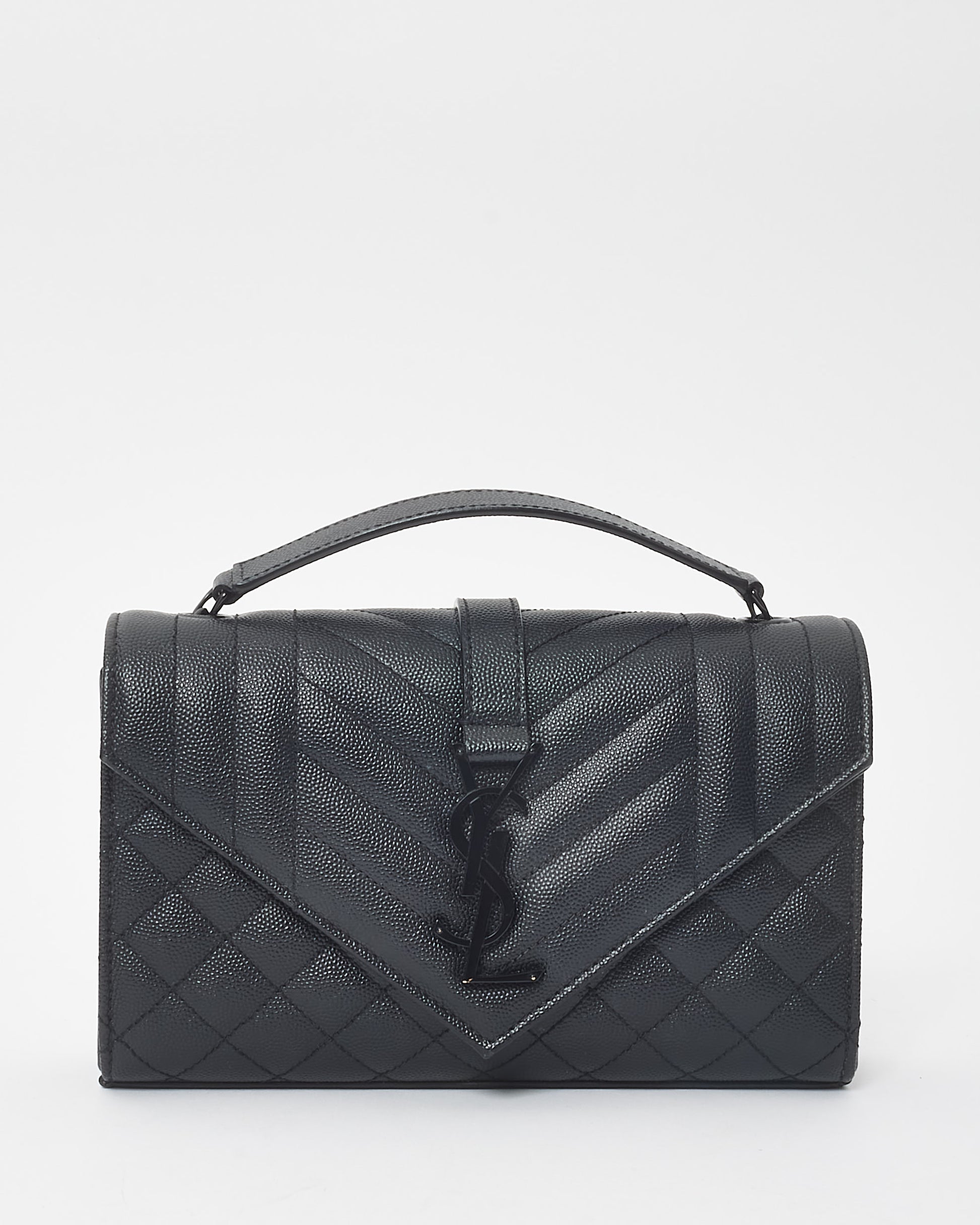 Explore Saint Laurent's exquisite collection of handbags, featuring this certified pre-owned Black Small Tri-Quilt Grain De Poudre Leather Envelope Bag. Embodying timeless elegance and modern sustainability, each piece, including favorites like this, is authenticated by Retyche. Discover sustainable luxury — shop our current treasures or find inspiration for your next coveted find.