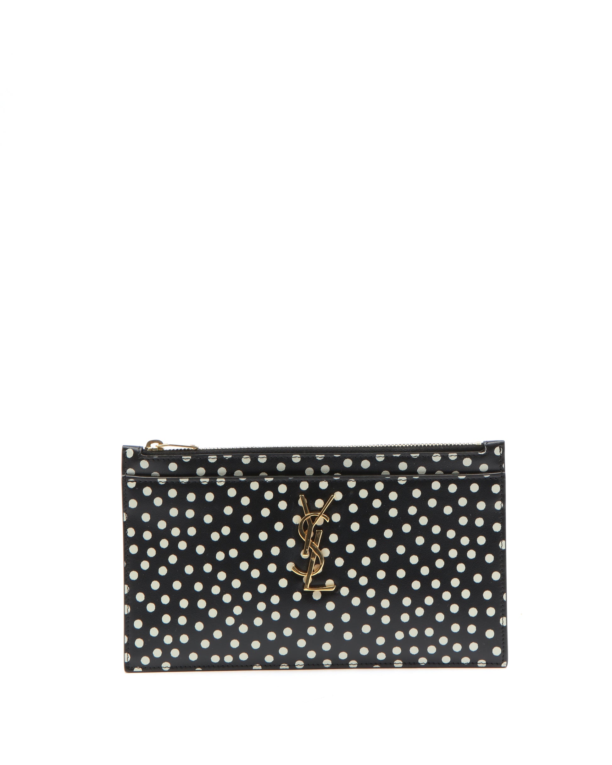 Black/White Polka Dot YSL Logo Zippy Pouch