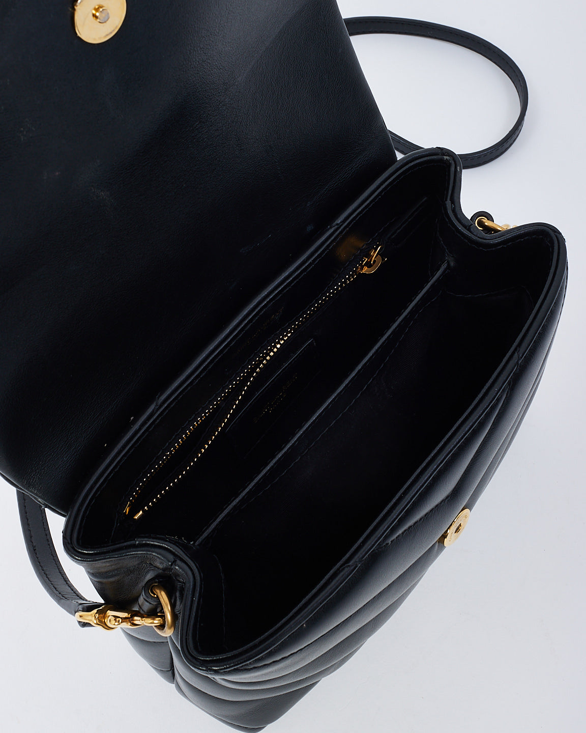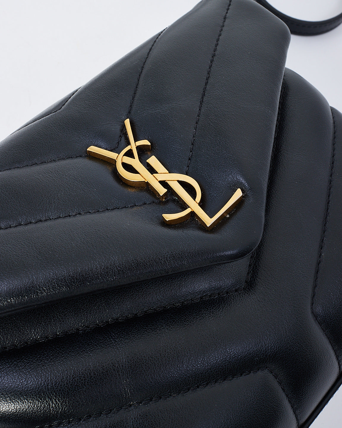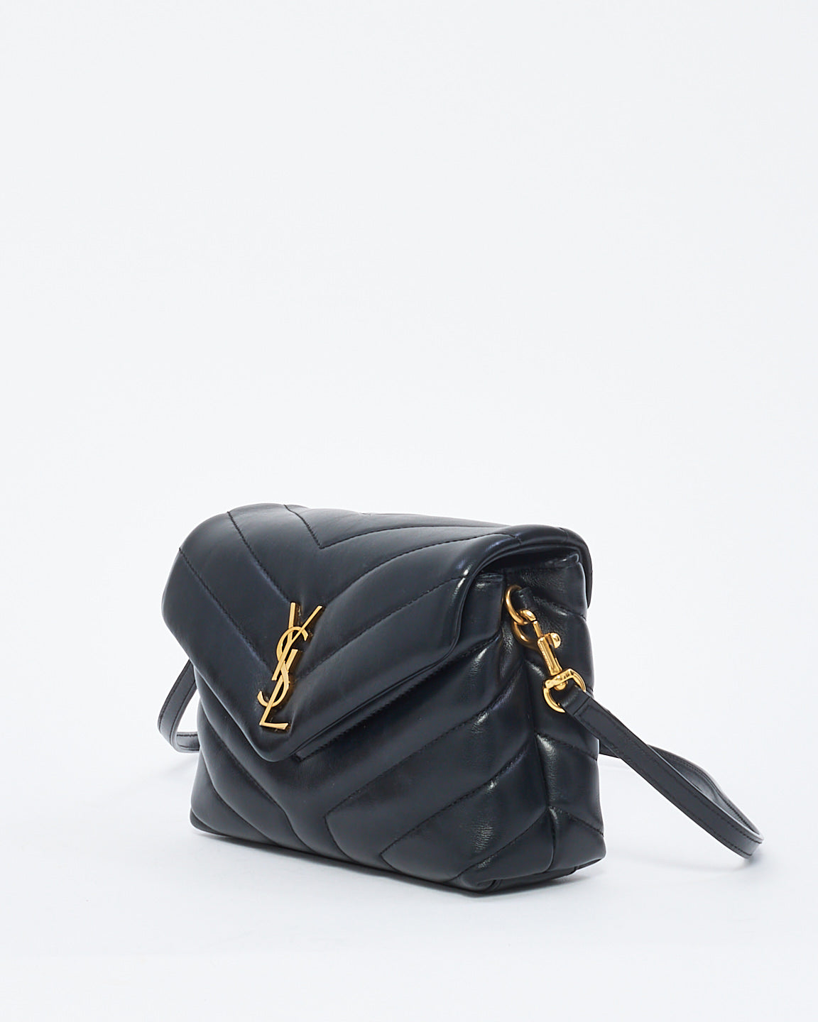 Black Y Quilted Leather Toy Loulou Crossbody Bag with Gold Hardware