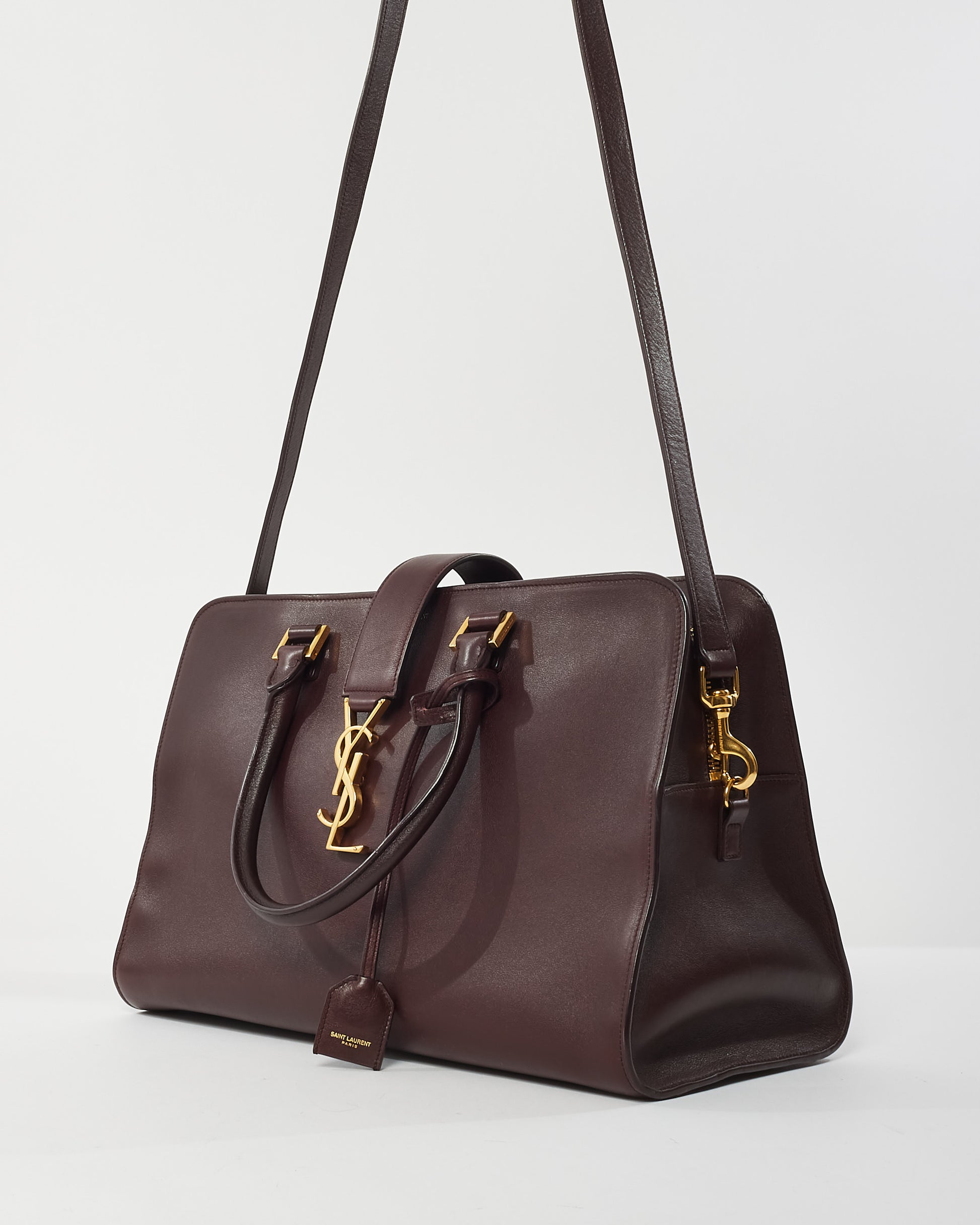Explore Saint Laurent's exquisite collection of handbags, featuring this certified pre-owned Burgundy Leather Large Cabas Bag. Embodying timeless elegance and modern sustainability, each piece, including favorites like this, is authenticated by Retyche. Discover sustainable luxury — shop our current treasures or find inspiration for your next coveted find.