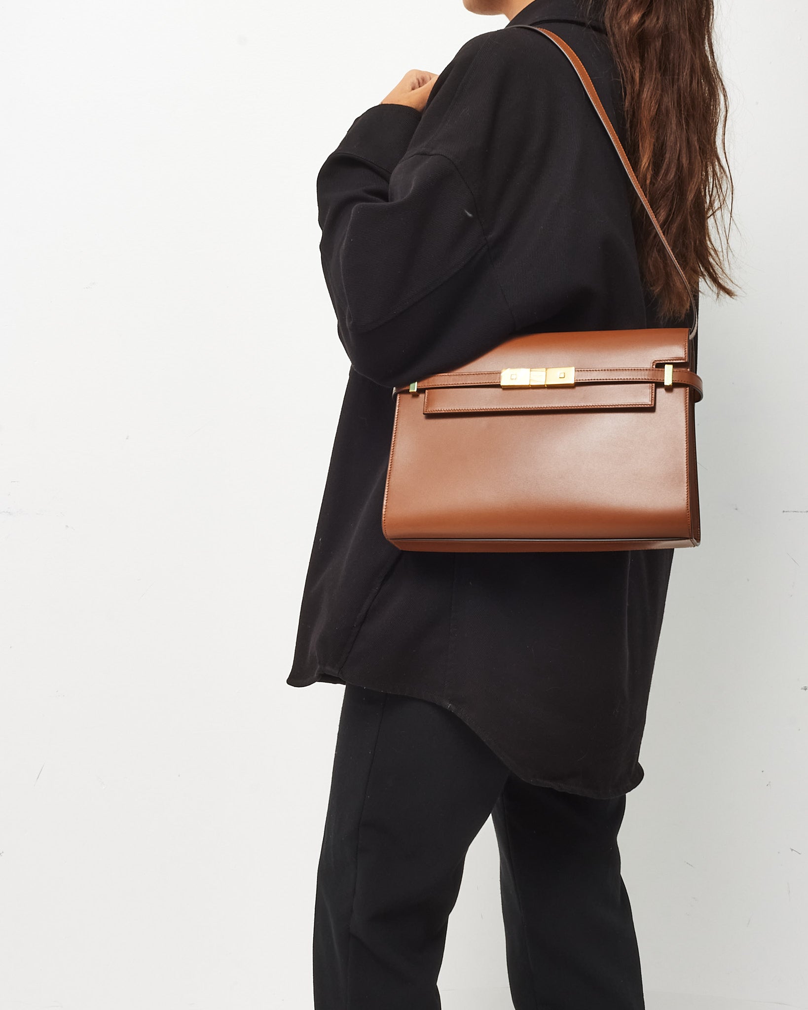 Cognac Brown Smooth Calfskin Leather Medium Manhattan Shoulder Bag