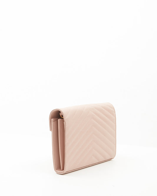 Dusty Pink YSL Grain De Poudre Matelasse Chevron Monogram Envelope Wallet-on-Chain
