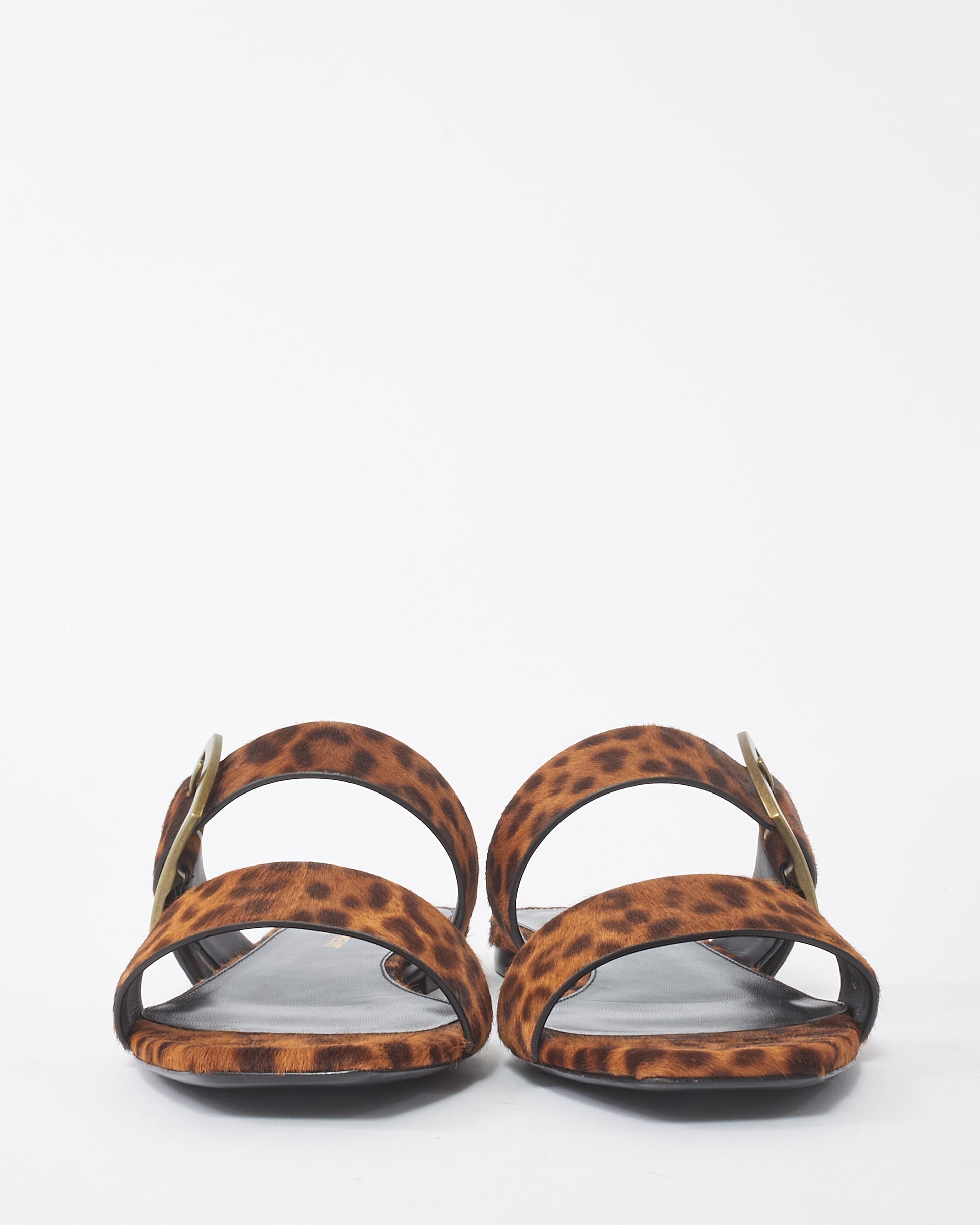 Leopard Print Pony Hair Buckle Sandals - 37.5