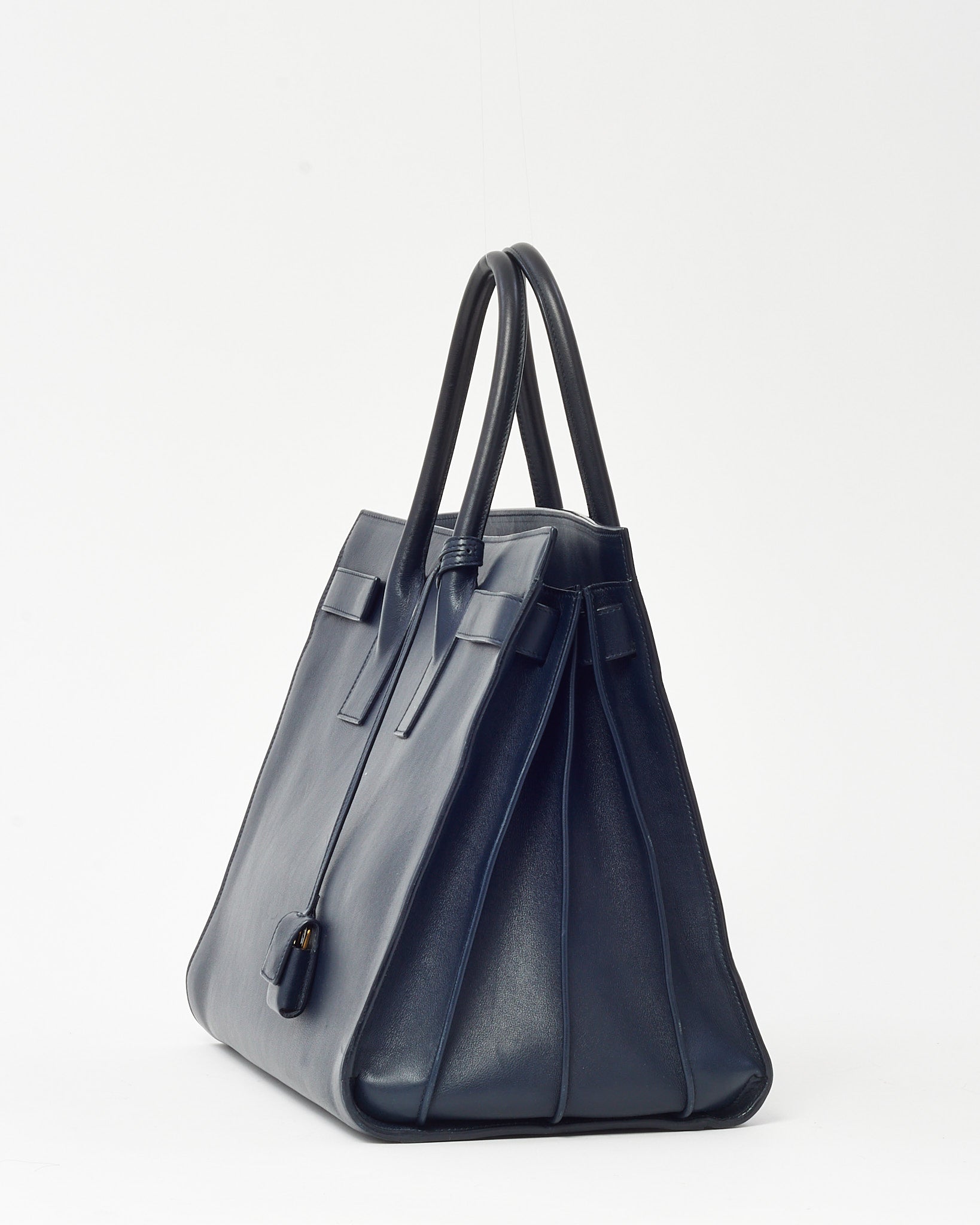 Midnight Blue Calfskin Leather Large Sac de Jour Tote Bag