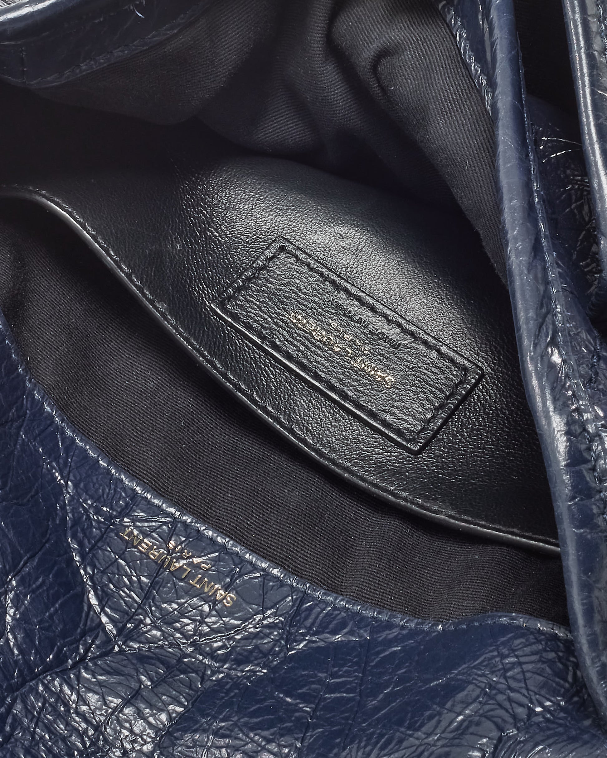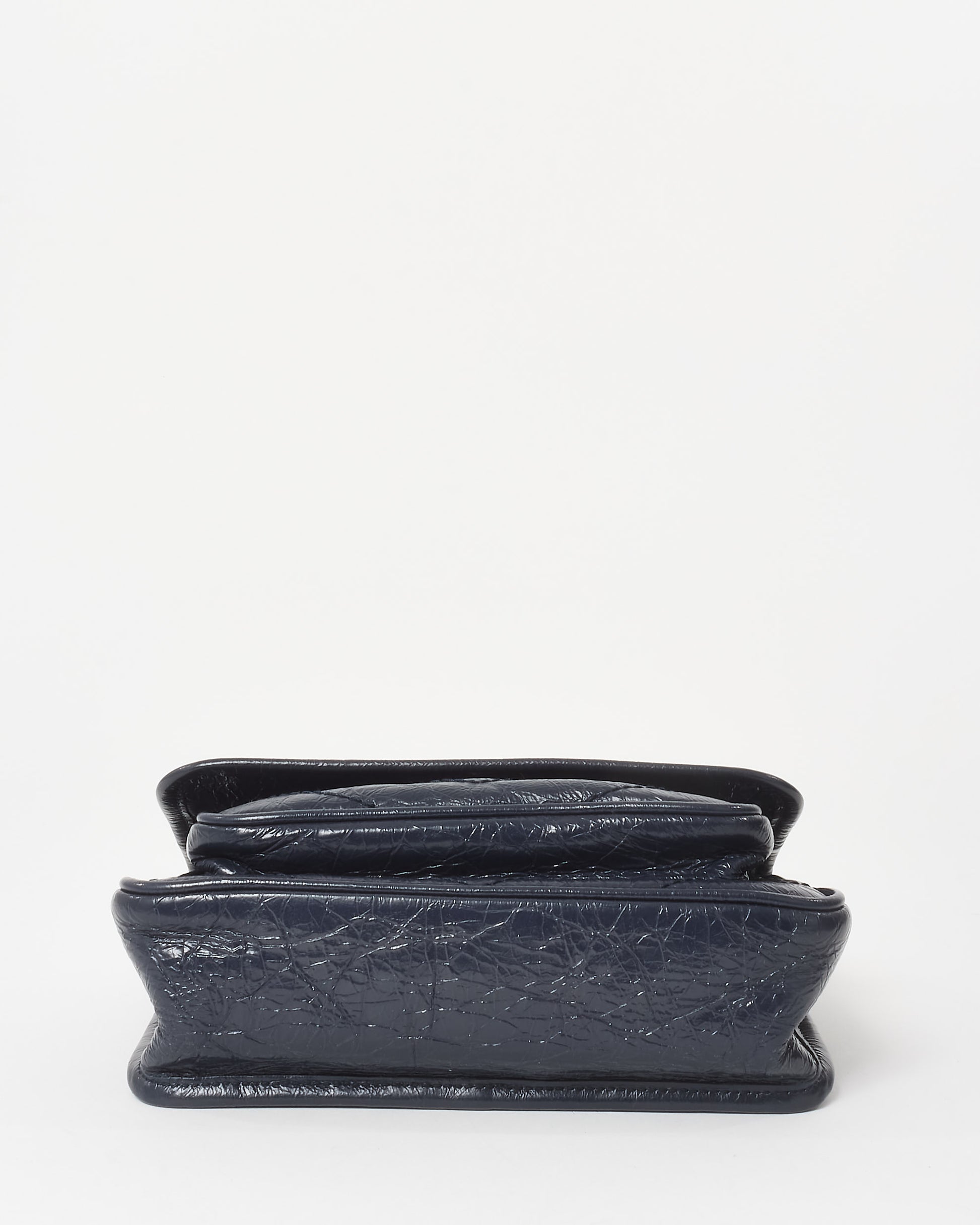 A perfect balance of edgy and elegant, the pre-owned authentic Saint Laurent Navy Crinkled Leather Baby Niki Shoulder Bag is a compact yet statement-making accessory. Crafted from luxurious crinkled navy leather, this bag exudes a vintage-inspired aesthetic while maintaining a modern, structured silhouette.