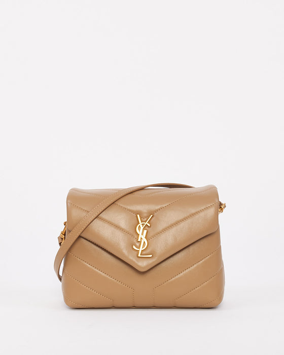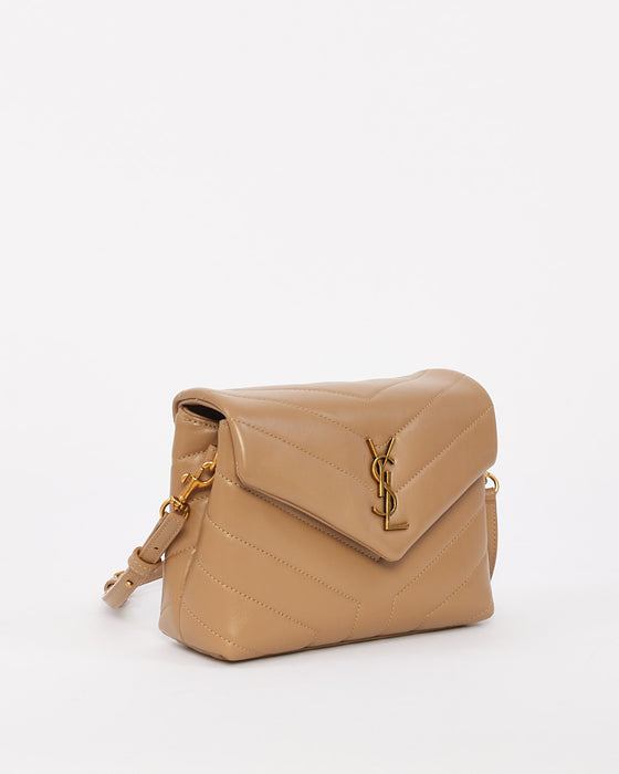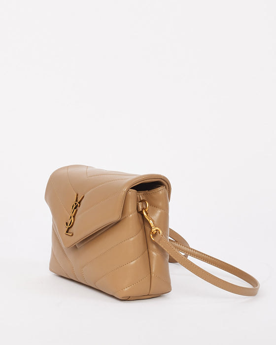 Beige Y Chevron Leather Loulou Toy Shoulder Bag